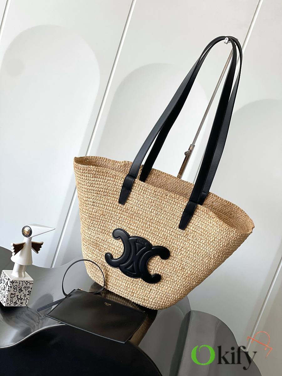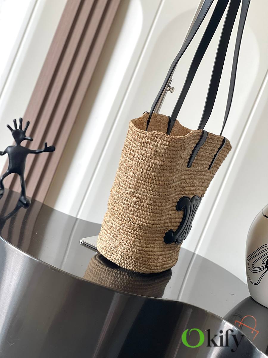 Natural grass hand-woven design + 3D Arc de Triomphe vintage leather label + small inner pocket