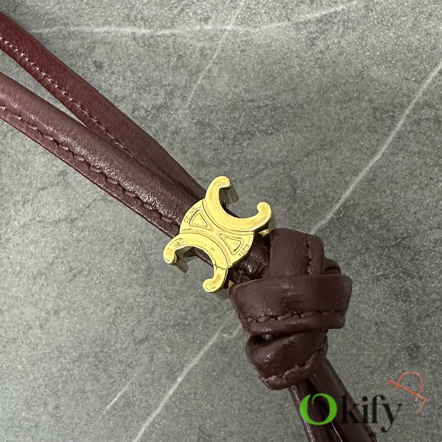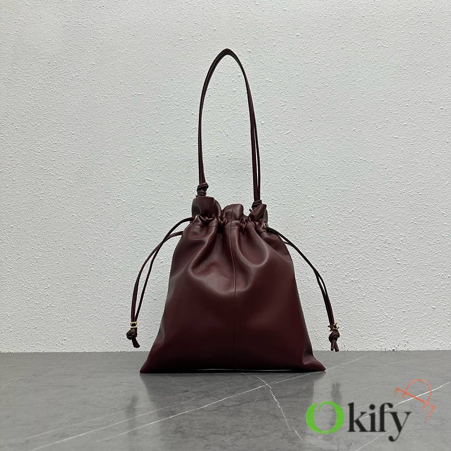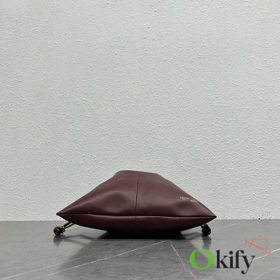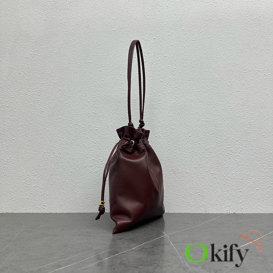 The drawstring design gives it a cloud-like feel. When loosened, the fabric drapes freely, allowing for two different visual moods in one bag. The embossed Arc de Triomphe logo on the bag, along with the metal drawstring closure, subtly incorporates the brand identity, maintaining its recognizability without appearing overtly ostenatious. The subtle Arc de Triomphe pattern on the lining is a hidden detail that reveals itself when the drawstring is pulled, ensuring a unified sense of quality from the inside out. The bag is made of soft, wrinkled lambskin, with a fluffy, cloud-like feel. The wrinkled texture gives it an effortless, casual feel Model Number: 123662