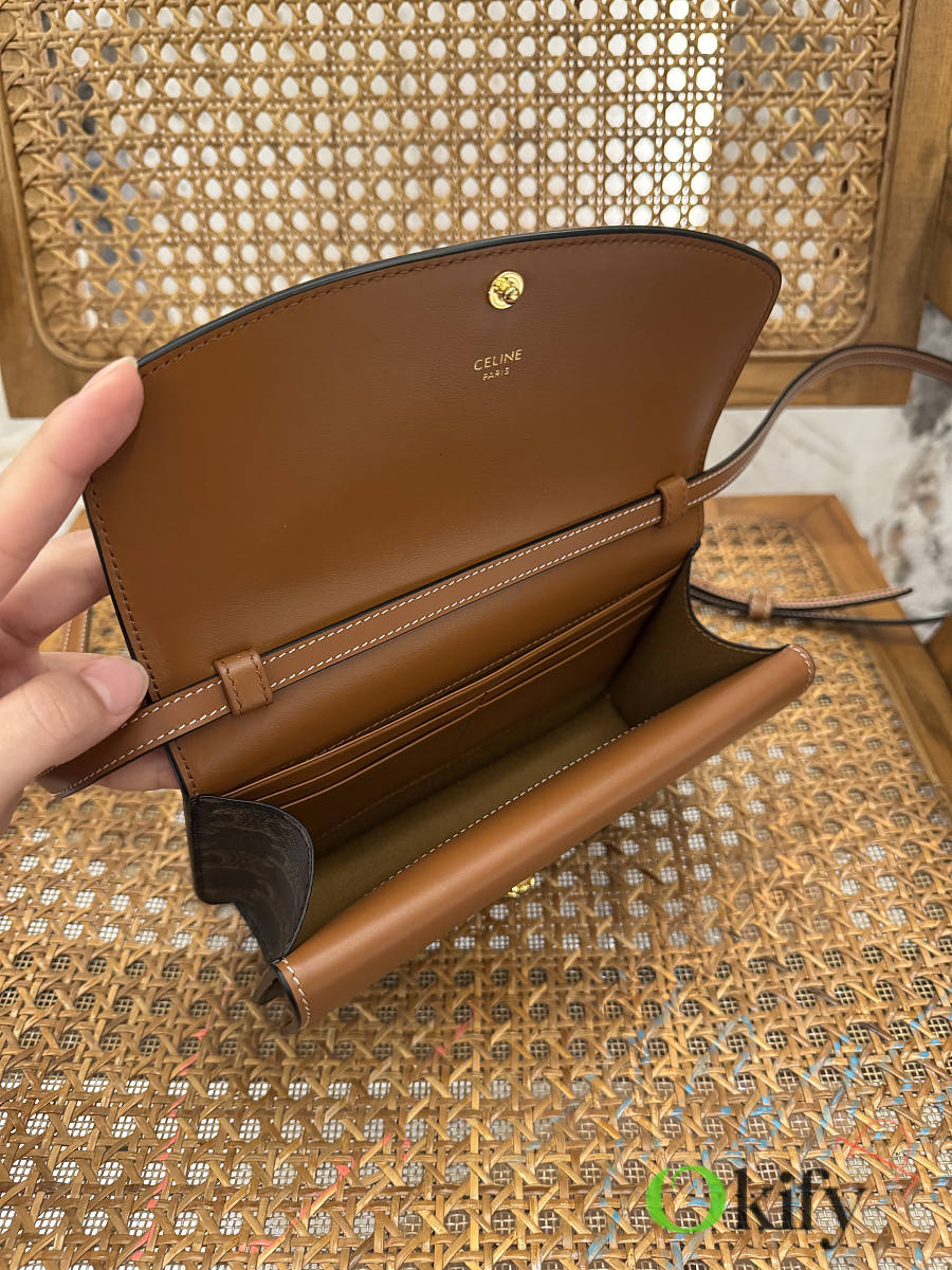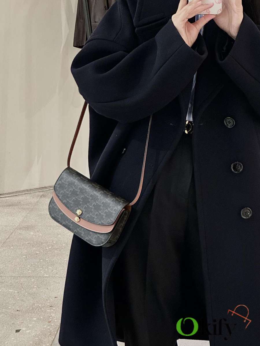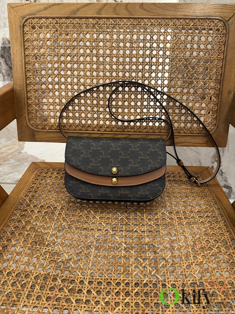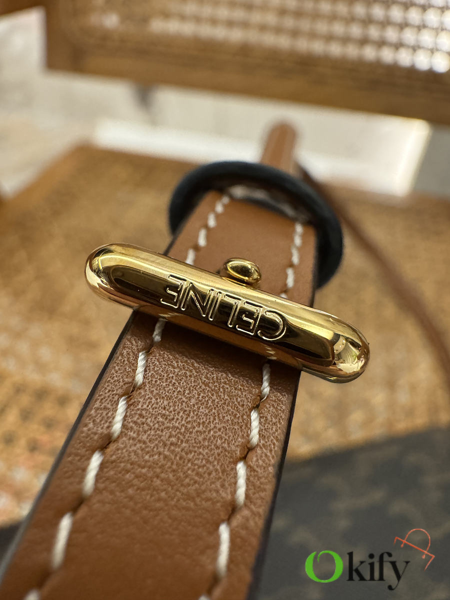 Mini handbag; this model can hold larger smartphones such as the Plus. 7.9 x 5.1 x 2.4 inches (20 x 13 x 6 cm) Logo print, artificial cowhide/cowhide leather Fabric and cowhide lining Gold finish Snap button opening and closing 1 main compartment 1 flat inner pocket 4 card slots 1 flap outer pocket Detachable and adjustable shoulder straps, minimum length 18.11 inches (46 cm), maximum length 20.47 inches (52 cm).