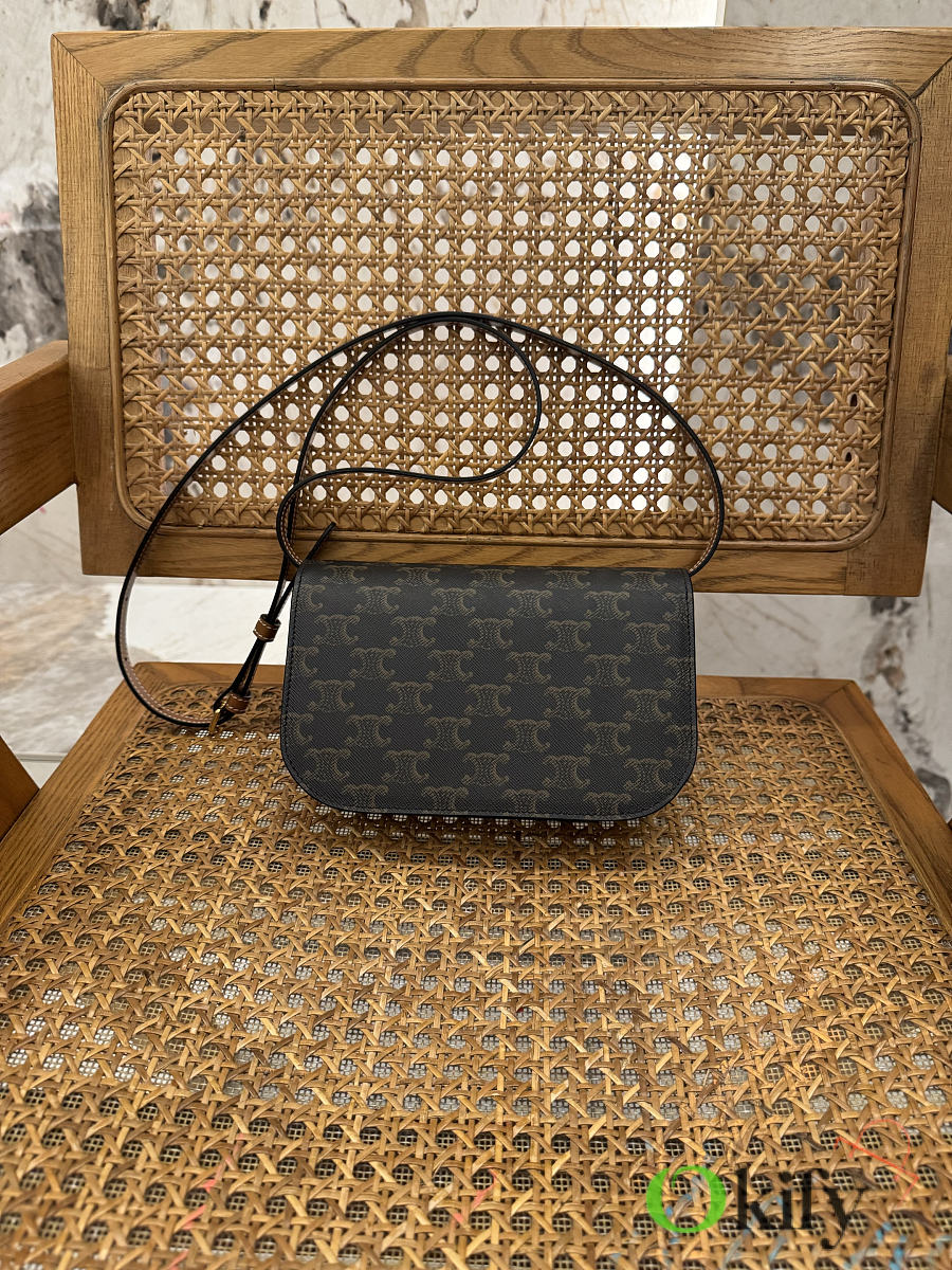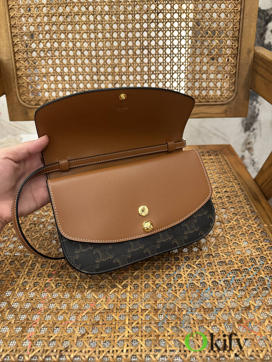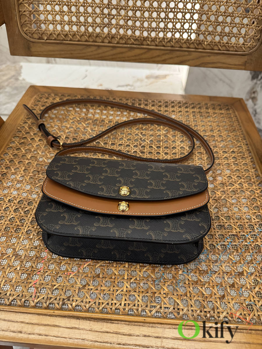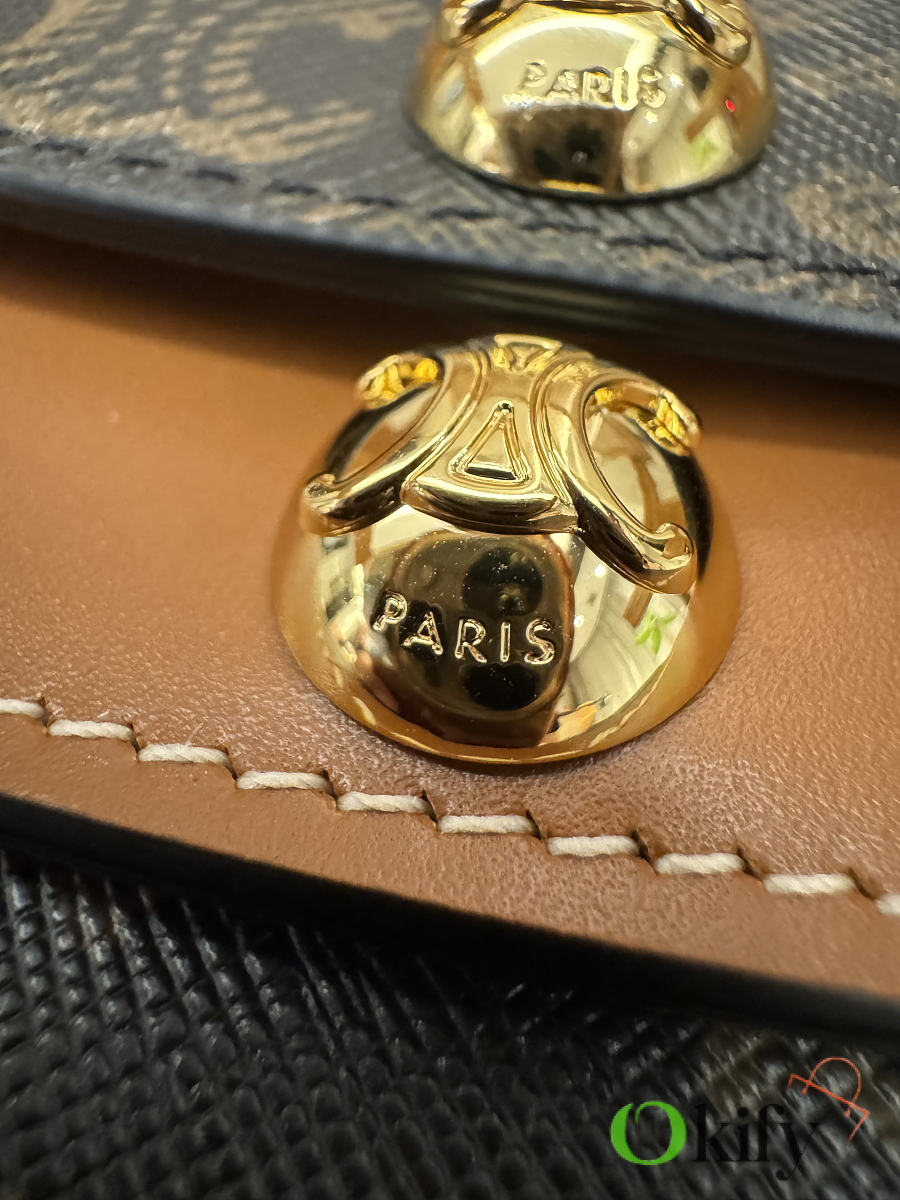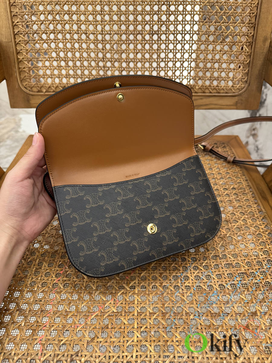 Mini handbag; this model can hold larger smartphones such as the Plus. 7.9 x 5.1 x 2.4 inches (20 x 13 x 6 cm) Logo print, artificial cowhide/cowhide leather Fabric and cowhide lining Gold finish Snap button opening and closing 1 main compartment 1 flat inner pocket 4 card slots 1 flap outer pocket Detachable and adjustable shoulder straps, minimum length 18.11 inches (46 cm), maximum length 20.47 inches (52 cm).