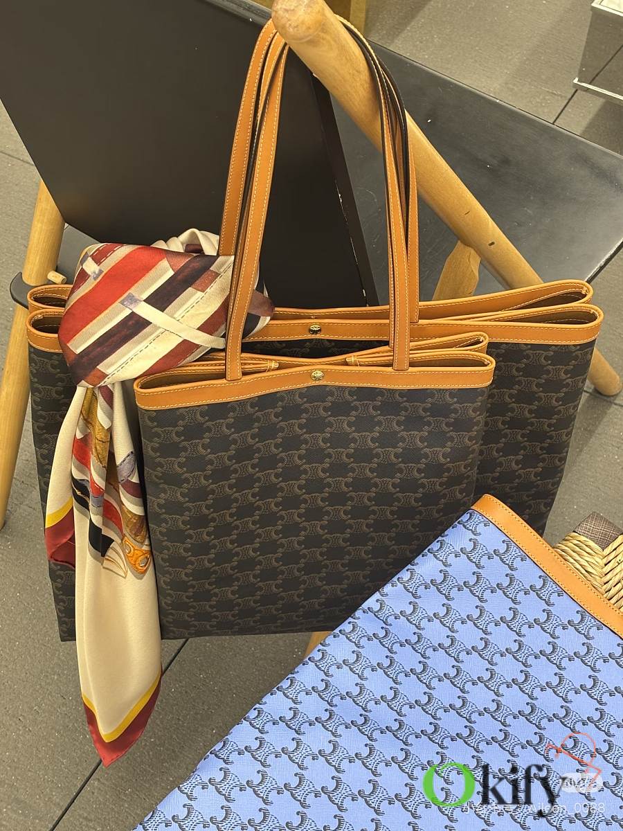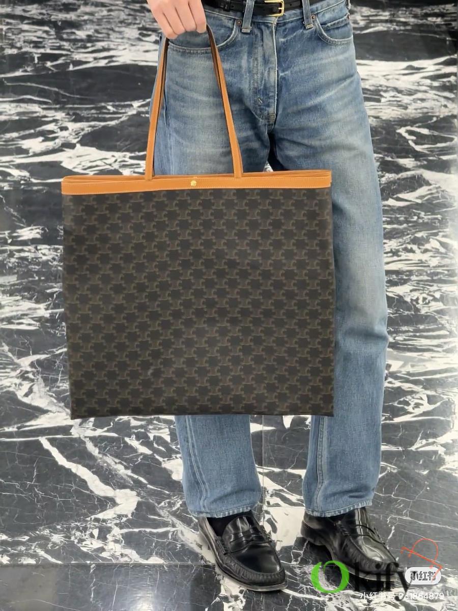 The bag is extremely thin and light, yet its oversized shape provides ample capacity, making it the perfect choice for everyday use and commuting! The two sizes, medium and large, are more suitable for everyday wear, while the large size focuses on a stylish look and is flattering for taller individuals. Of course, the capacity is also enormous, giving it a "can fit everything" feel. It can fit a 13-inch laptop and A4 documents, and the monogrammed design makes it very lightweight. This durable, lightweight, and versatile tote bag is perfect for carrying around! Logo print, natural cowhide leather trim Fabric lining, gold finish Hand-carrying, shoulder-carrying TRIOMPHE snap closure and hook closure One main compartment, one interior zip pocket, and two handles