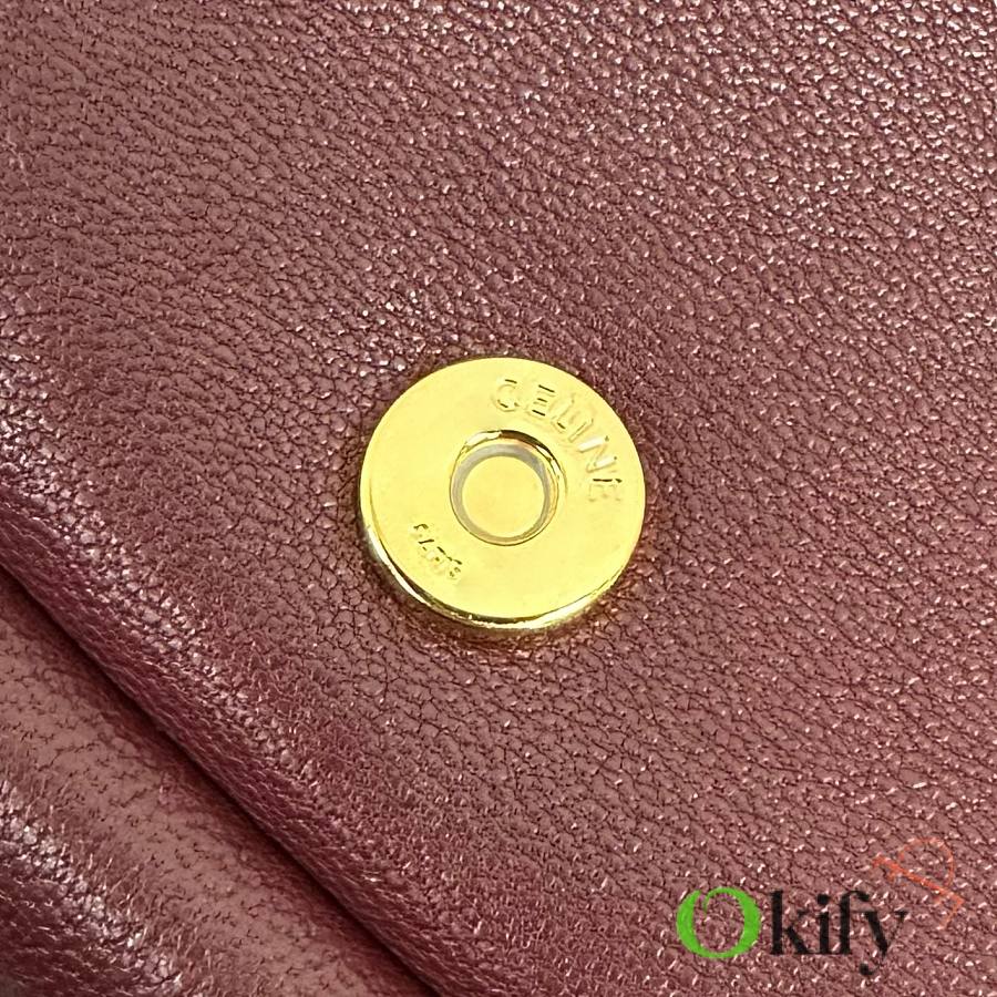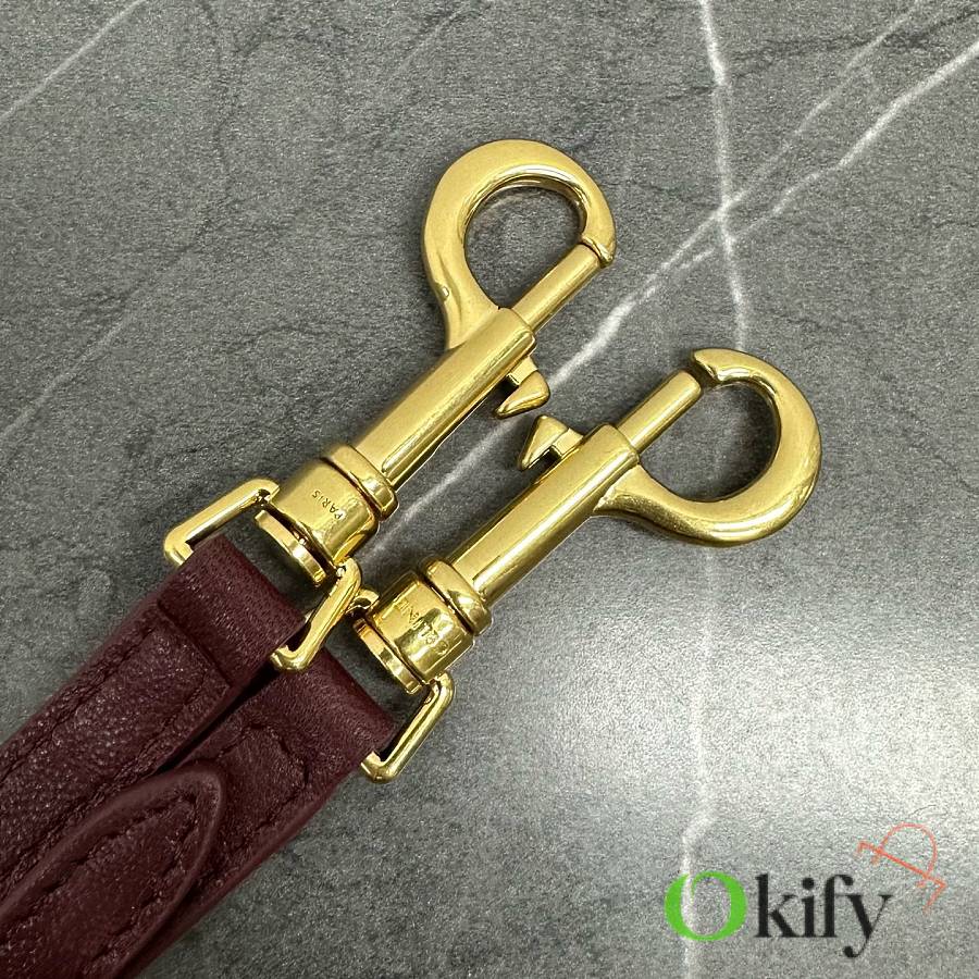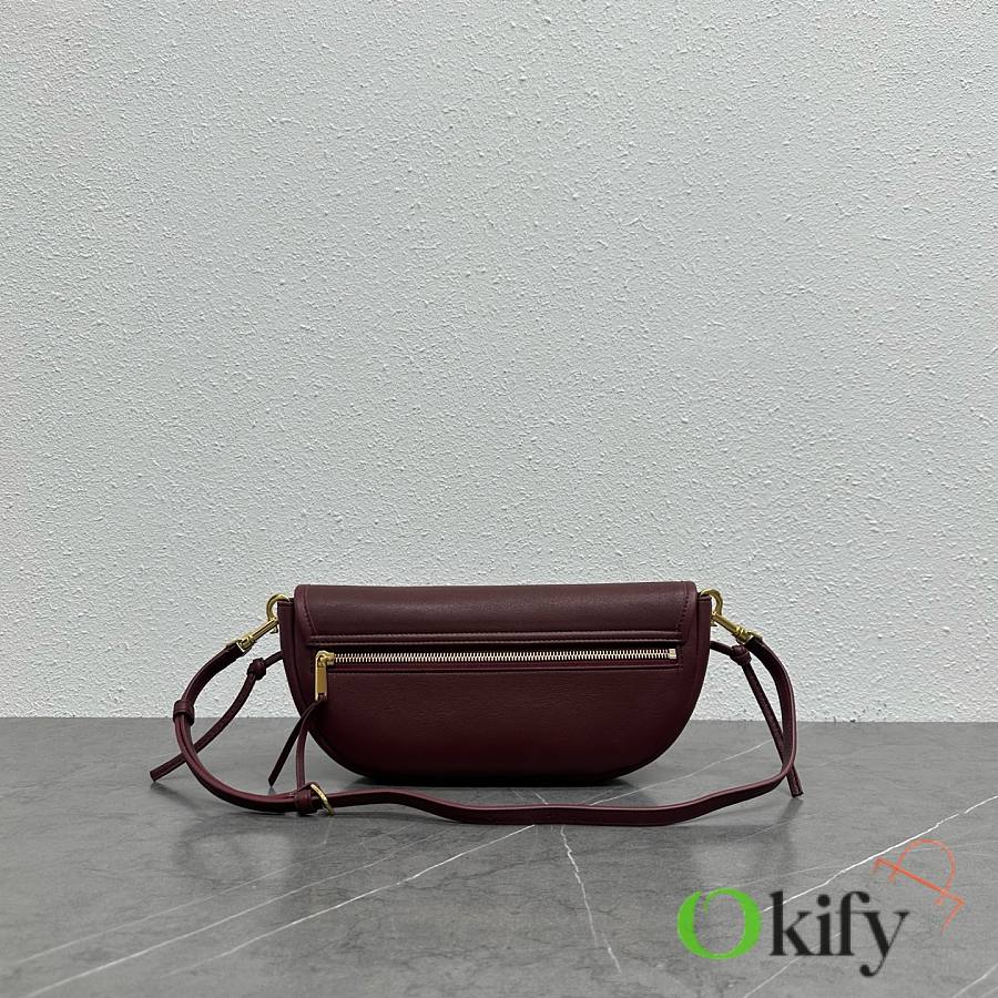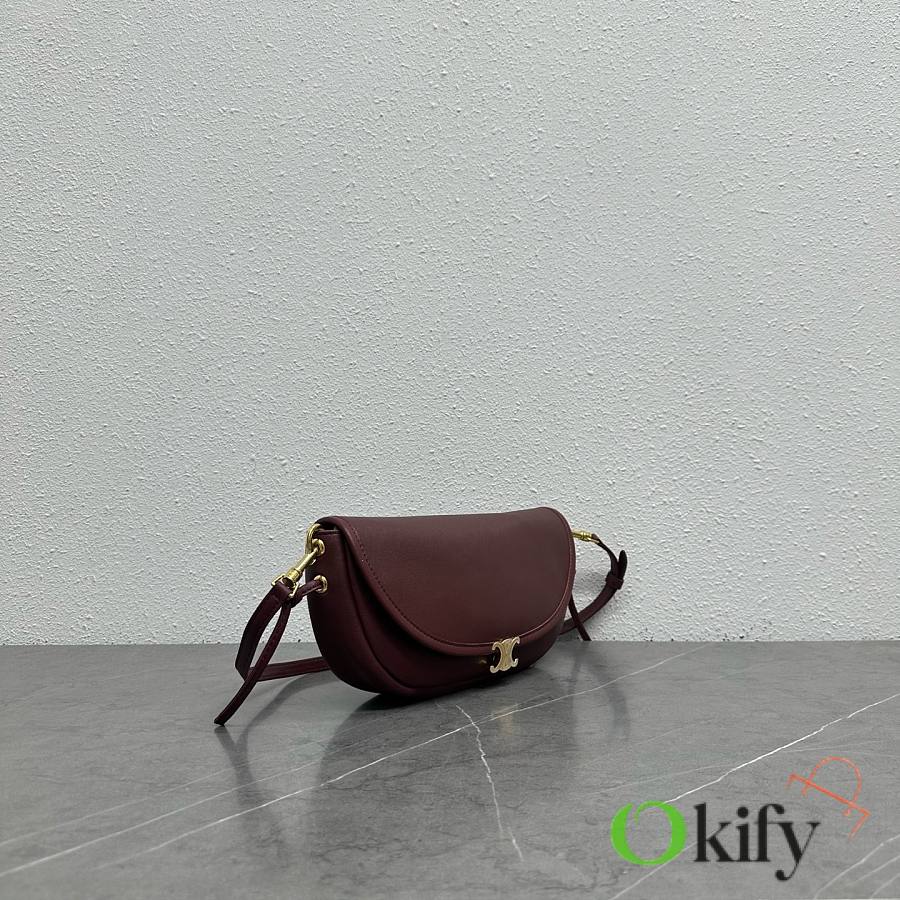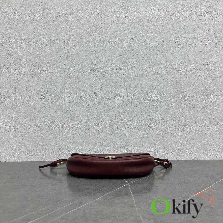 The CE26 Spring Halfmoon bag, a huge hit, is now available in a smaller size for the Summer collection! Its lightweight and practical design is hard to resist The Shiraz grape color is eye-catching yet not too flashy, making it a perfect choice for everyday wear! Product Number: 103737 Color: Burgundy