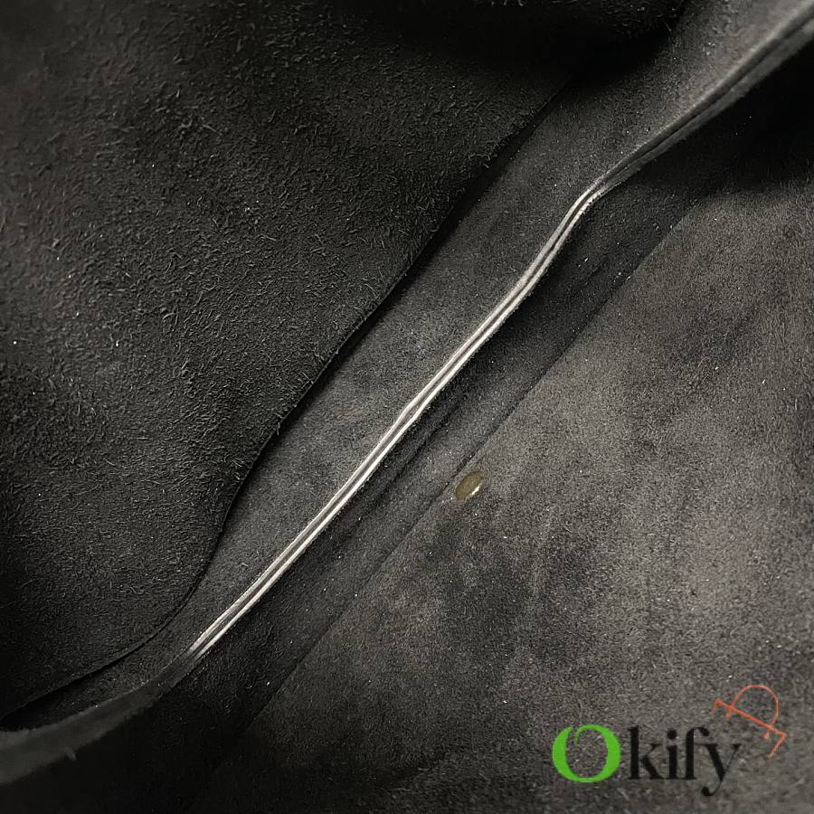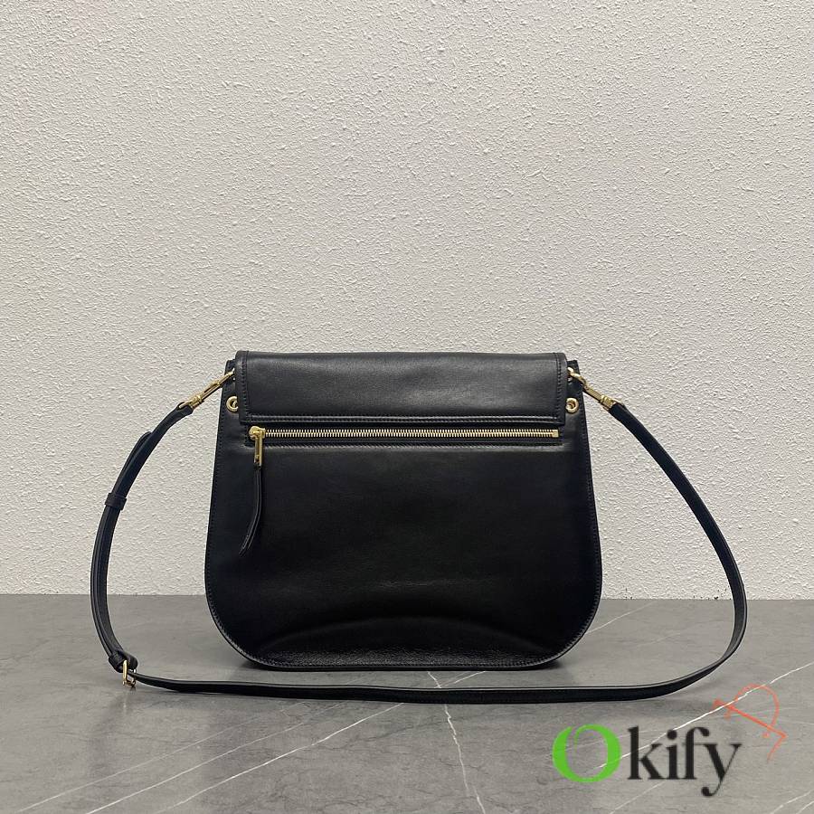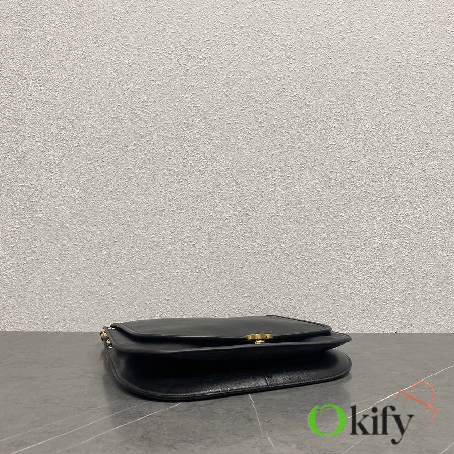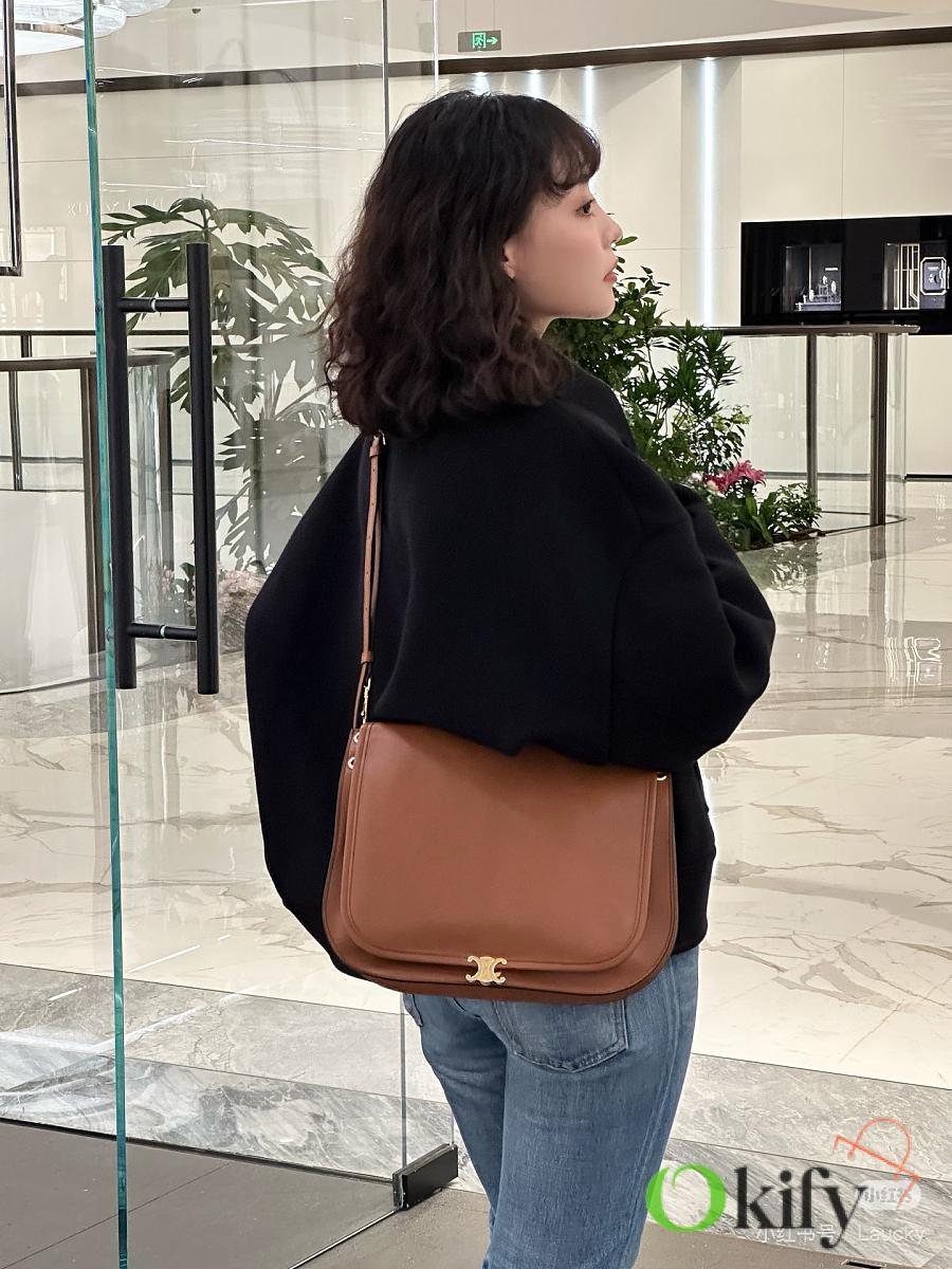 This Besace bag offers a more structured, boxy shape compared to a classic half-moon bag, giving it a larger capacity—big enough for an umbrella, thermos, and makeup pouch. Made from soft, glossy natural-grained lambskin, it feels delicate and is very lightweight. It features a back zip pocket for essentials, a discreet magnetic closure, and a Triomphe emblem that opens with a crisp click. With its detachable, adjustable strap, it can be worn on the shoulder, crossbody, or carried by hand, pairing especially well with a blazer for a chic French look.