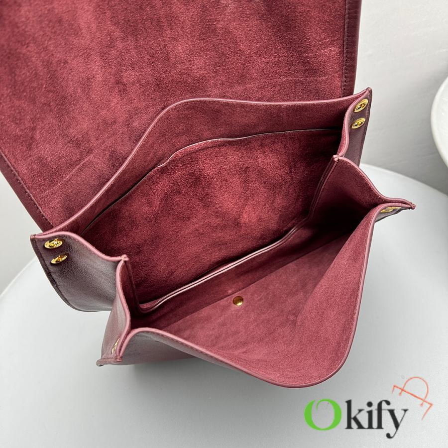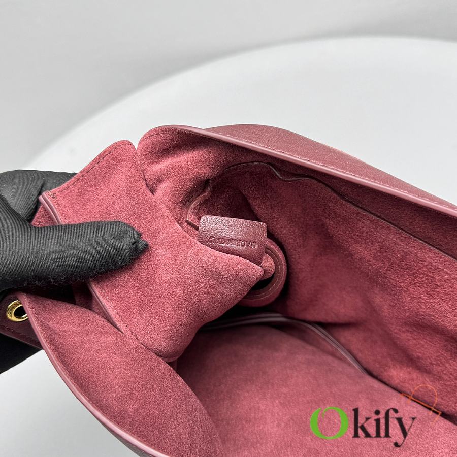 This Besace bag offers a more structured, boxy shape compared to a classic half-moon bag, giving it a larger capacity—big enough for an umbrella, thermos, and makeup pouch. Made from soft, glossy natural-grained lambskin, it feels delicate and is very lightweight. It features a back zip pocket for essentials, a discreet magnetic closure, and a Triomphe emblem that opens with a crisp click. With its detachable, adjustable strap, it can be worn on the shoulder, crossbody, or carried by hand, pairing especially well with a blazer for a chic French look.