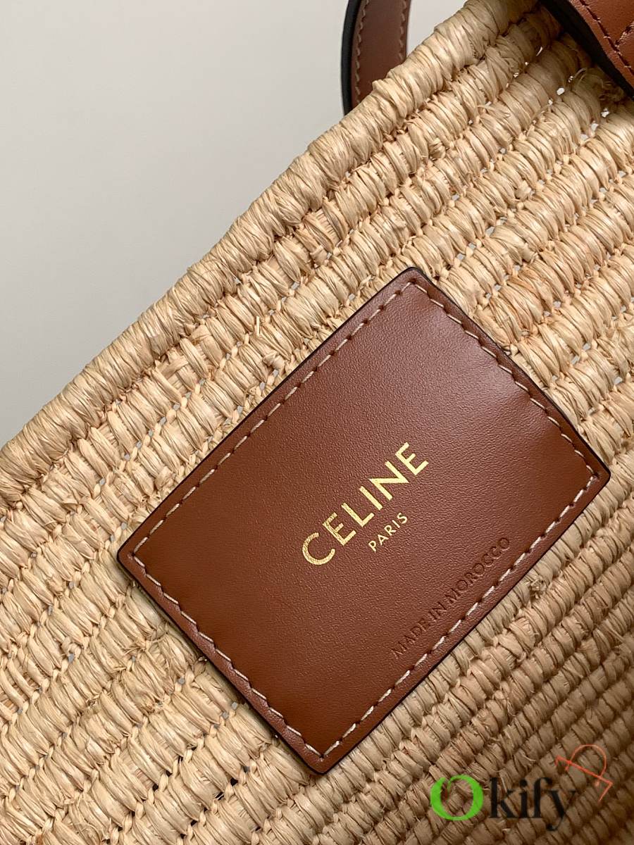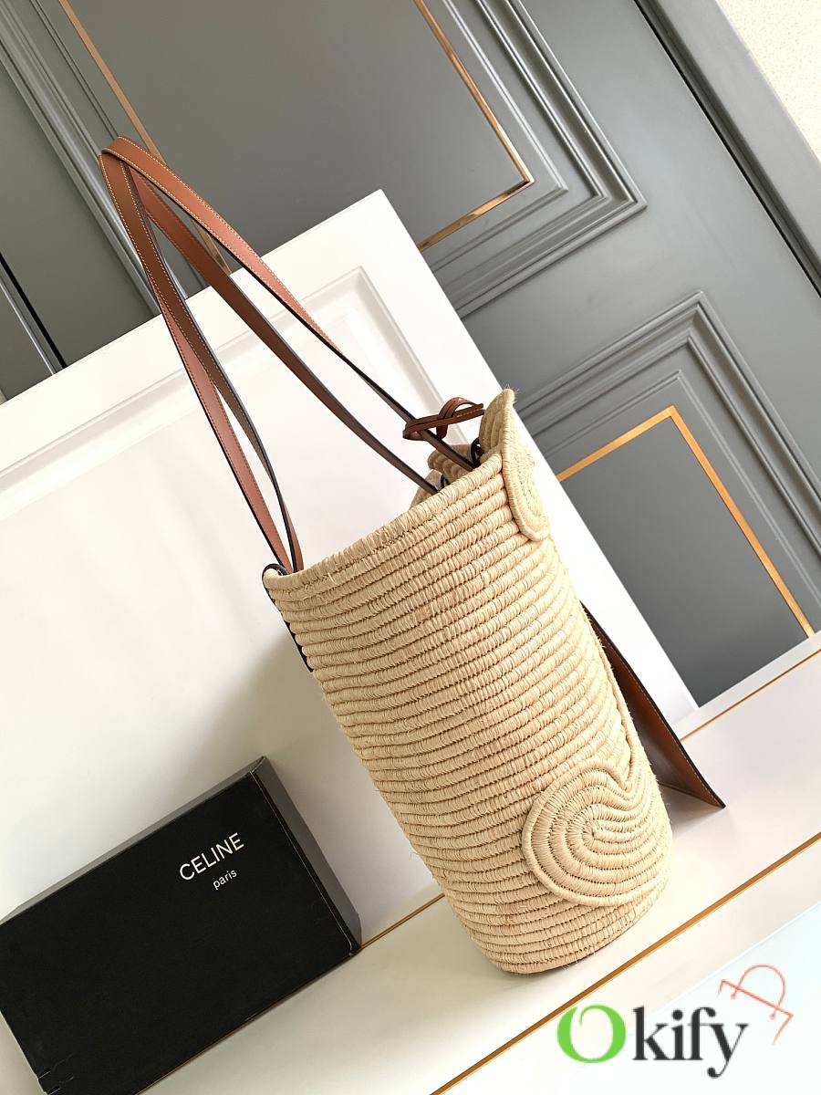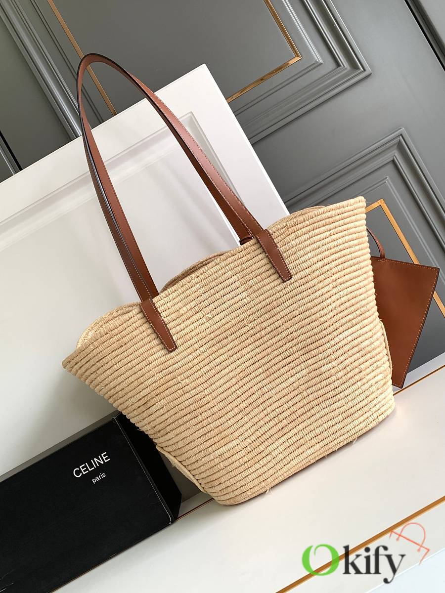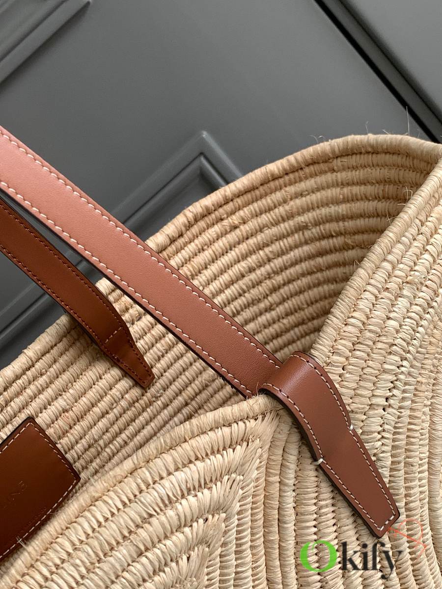 Made from natural plant materials, with cowhide leather trim, unlined, gold-tone finish, shoulder carry, one main compartment, one interior detachable leather zip pocket, and a 35cm shoulder strap.