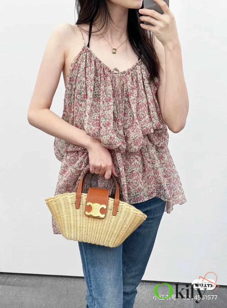 Okify Celine Teen Couffin Raffia Bag 32x14x7cm