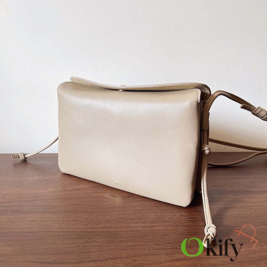 Okify Celine Trio Flap Bag Beige Lambskin 22x14x4cm