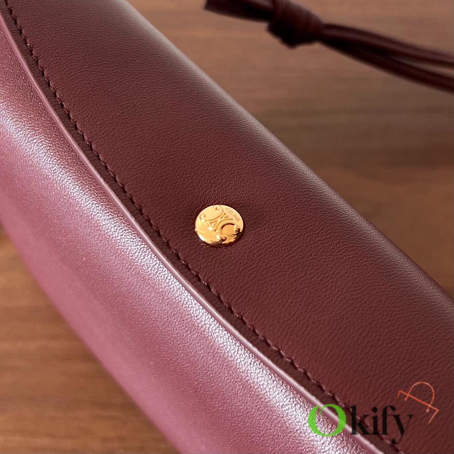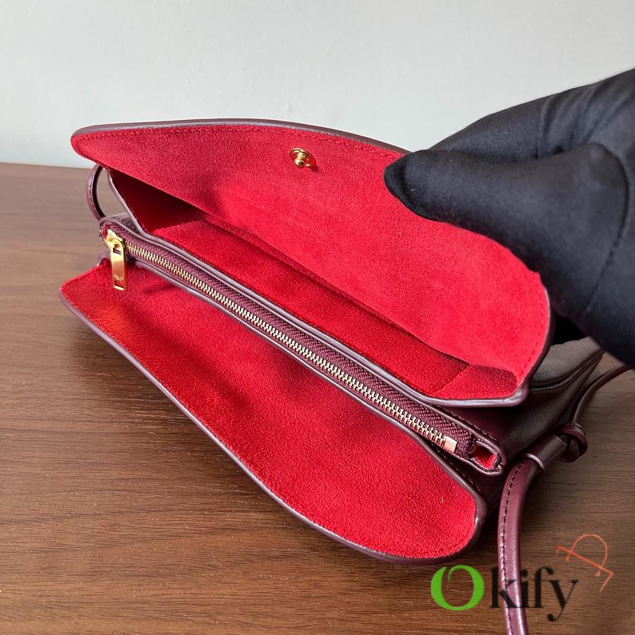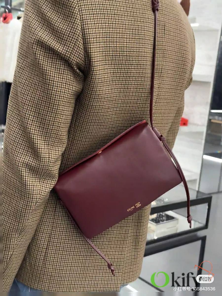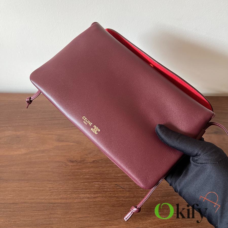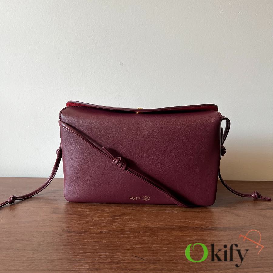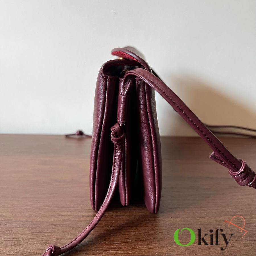 Front and back bags now feature metal buckles for a more casual feel The shoulder strap is knotted and adjustable in length The logo has been moved to the bottom of the bag for a refined and understated look. Equipped with a secure TRIOMPHE snap closure. Adjustable leather shoulder strap with a sliding leather knot. Practical zippered middle compartment