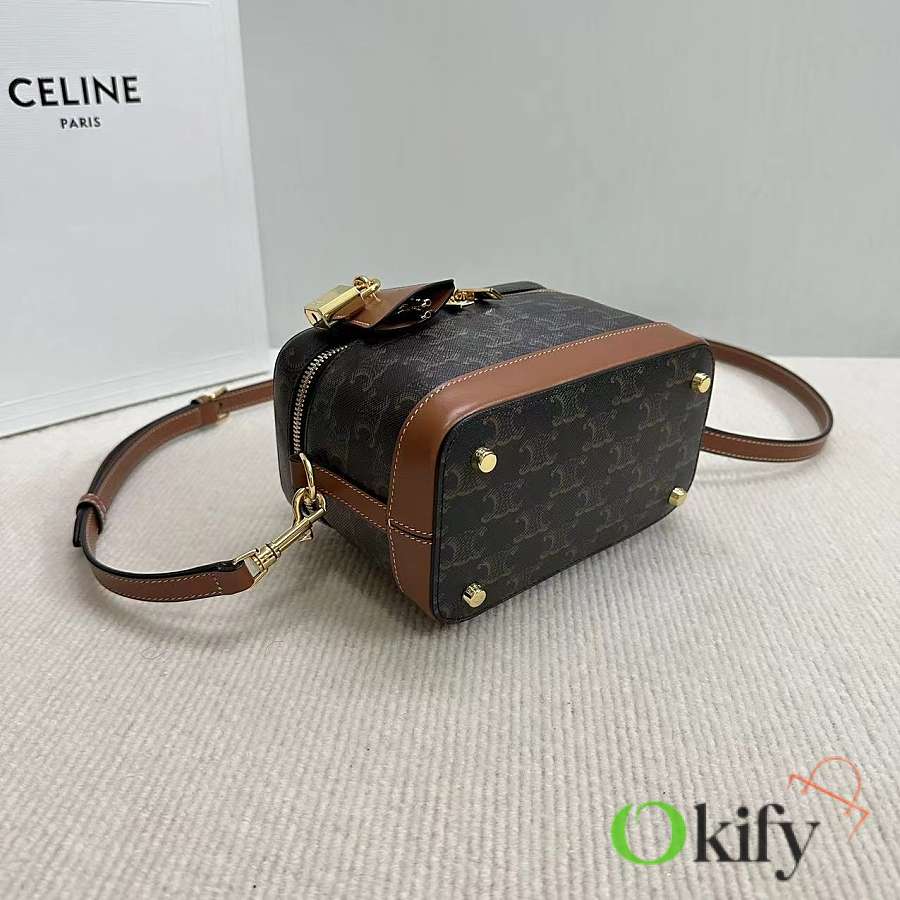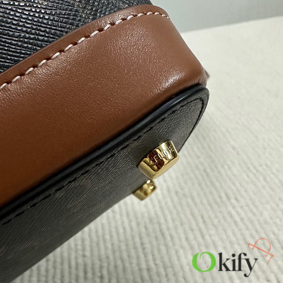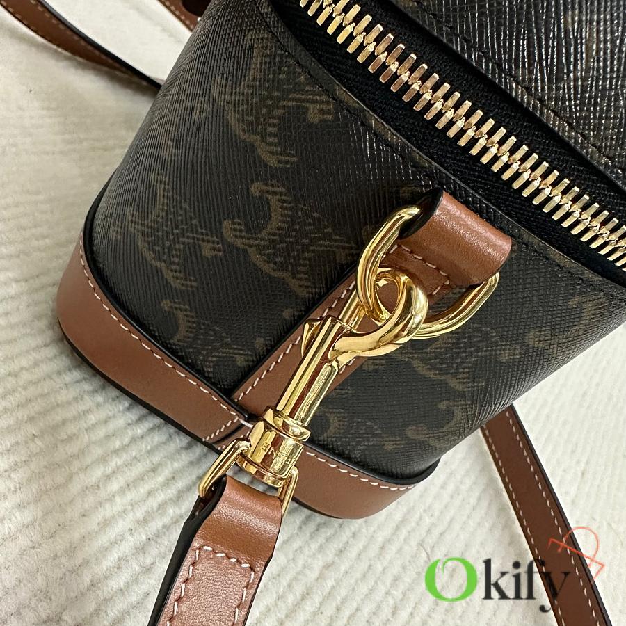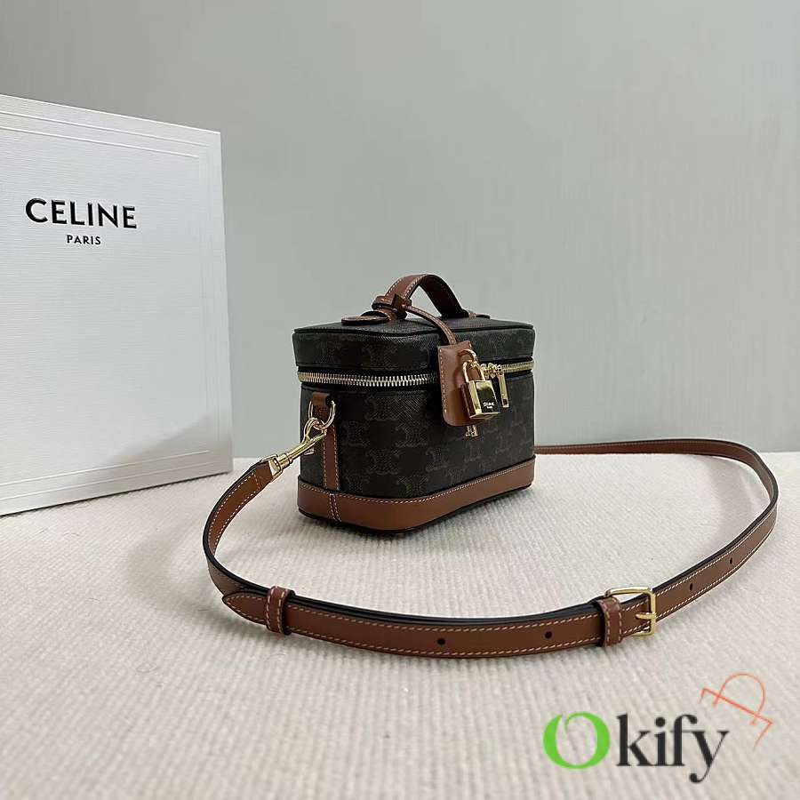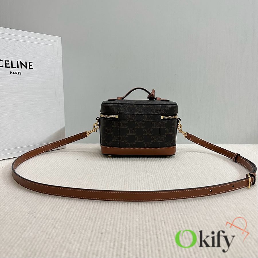 This classic cosmetic bag is inspired by the cosmetic bag of MAISON CE. This season, the handbag series is innovative and the size is very good. This practical, versatile and sophisticated cosmetic bag takes its name from its CE shape. CE VANITY's first season features natural calfskin, CE's most prestigious leather, boasting a sturdy texture and the ability to create delicate, distinctive structures. The chain design is inspired by the Arc de Triomphe. The tan leather trim is a signature of the CE TRIOMPHE CANVAS.