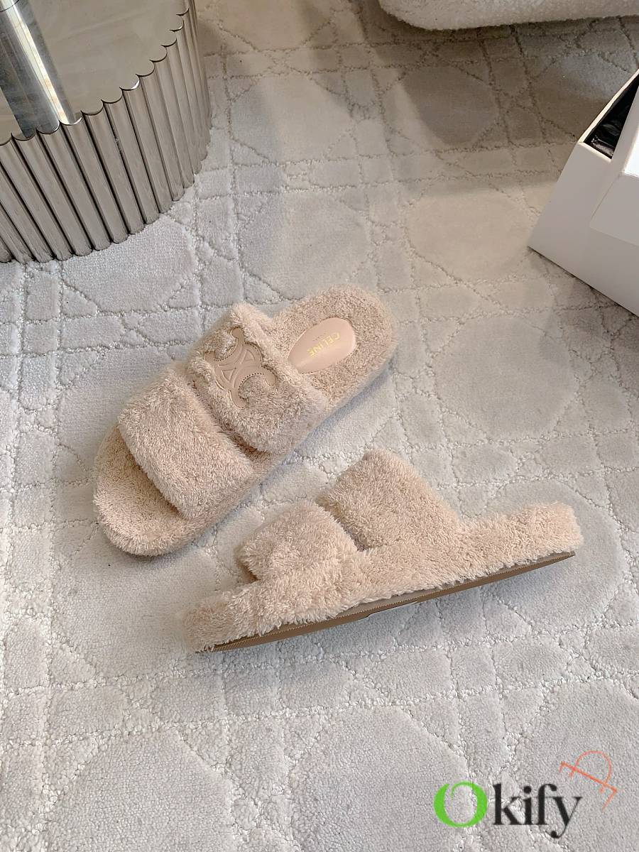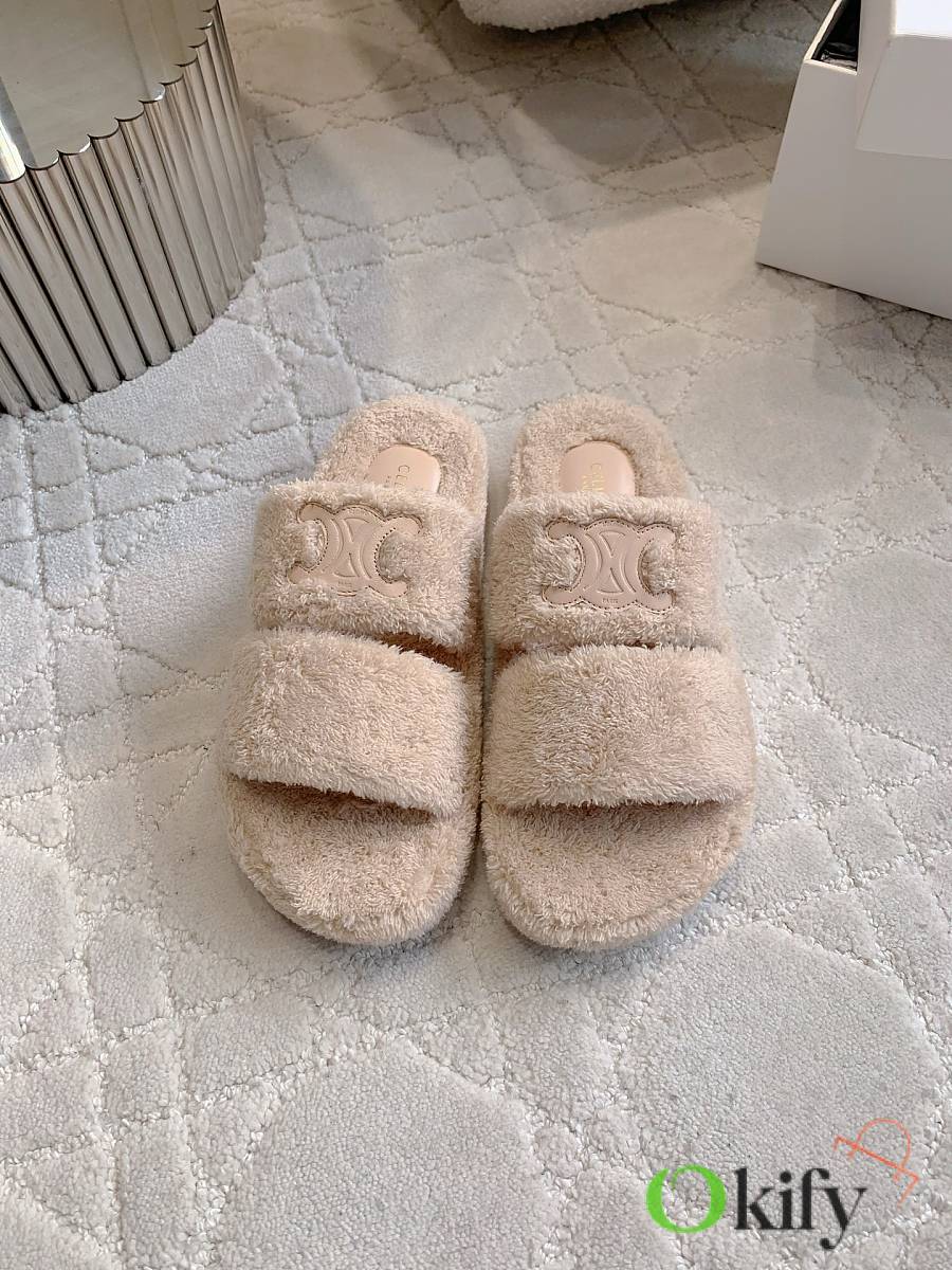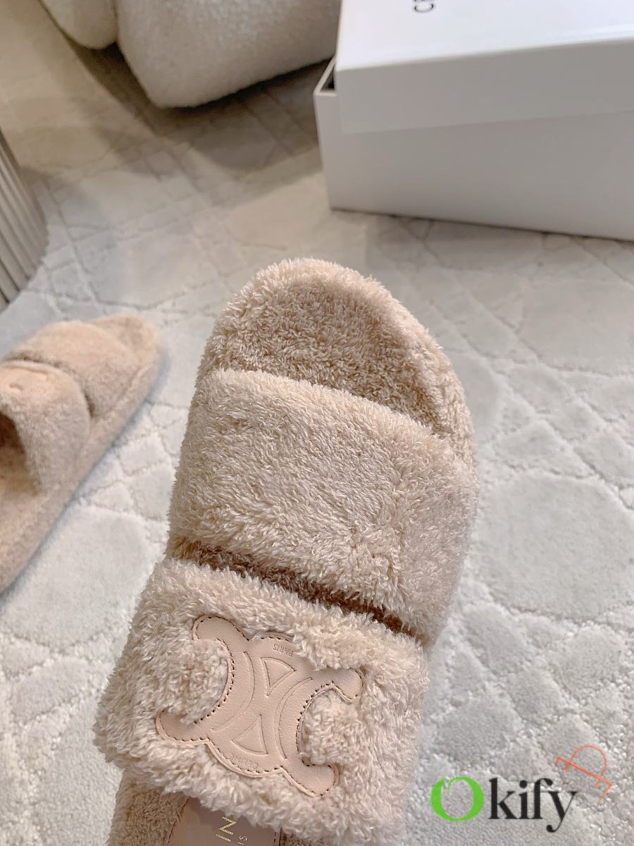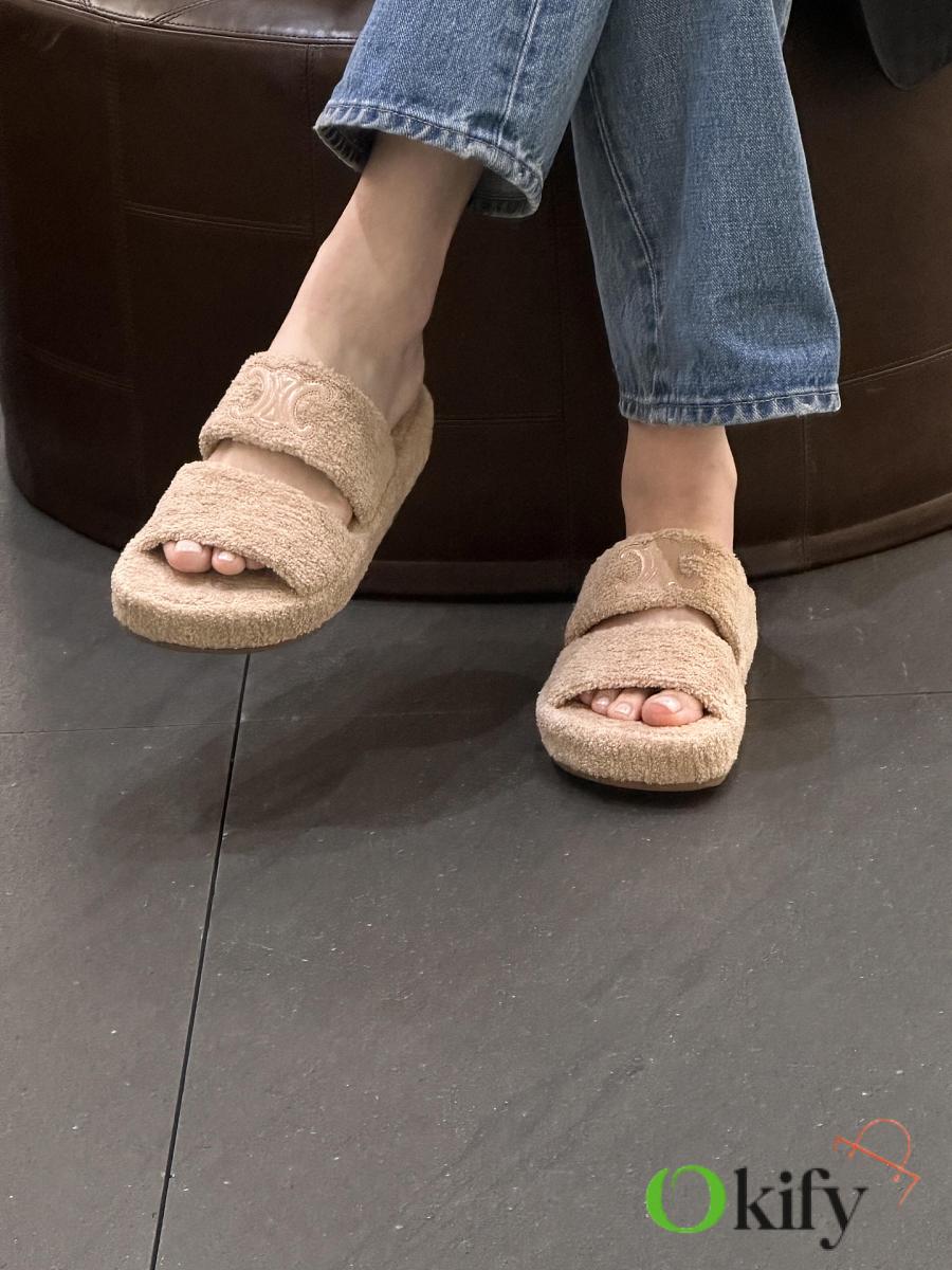 Celin's new platform furry slippers are a versatile and timeless accessory, incredibly comfortable, and feel like walking on clouds—lazy yet stylish. Original terry cloth fabric, original mold, sole size 35-39 (40 made to order).