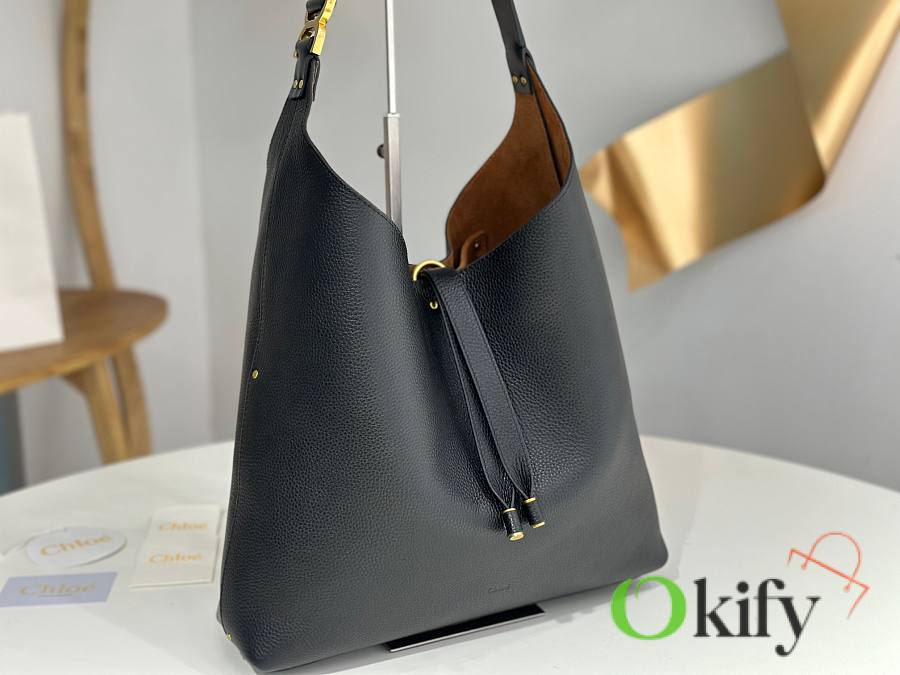 Chloe's classic Marcie bag blends feminine beauty with the spirit of the 70s. This year's Hobo version features the Marcie series' signature double-C clasp hardware and tassel pendant. Its clean lines, soft, casual silhouette, and contrasting handles add a touch of chic to this hobo bag. Lightweight yet spacious, this is an irresistible high-end work bag that looks amazing with anything! (Comes with original exclusive gift bag