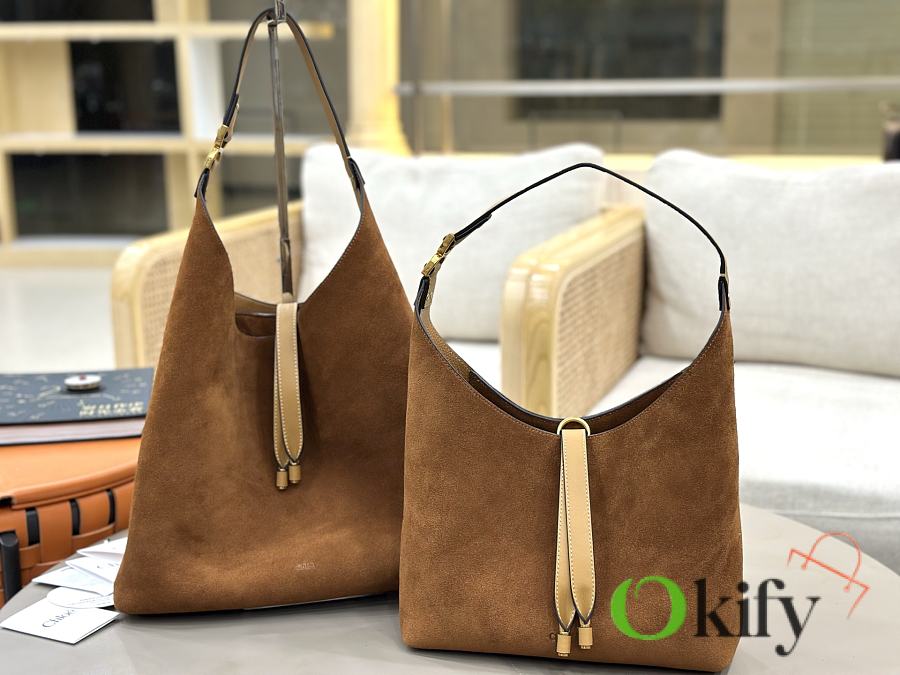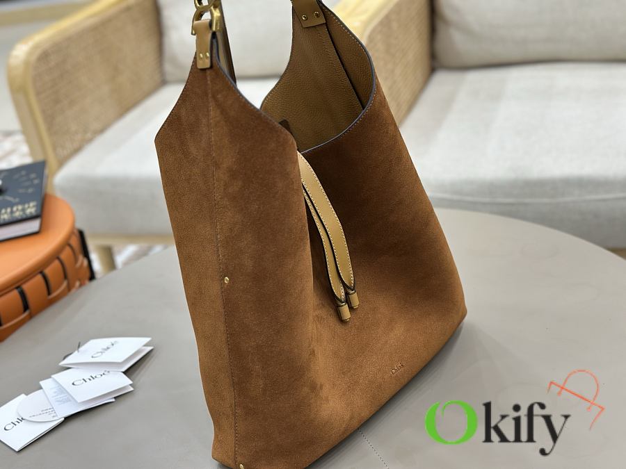 Okify Chloe Large Marcie Hobo Bag Brown Suede 36x29x10cm