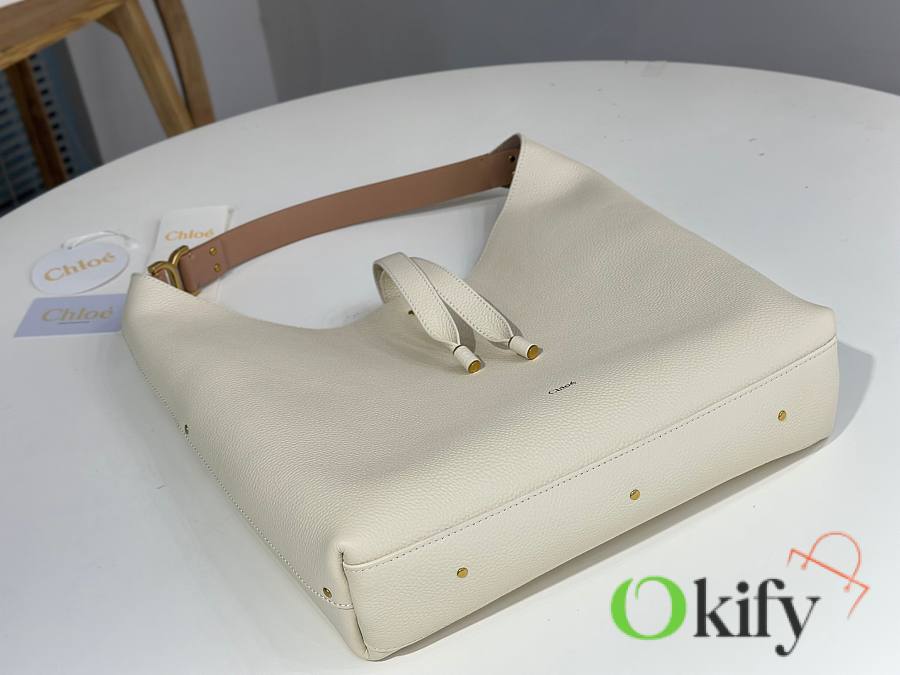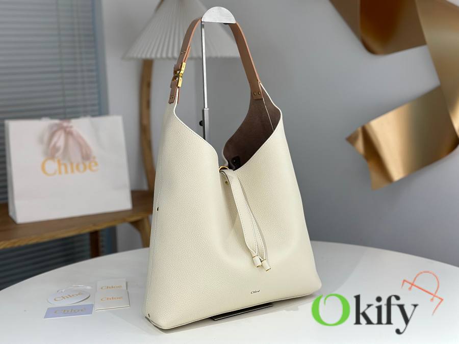 Chloe's classic Marcie bag blends feminine beauty with the spirit of the 70s. This year's Hobo version features the Marcie series' signature double-C clasp hardware and tassel pendant. Its clean lines, soft, casual silhouette, and contrasting handles add a touch of chic to this hobo bag. Lightweight yet spacious, this is an irresistible high-end work bag that looks amazing with anything! (Comes with original exclusive gift bag