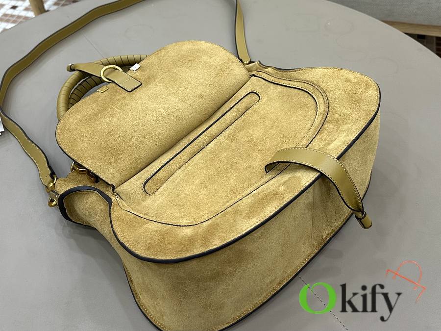 Okify Chloe Marcie Saddle Large Bag Camel Suede 36x28x12cm