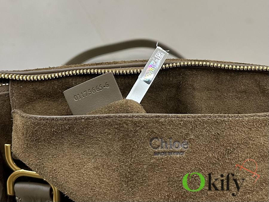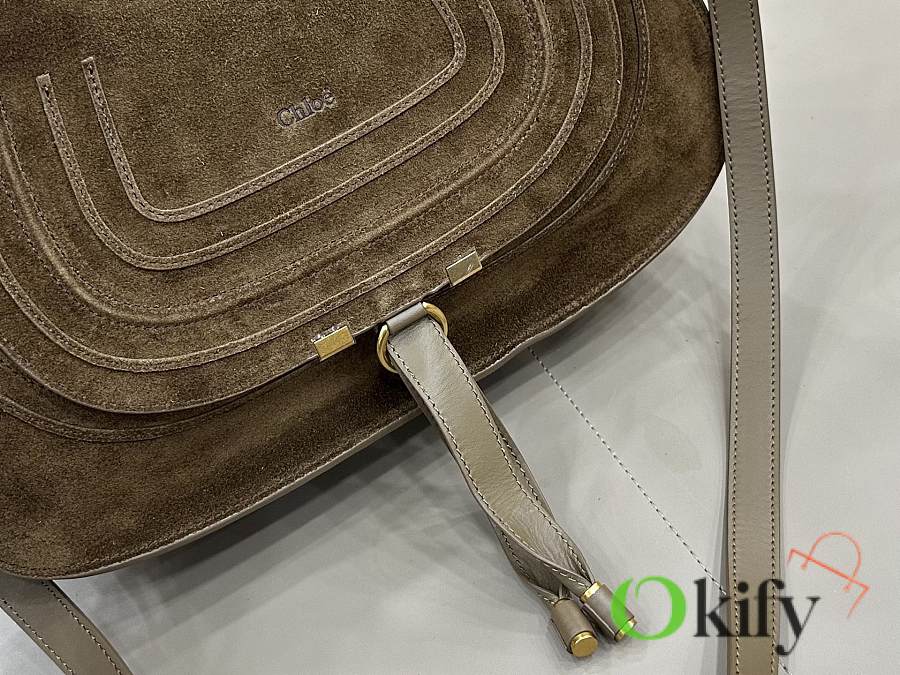 Okify Chloe Marcie Saddle Large Bag Dark Brown Suede 36x28x12cm