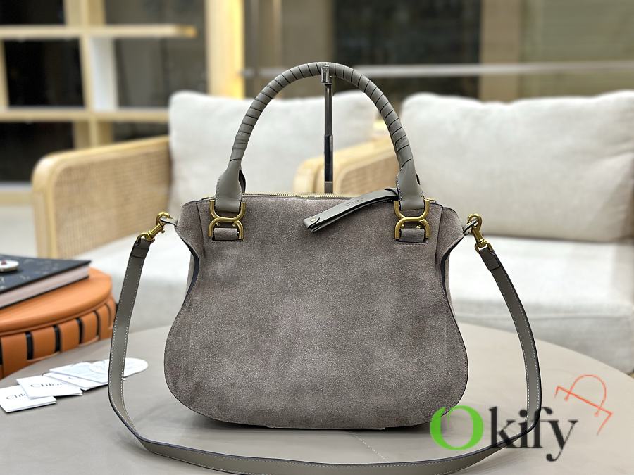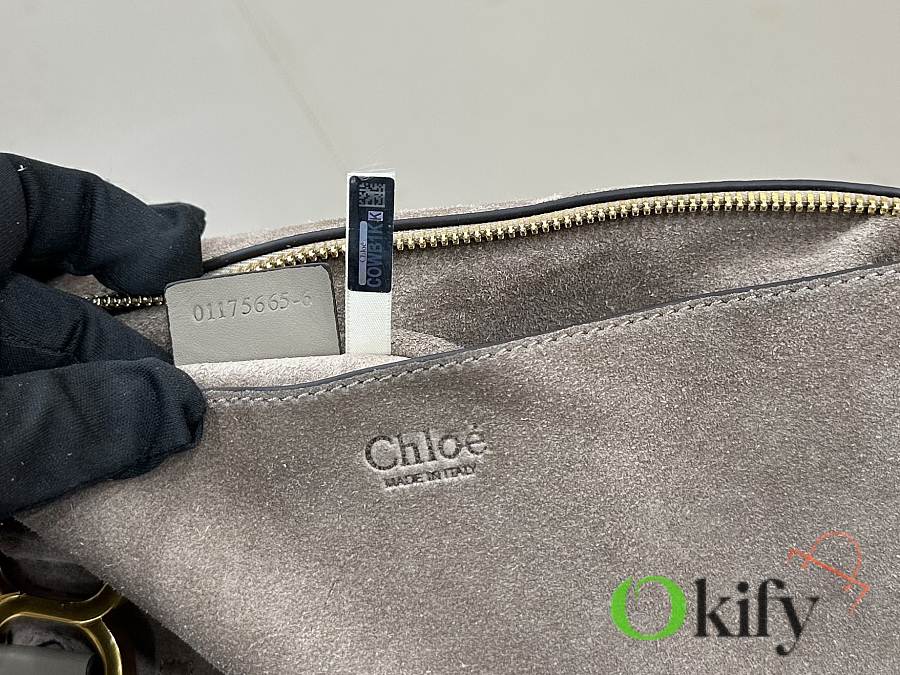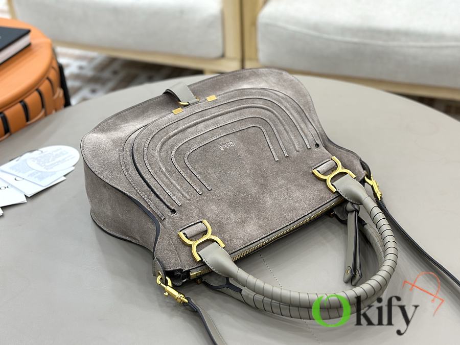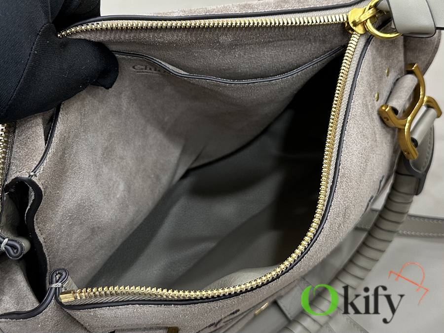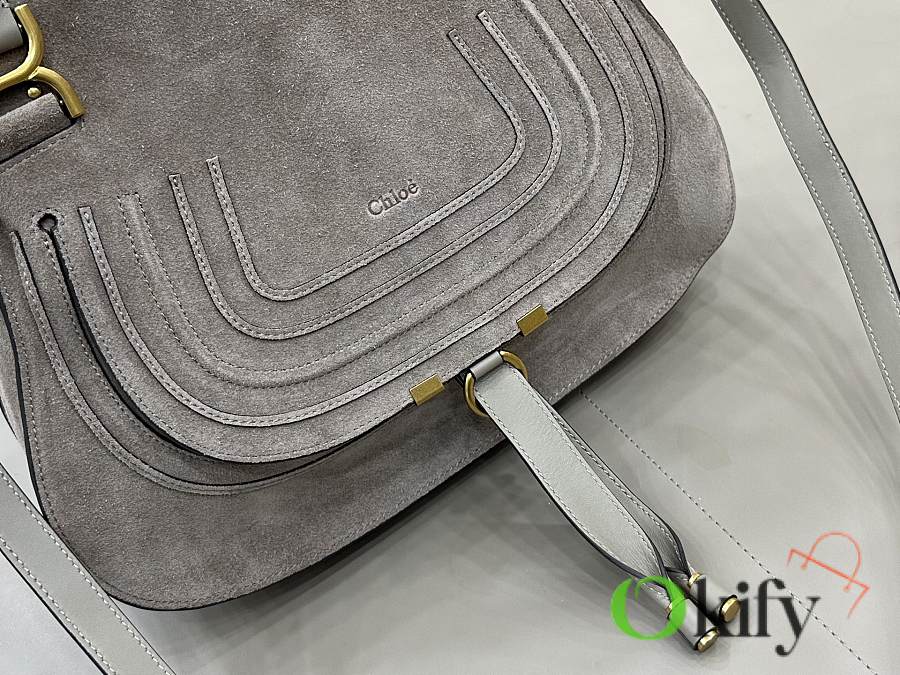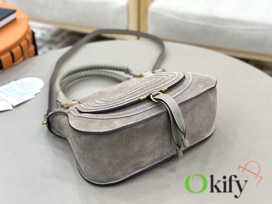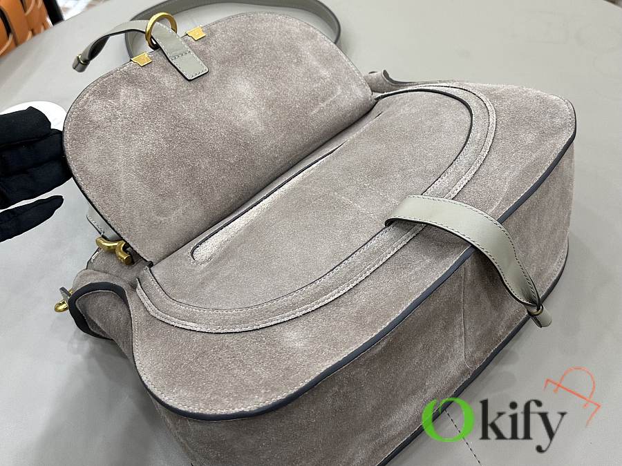 Okify Chloe Marcie Saddle Large Bag Gray Suede 36x28x12cm