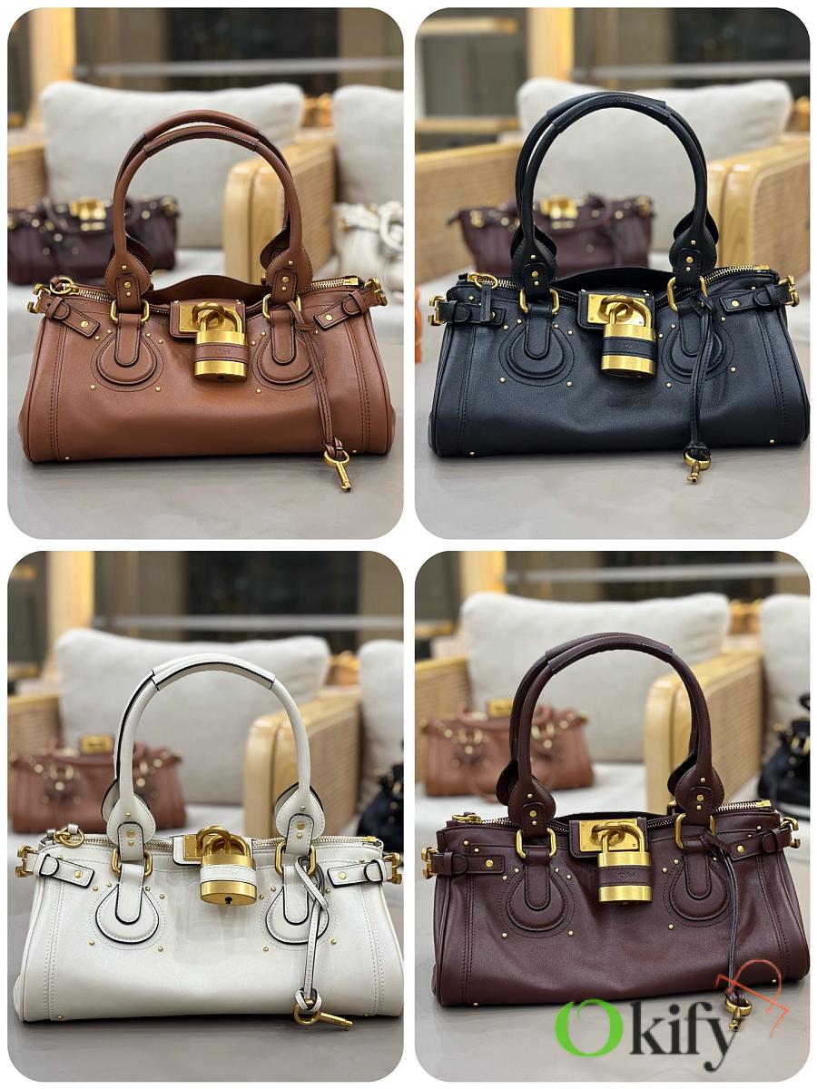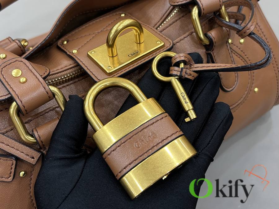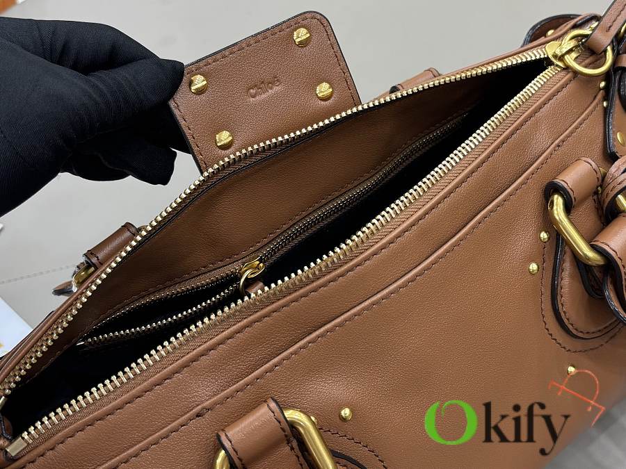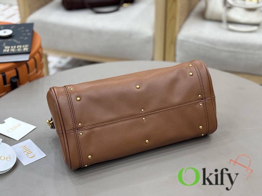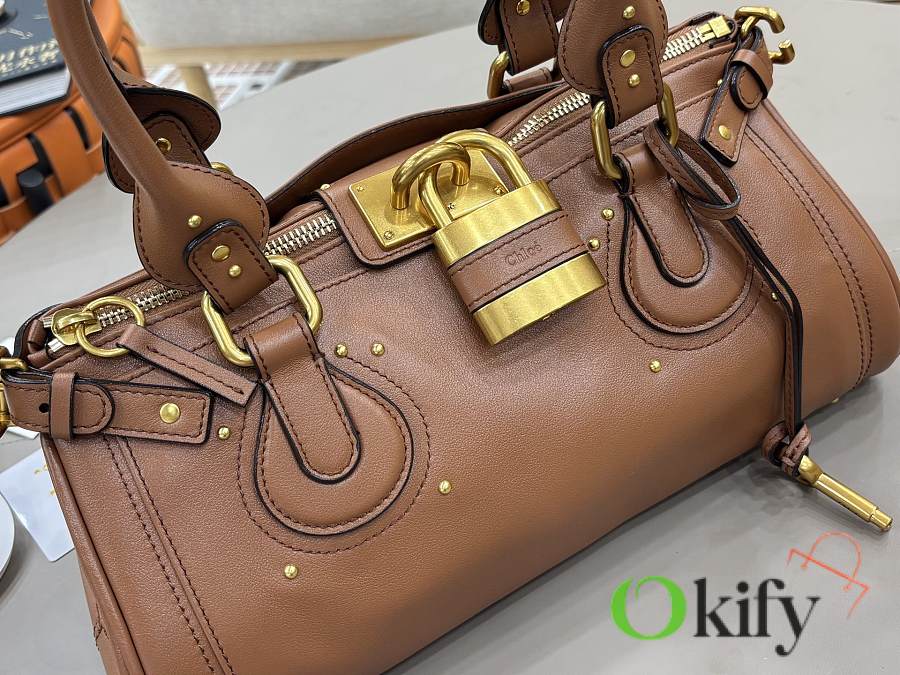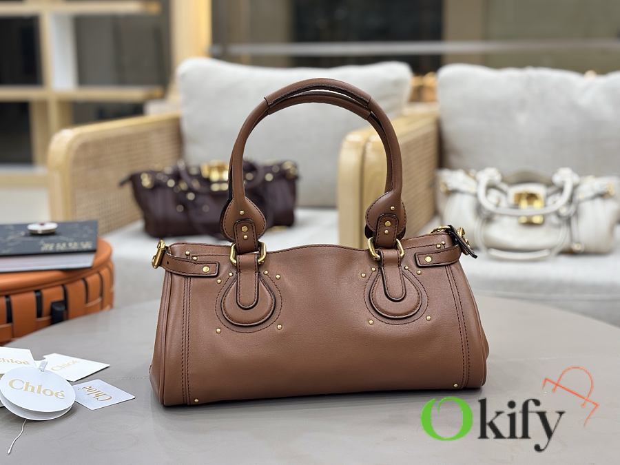Okify Chloe Paddington Bag In Brown Grained Leather 36x18x16cm