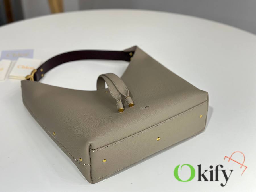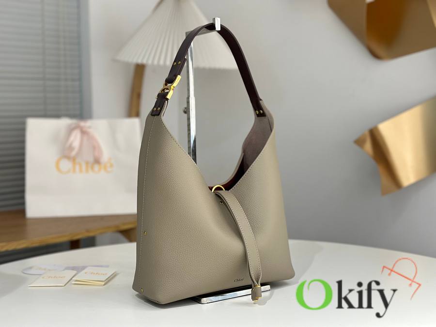 Chloe's classic Marcie bag blends feminine beauty with the spirit of the 70s. This year's Hobo version features the Marcie series' signature double-C clasp hardware and tassel pendant. Its clean lines, soft, casual silhouette, and contrasting handles add a touch of chic to this hobo bag. Lightweight yet spacious, this is an irresistible high-end work bag that looks amazing with anything