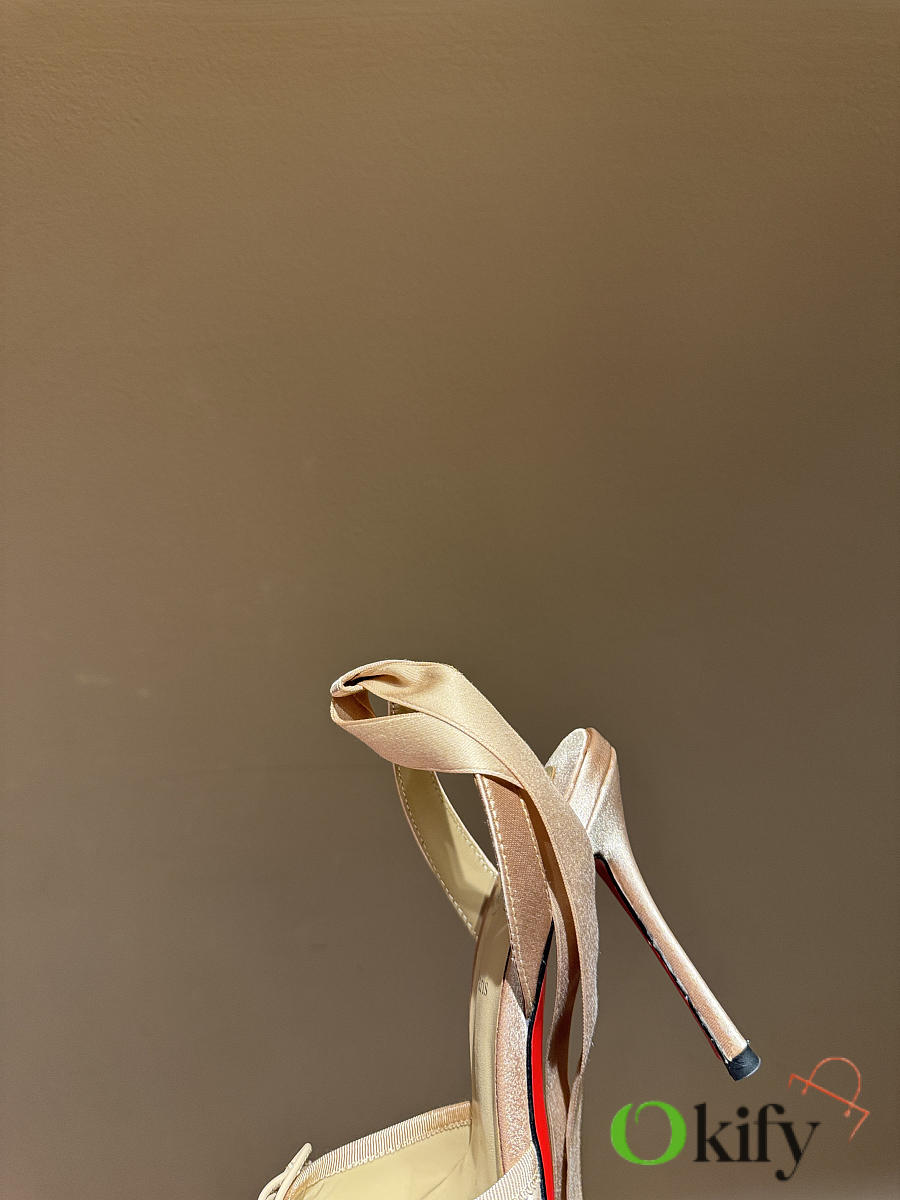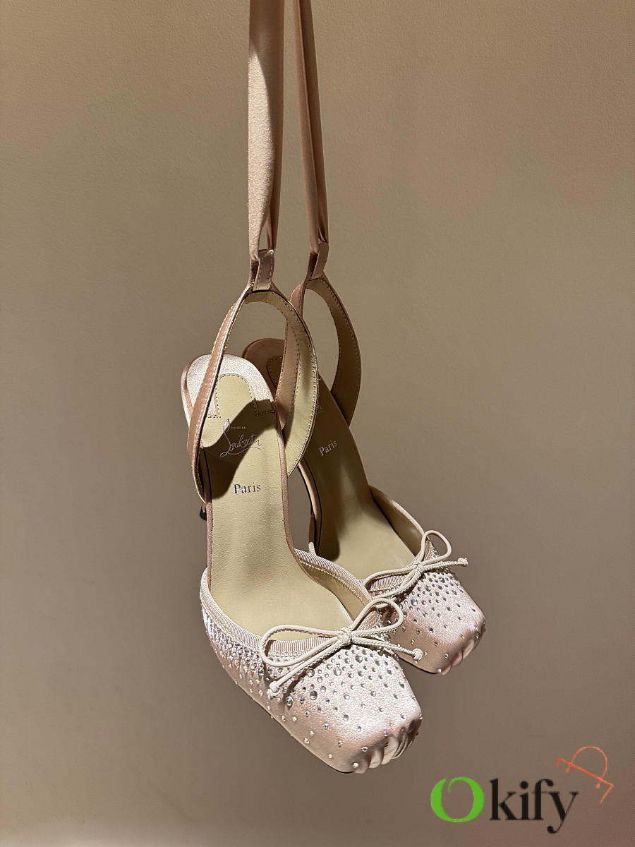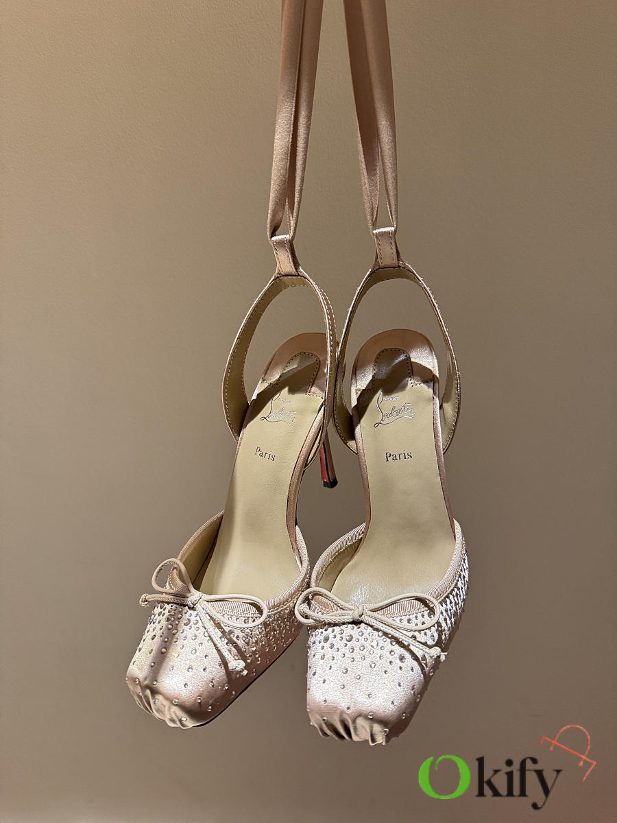 Okify Christian Louboutin Beige Satin Ballet Heels With Crystal 11cm