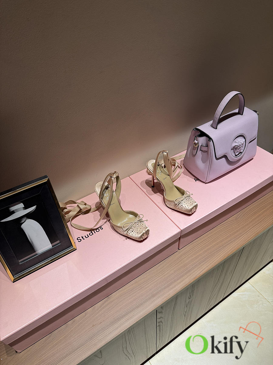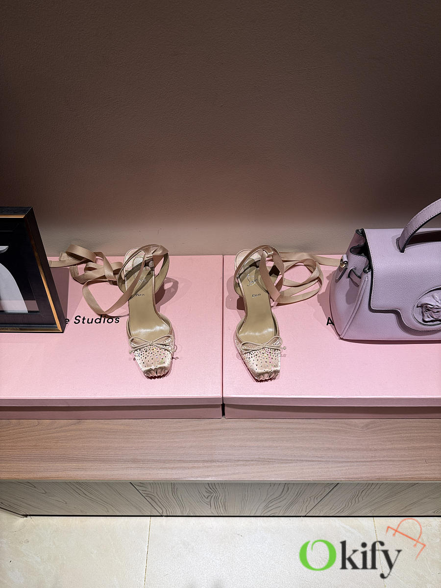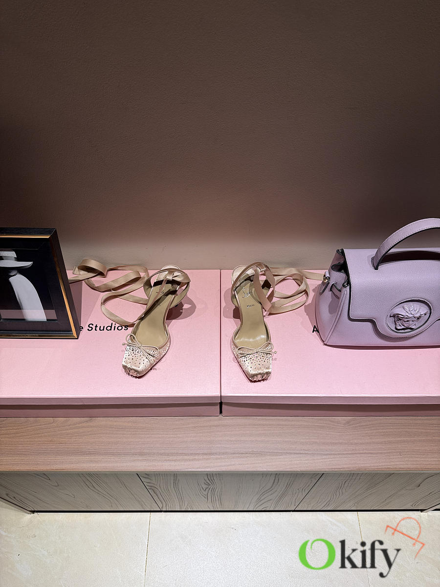 Okify Christian Louboutin Beige Satin Ballet Heels With Crystal 11cm
