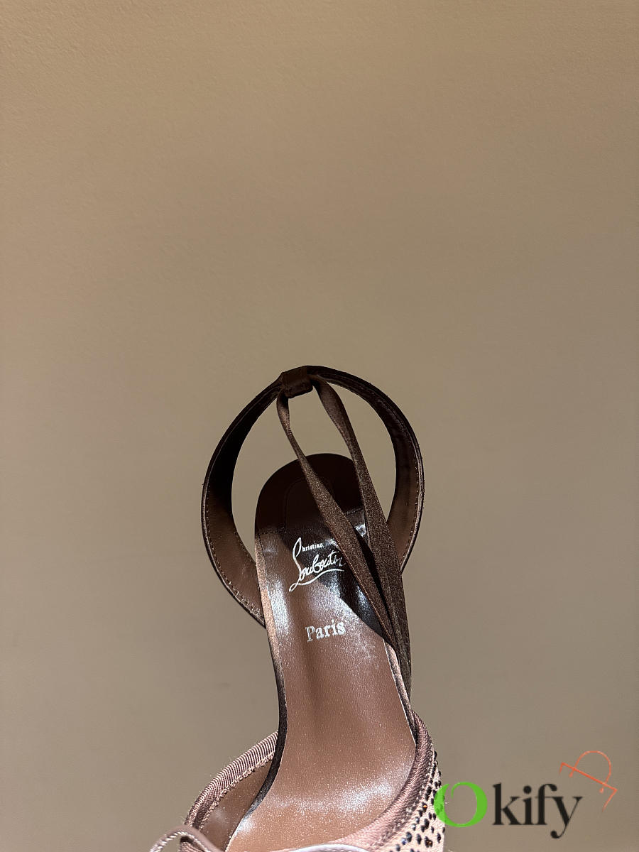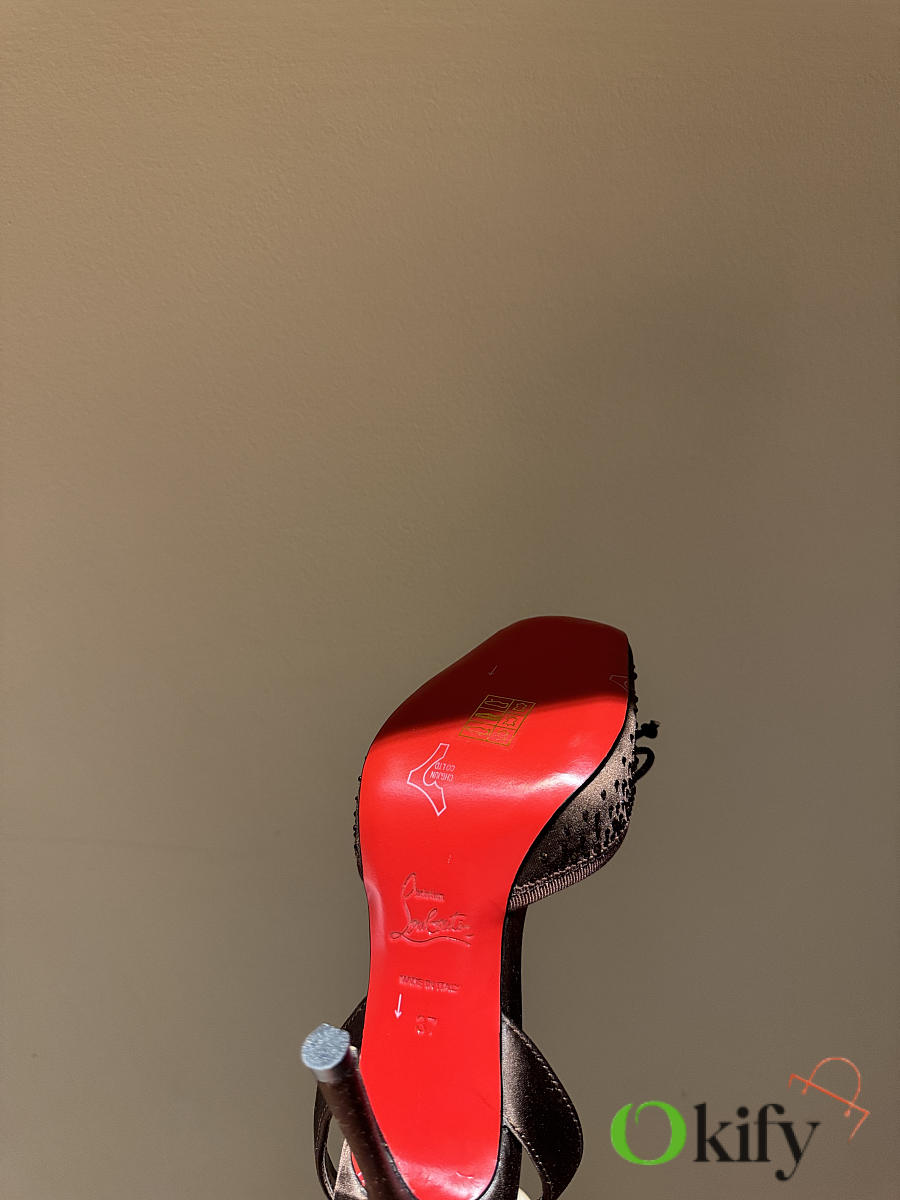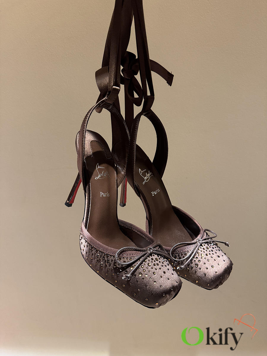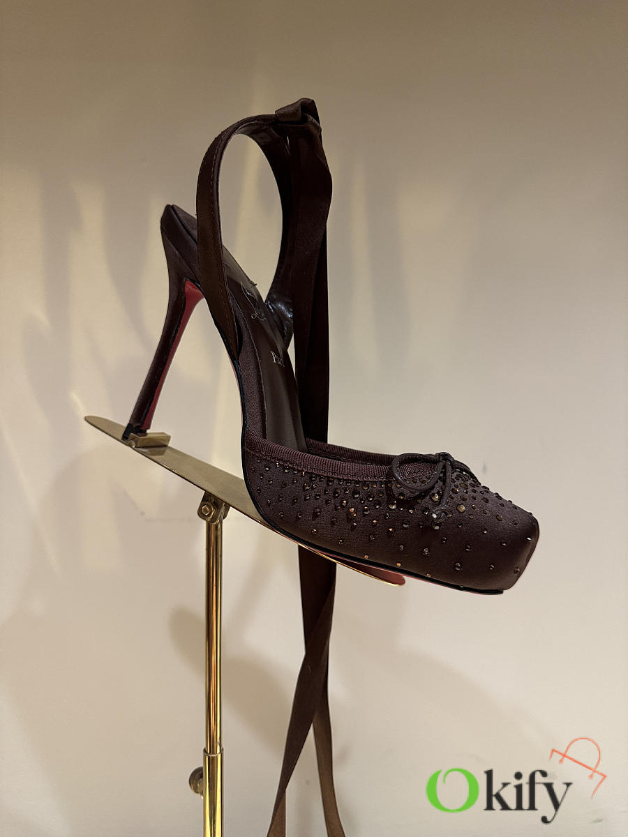 Okify Christian Louboutin Dark Brown Satin Ballet Heels With Crystal 11cm