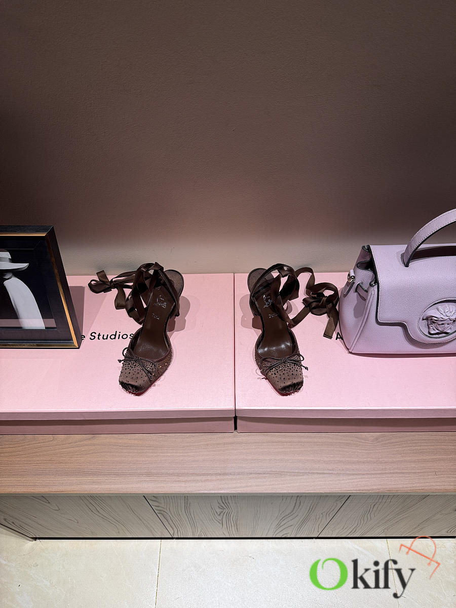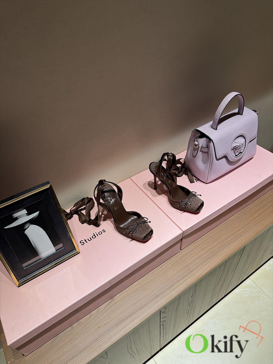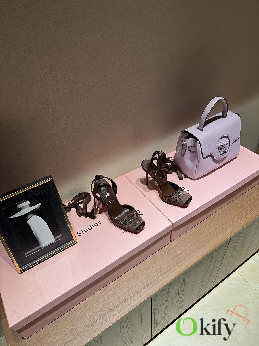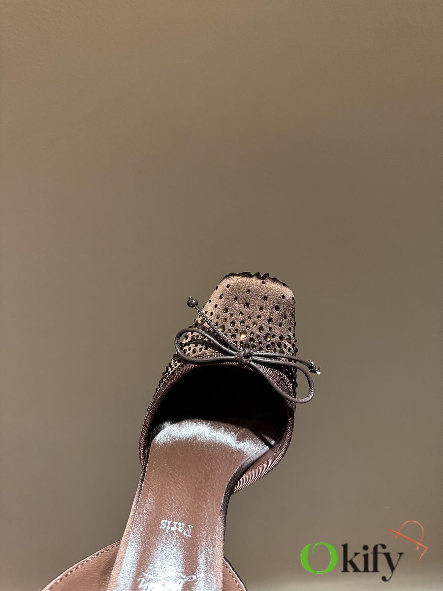 Okify Christian Louboutin Dark Brown Satin Ballet Heels With Crystal 11cm