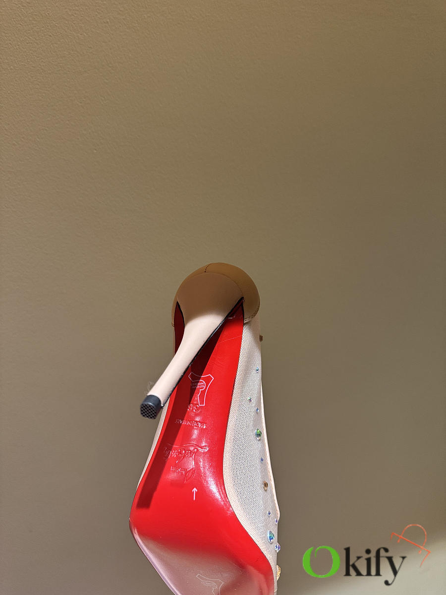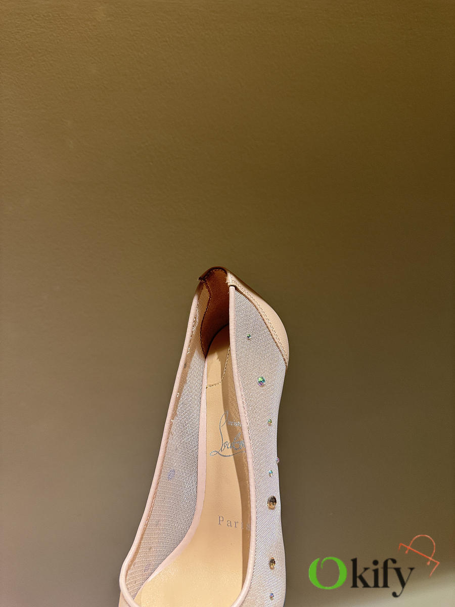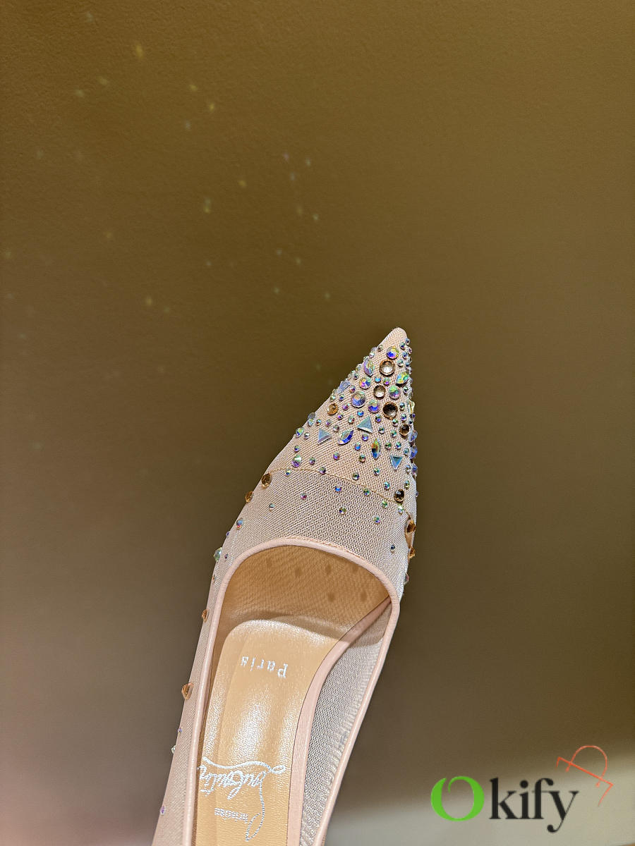Okify Christian Louboutin Nude Mesh Crystal High Heels 10.5cm