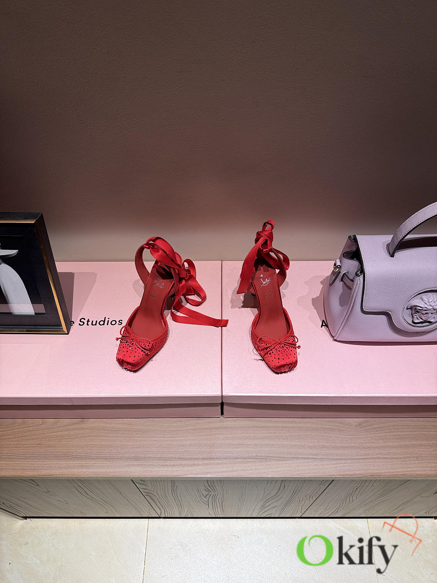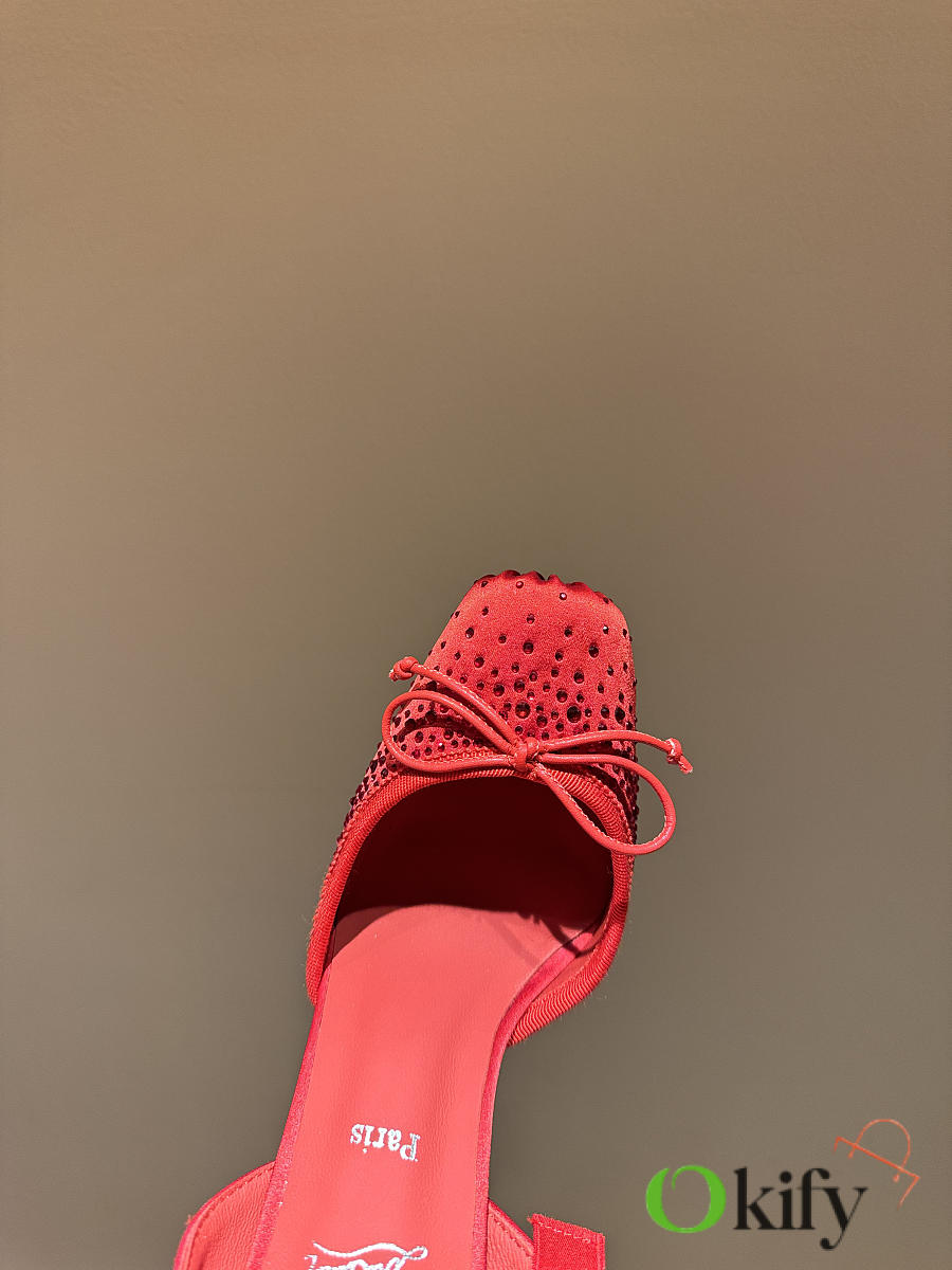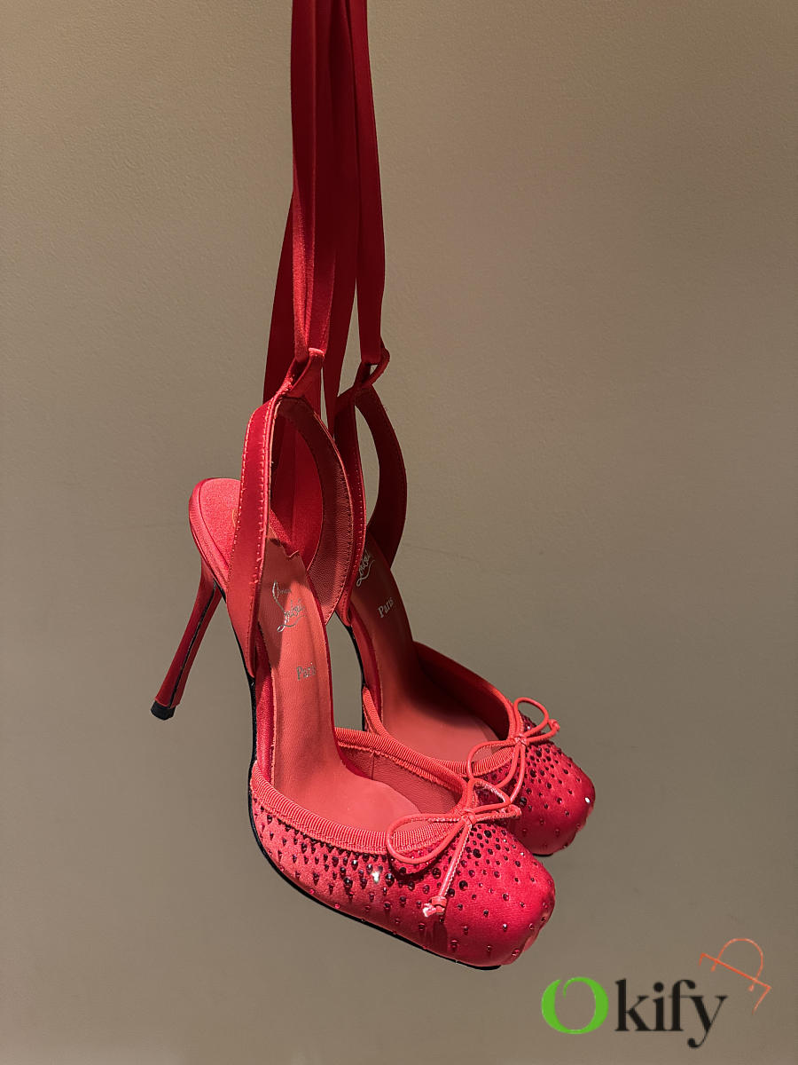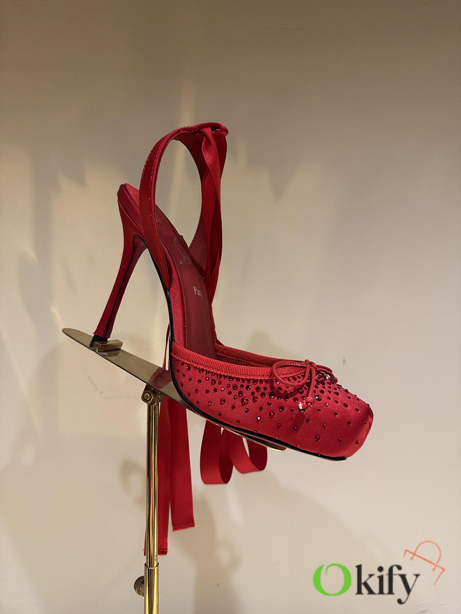 Okify Christian Louboutin Red Satin Ballet Heels With Crystal 11cm