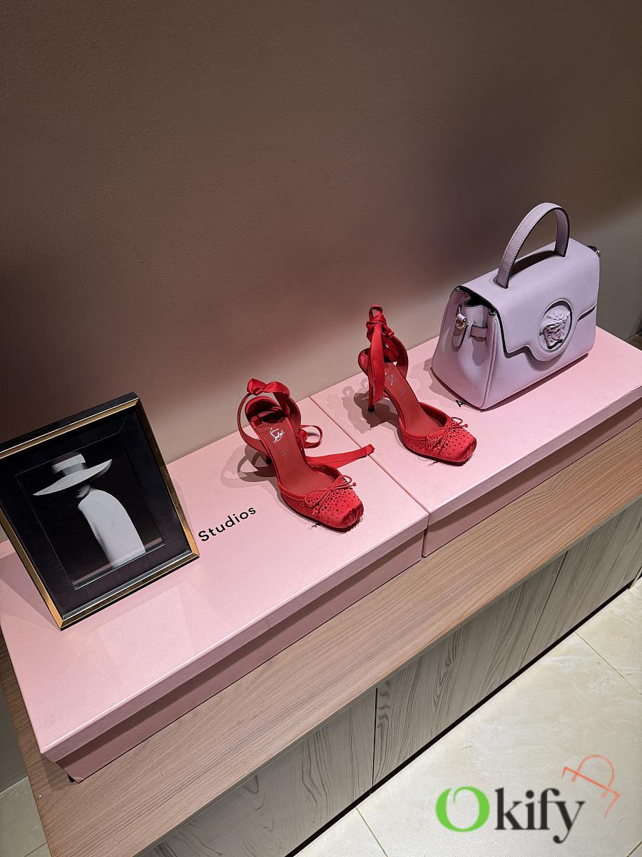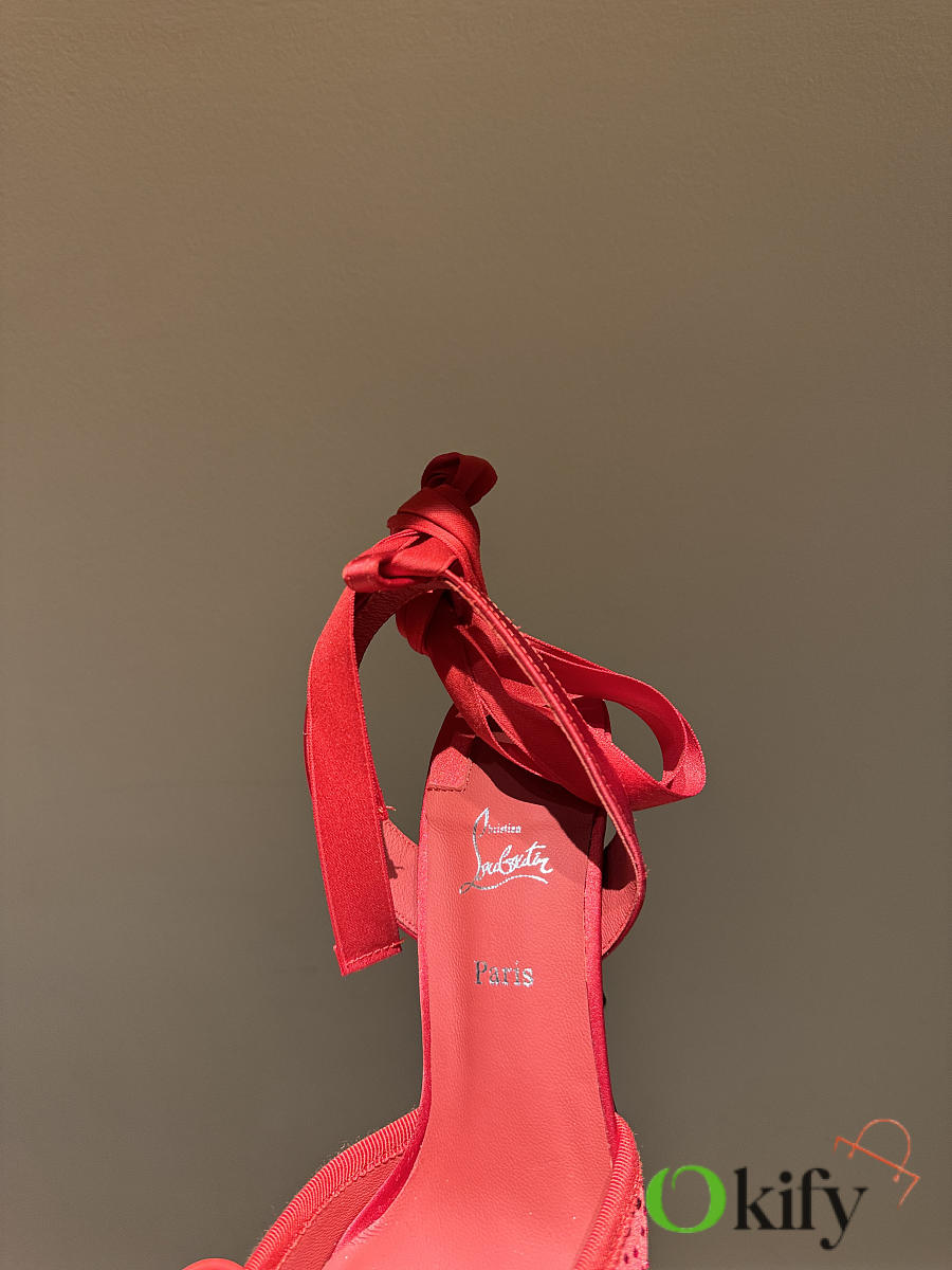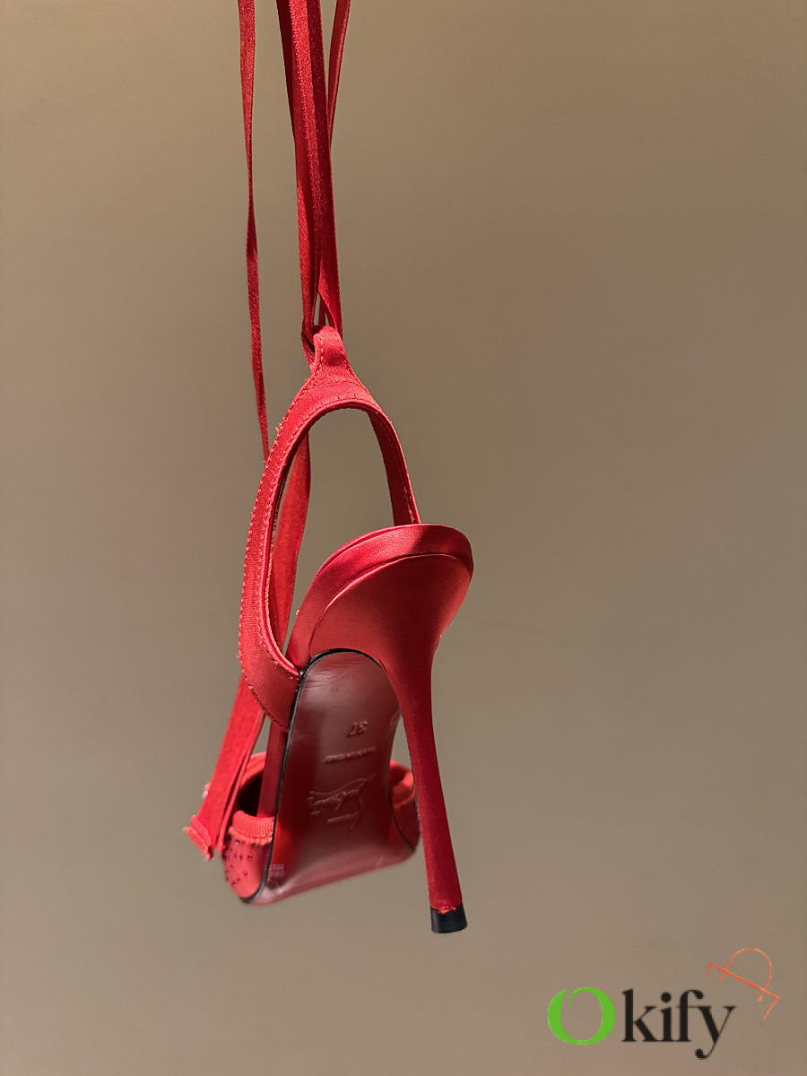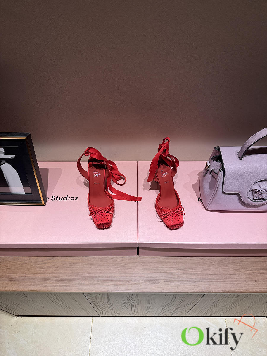 Okify Christian Louboutin Red Satin Ballet Heels With Crystal 11cm