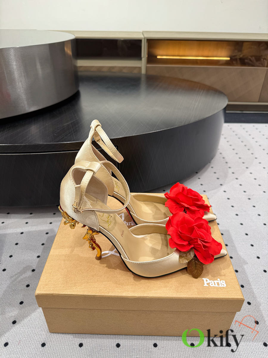 Fabric: Silk ❥Inner lining: sheepskin ❥ Shoe sole made of cowhide ❥ An elegant style creates a unique feeling ❥Heel height 11.5 cm