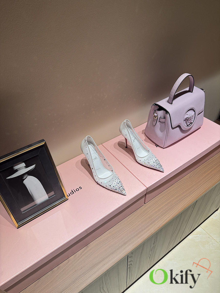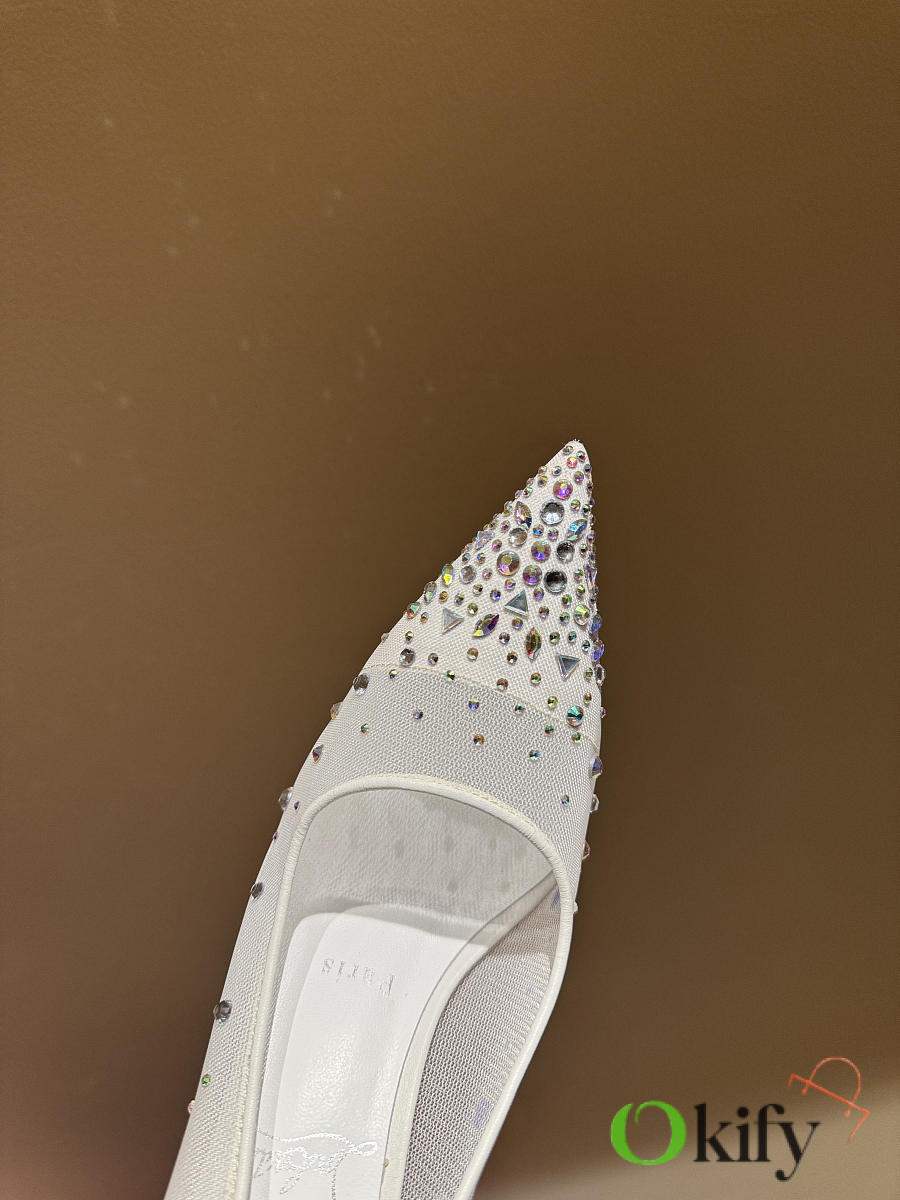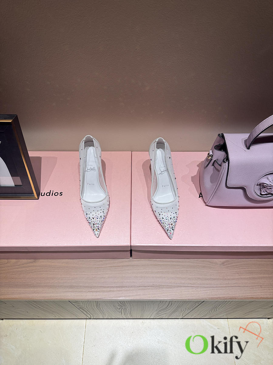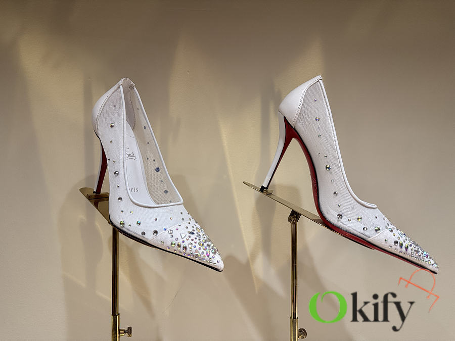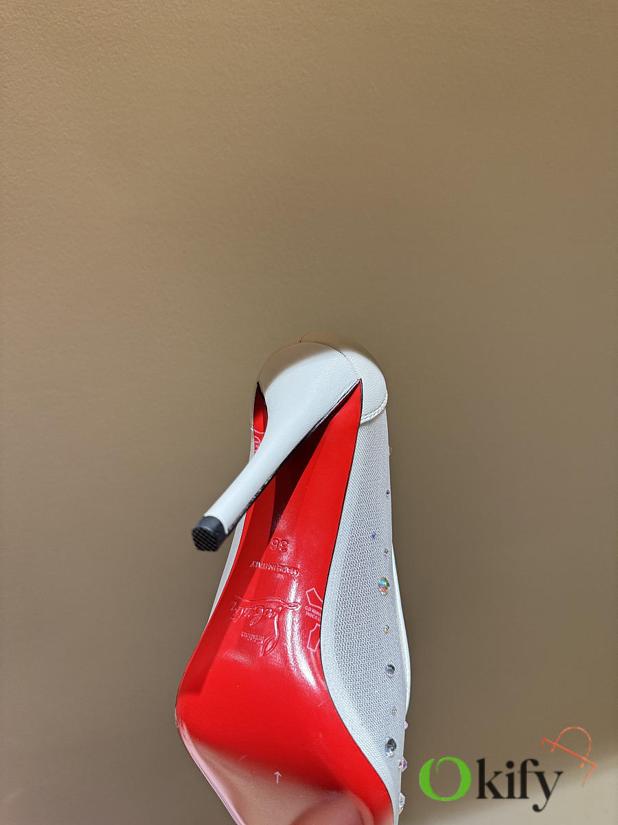 Okify Christian Louboutin White Mesh Crystal High Heels 10.5cm
