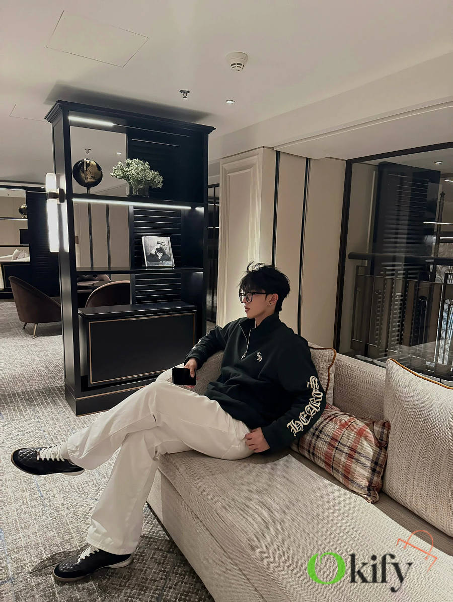 Okify Chrome Heart Set Of Black Sanskrit Sweater And Shorts
