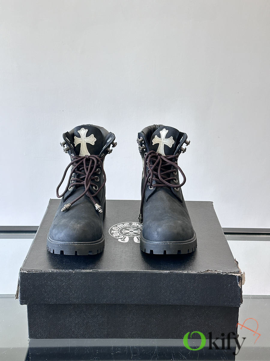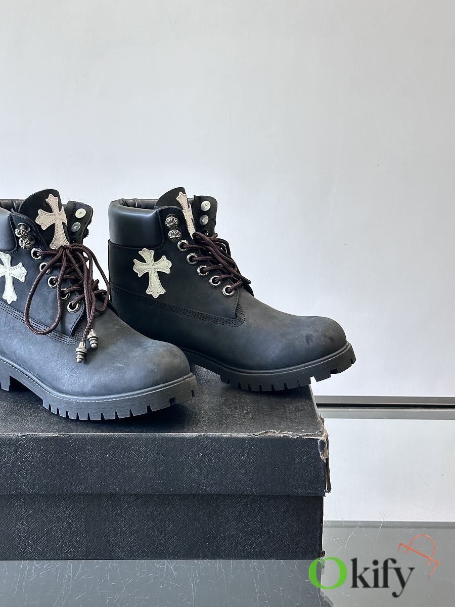 featuring suede and a metal cross, exuding a gothic vibe! The classic 6-inch work boot silhouette boasts chunky laces and metal eyelets, showcasing exquisite details. ✨ The durable and slip-resistant rubber outsole makes them perfect for everyday wear or outdoor activities. A must-have for trendsetters!