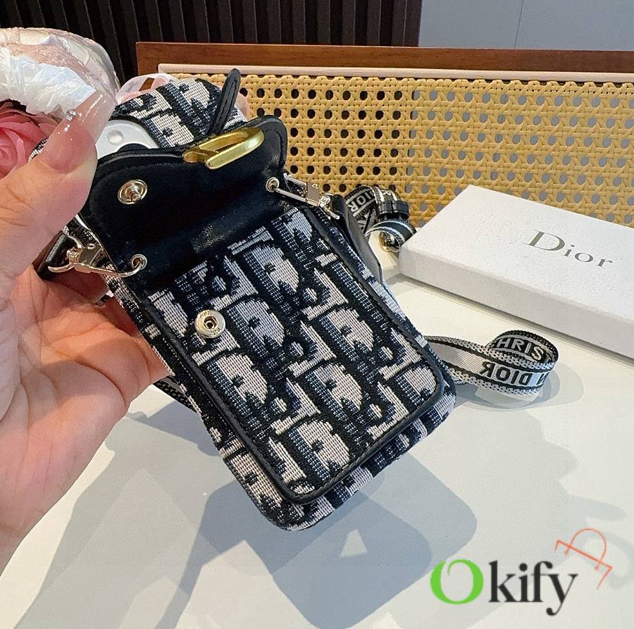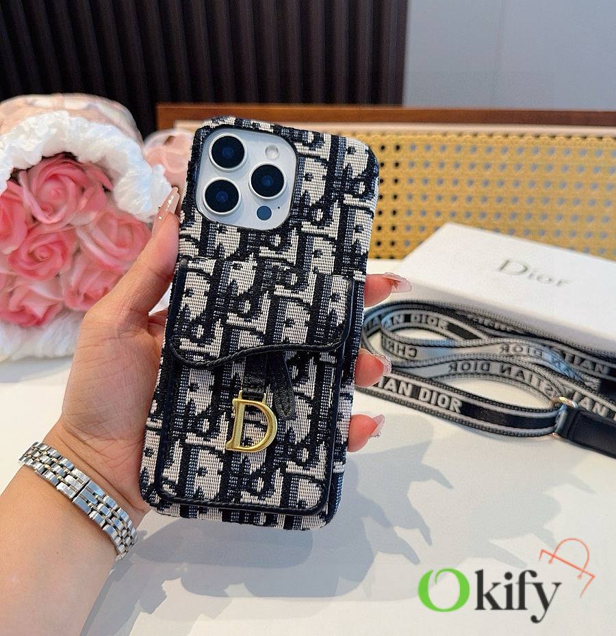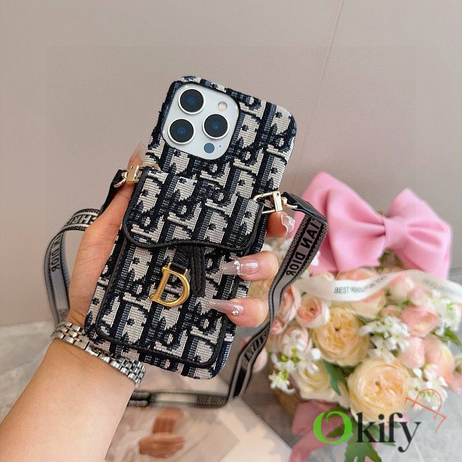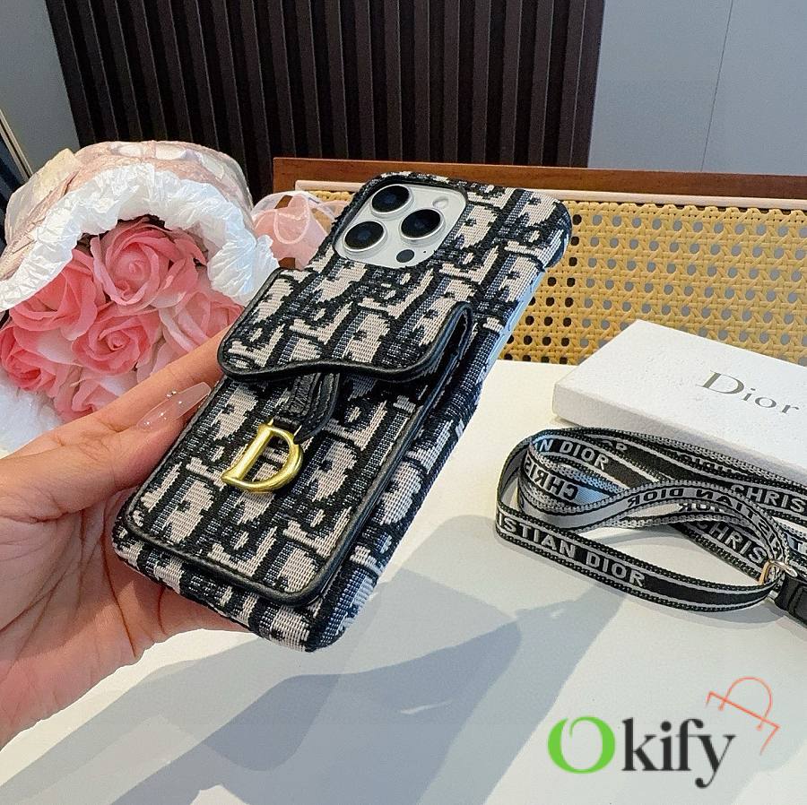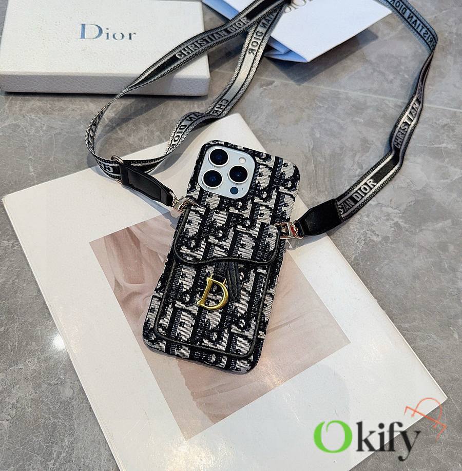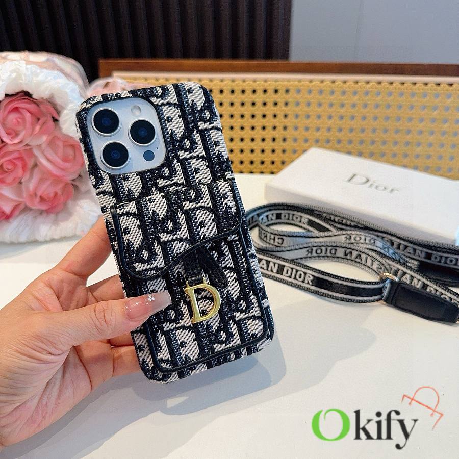 Okify Dior Black Card Holder Phone Case Crossbody Strap 28439
