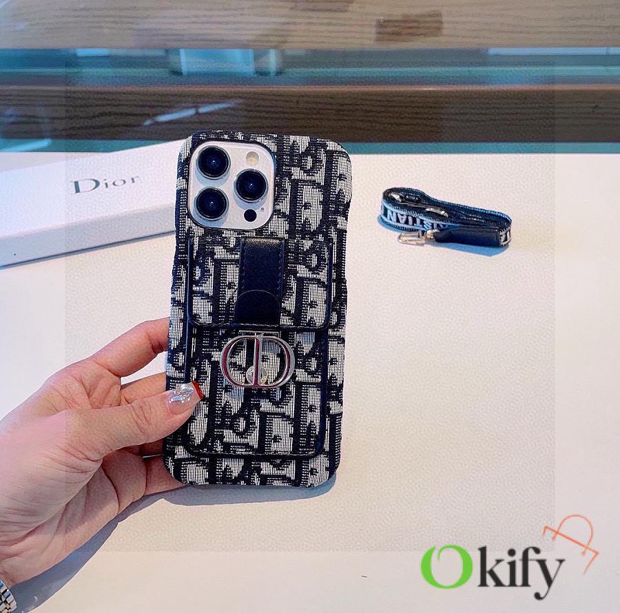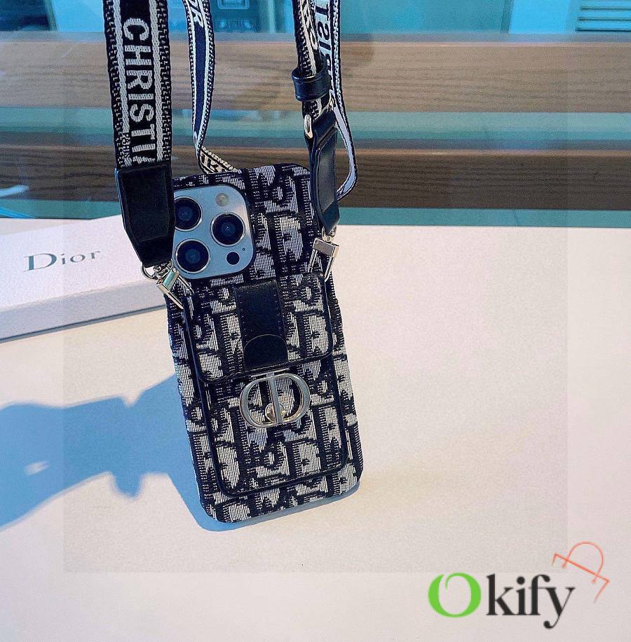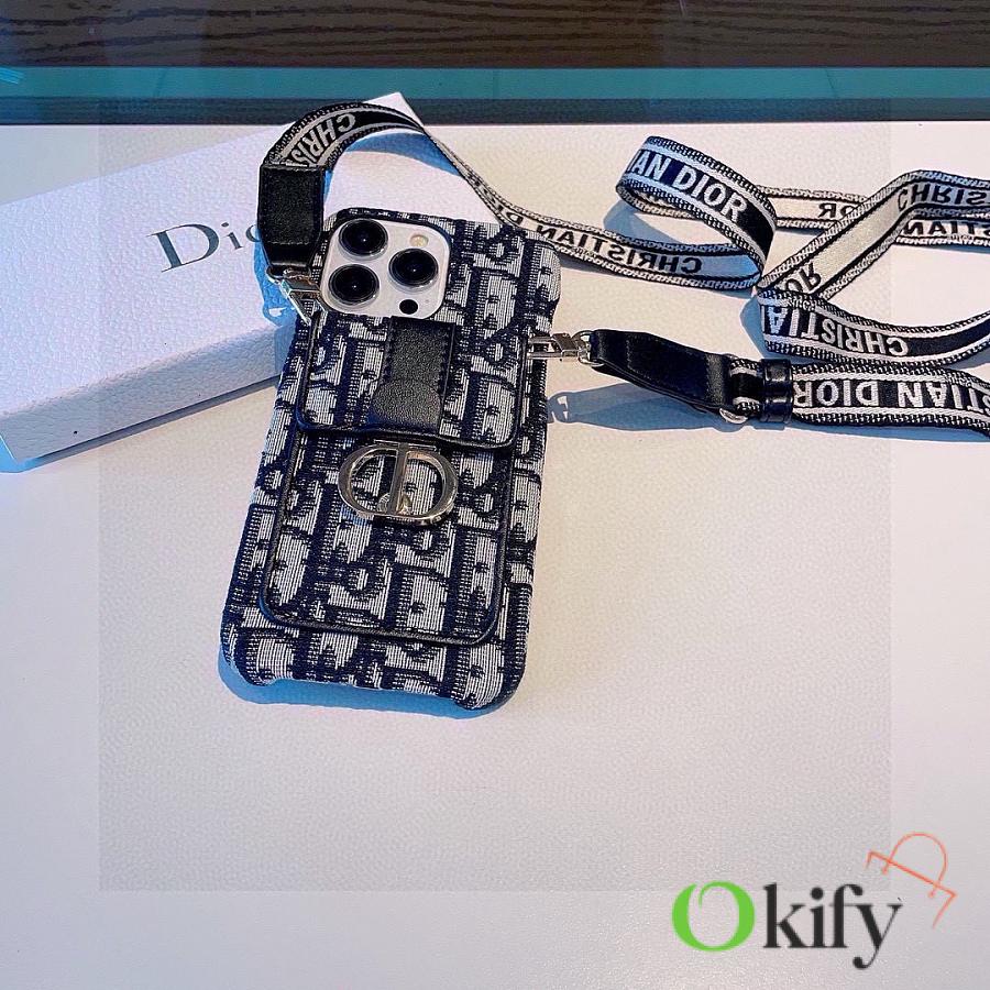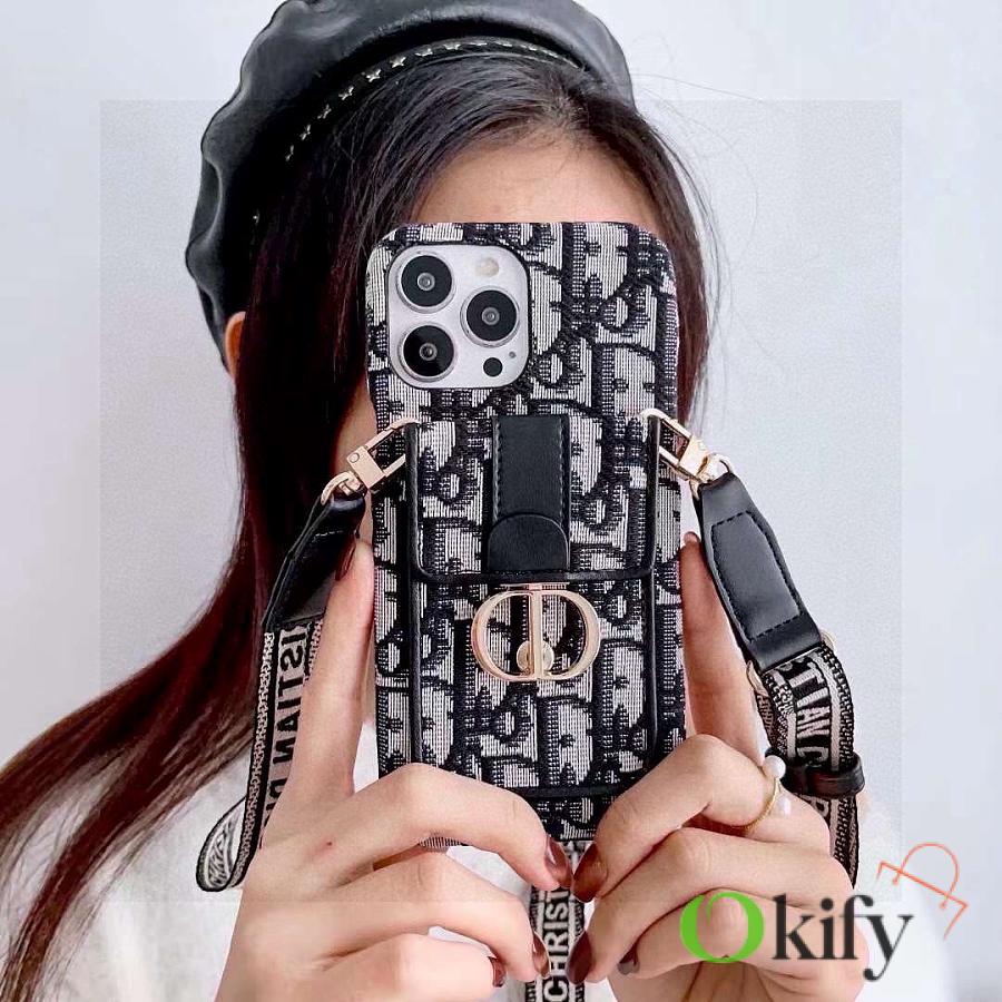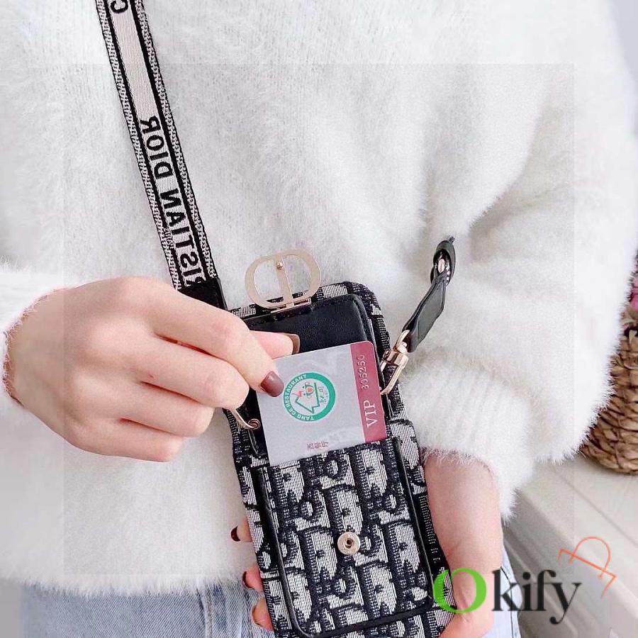 Okify Dior Black Card Holder Phone Case Crossbody Strap 28441