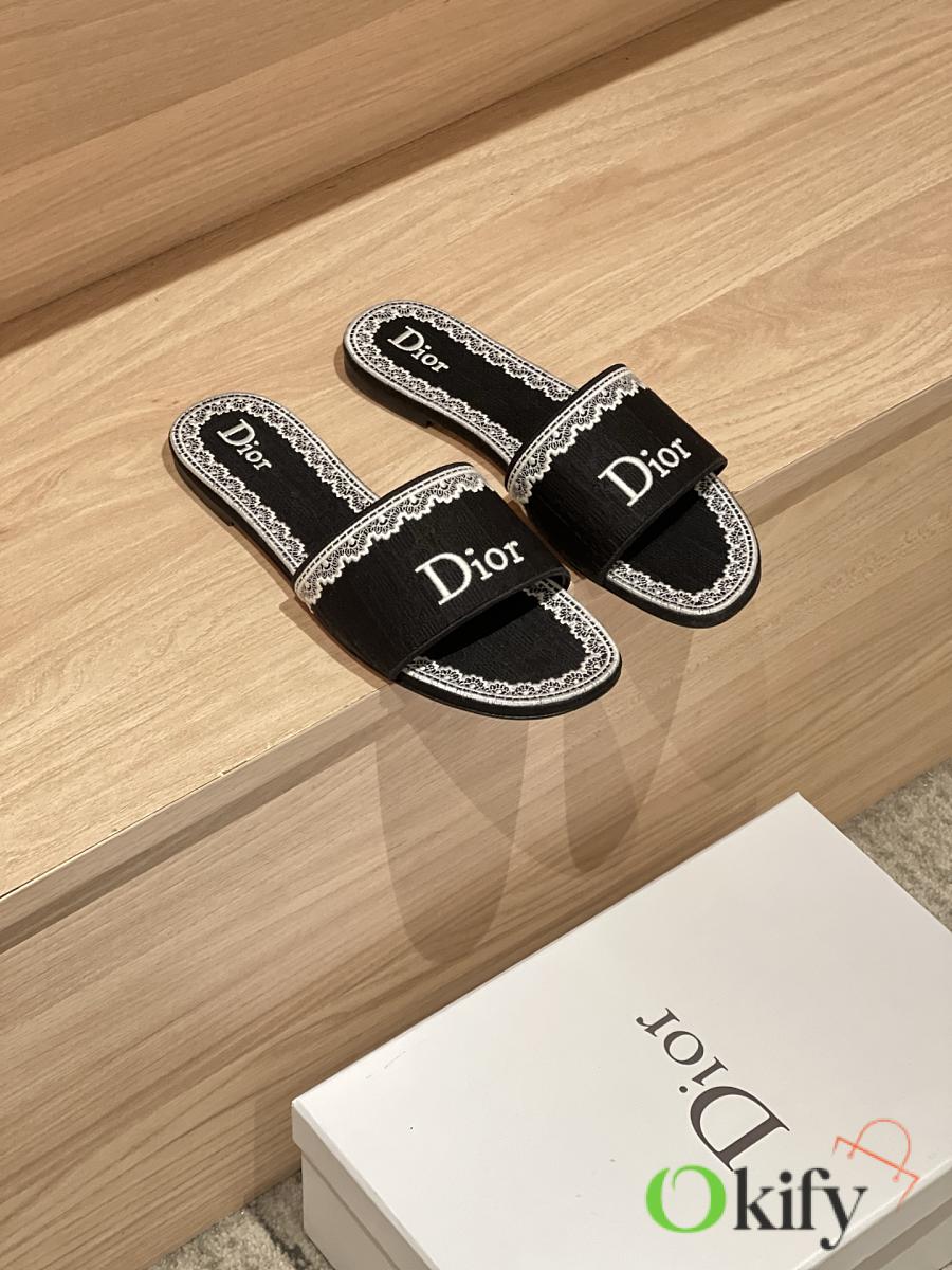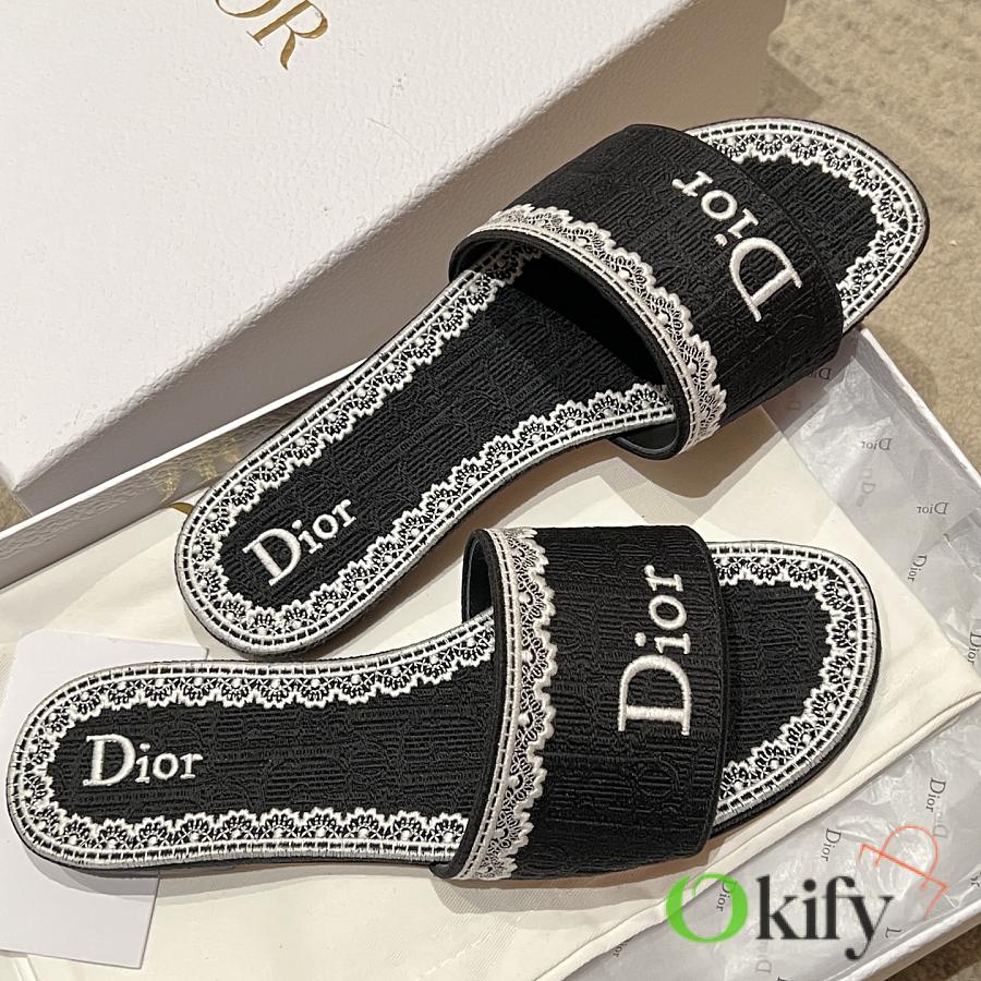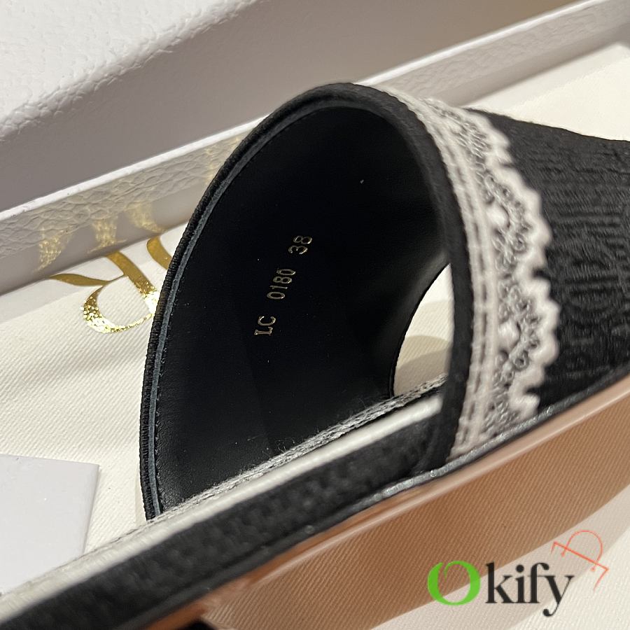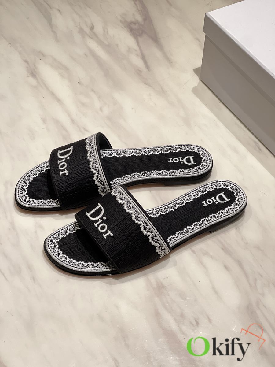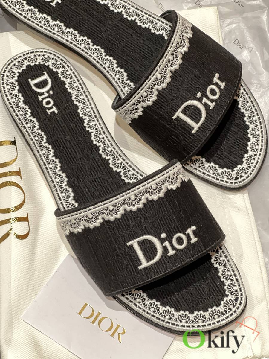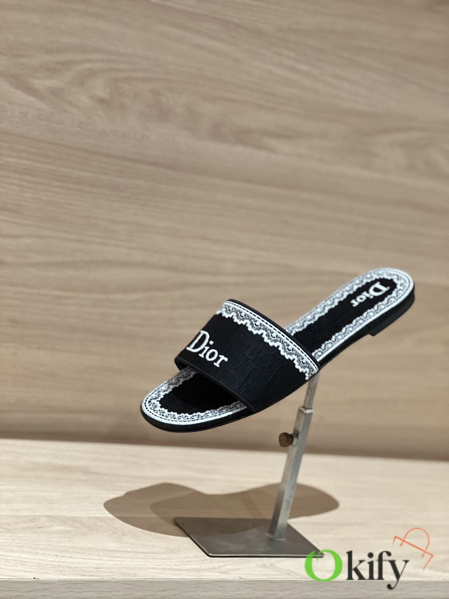 Okify Dior Black Embroidered Women Slides