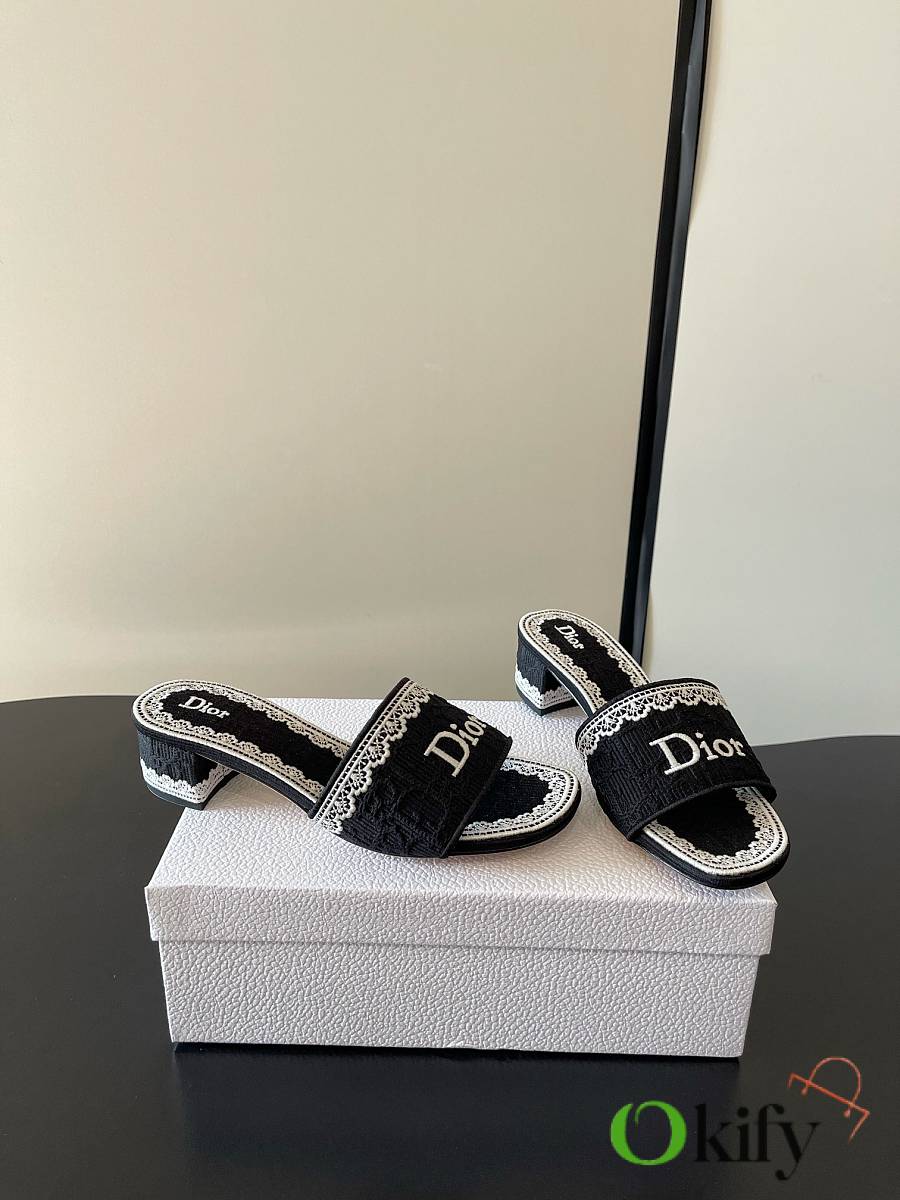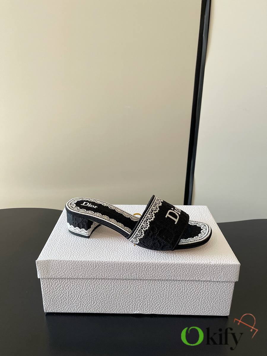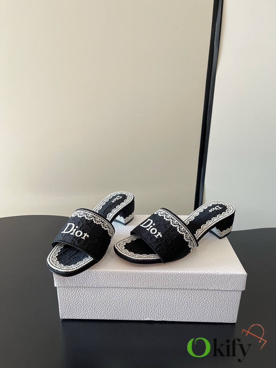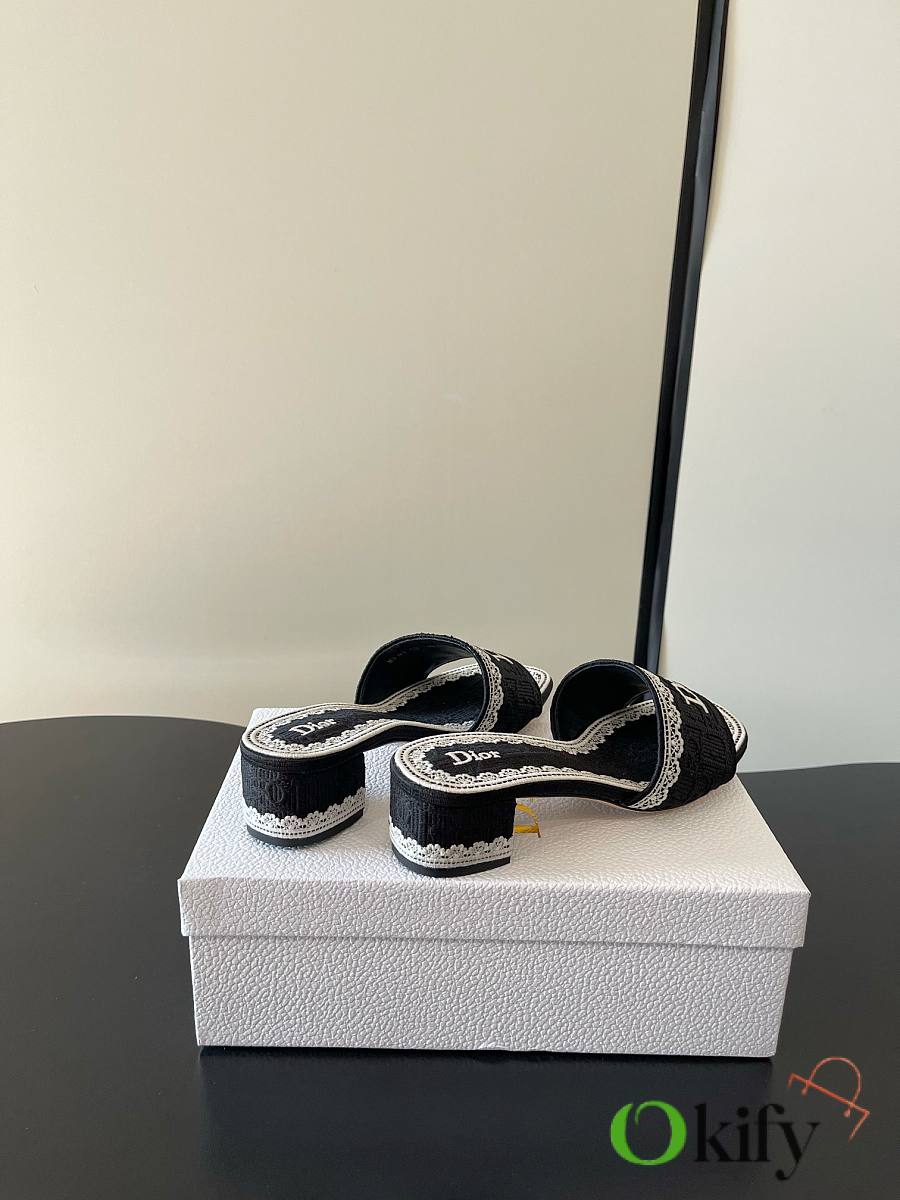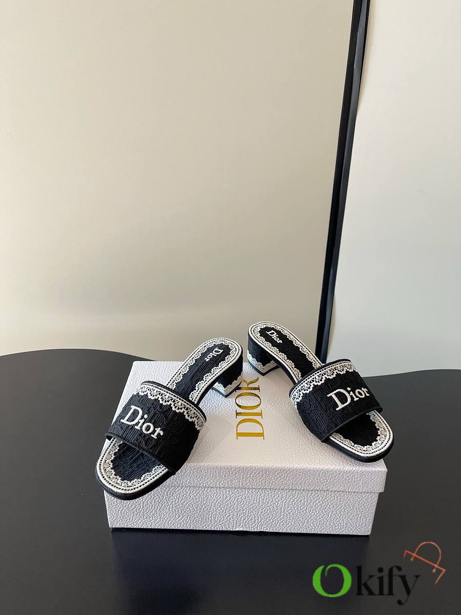 Okify Dior Black Mid-heel Sandals