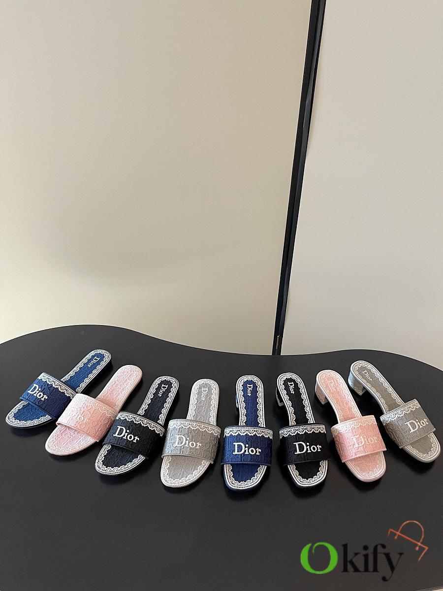 Dior's latest Spring/Summer collection of mid-heel mules is exquisite and elegant. The 5D design on the upper features the highly recognizable Dior logo, making it suitable for both everyday wear and vacations. The Oblique embossing is a classic Dior element, paired with lace embroidery for a touch of French romance! The lightweight sole ensures comfort even after long periods of wear, making these practical and stylish must-have items for spring and summer. Fabric: 5D lace with electro-embroidery. Sole: Italian genuine leather sole Size: 35-41 (40 and 41 are made to order)