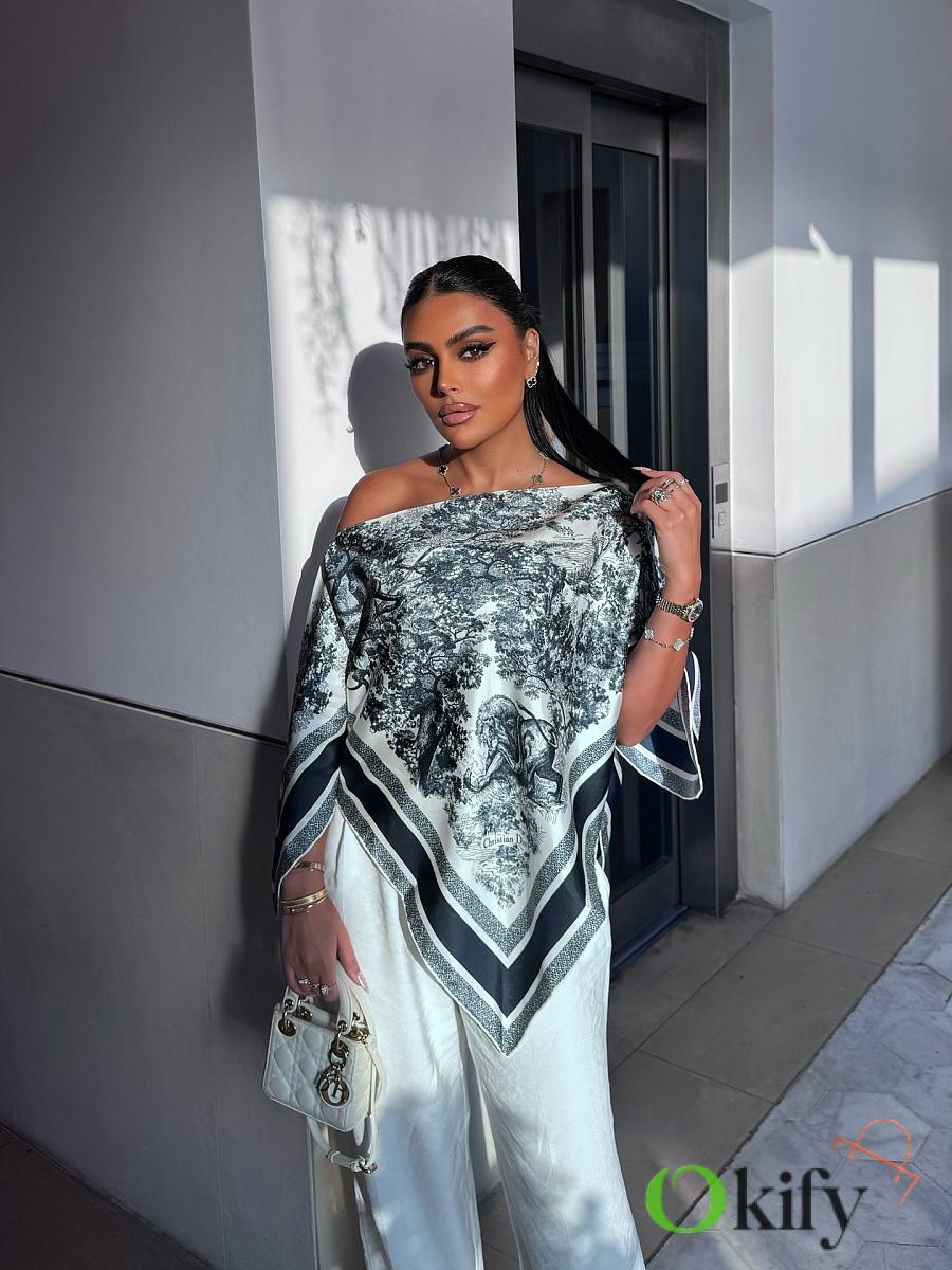 Simply slip it on from head to toe. A batwing-sleeve cover-up design, made of heavyweight 19 momme twill silk, highlighting the Sauvage pattern. The all-over print is a precise, all-over print; no factory is willing to produce such a precise pattern due to the excessive fabric consumption. Each piece perfectly replicates the pattern. The silk's texture is incredibly rich, unmatched by other materials. We always have to explain our heavyweight twill prints because many people don't understand fabrics, and even fewer are willing to use such thick silk. Some even think it's like synthetic fiber, but silk is so easily identifiable. Many bloggers on Instagram are already showing it off; a truly captivating outfit. (No returns, exchanges, or color changes) Size: One size fits all