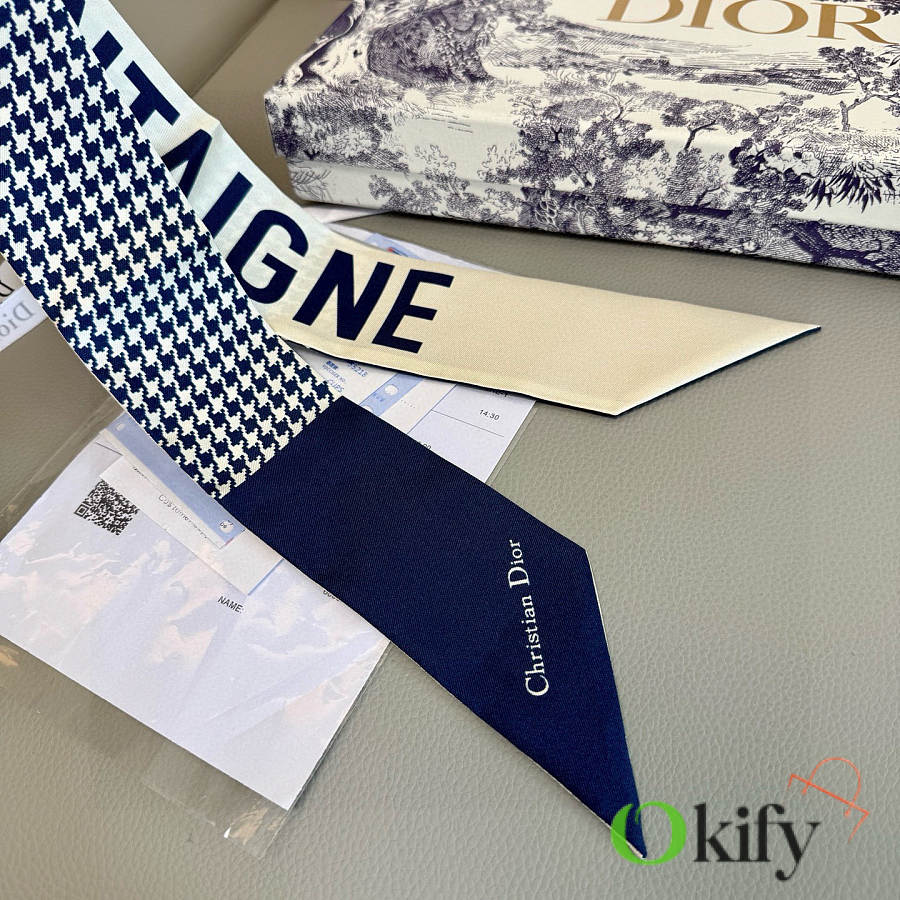 double-layer silk mini ribbon headband! I highly recommend this style! It's a sophisticated piece that looks timeless and timeless! Perfect for everyday wear! The signature houndstooth pattern and lettering are so stylish and elegant! The two-sided design adds a touch of sophistication! 6 x 105cm. 100% silk.