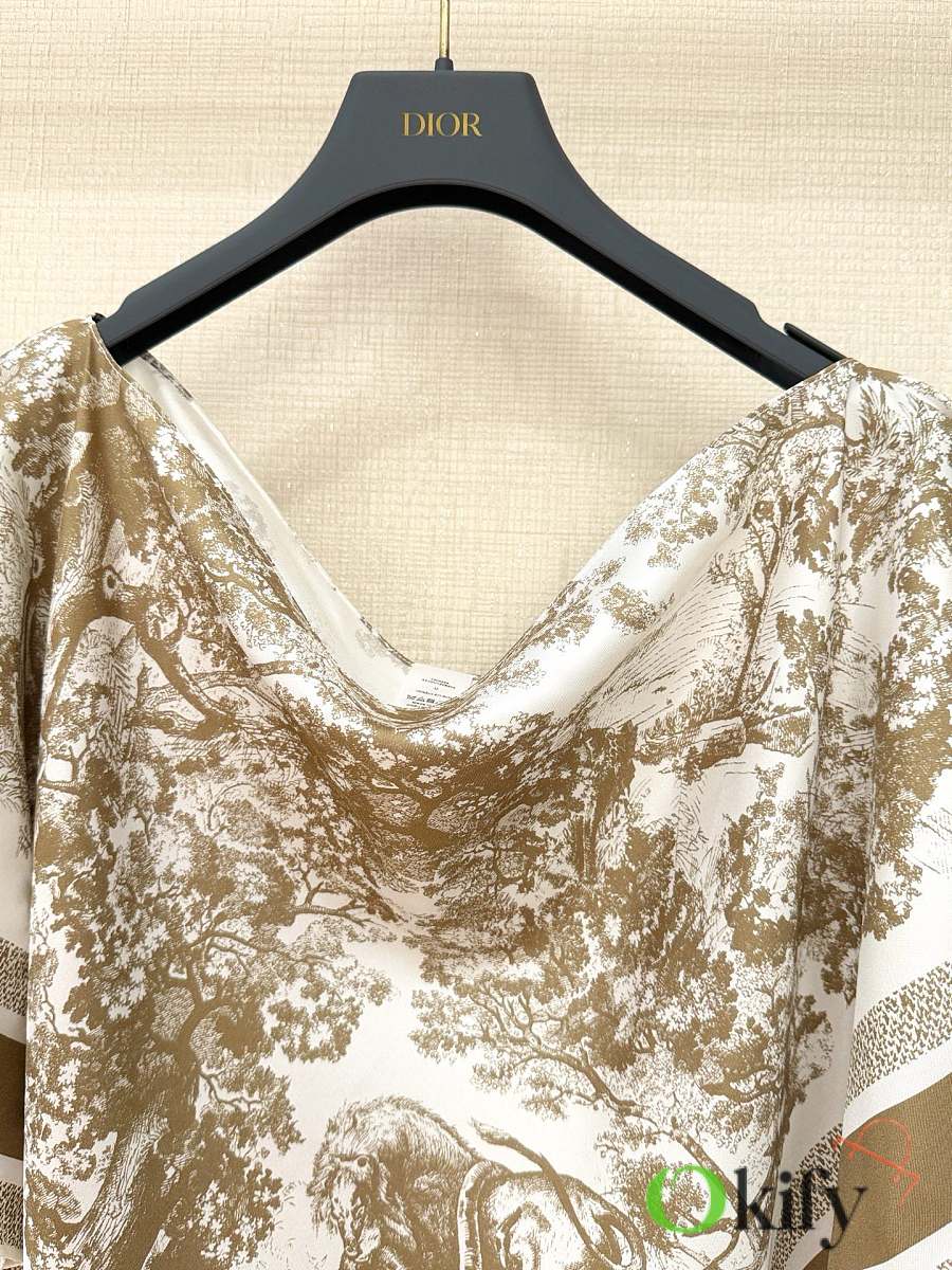 Simply slip it on from head to toe. A batwing-sleeve cover-up design, made of heavyweight 19 momme twill silk, highlighting the Sauvage pattern. The all-over print is a precise, all-over print; no factory is willing to produce such a precise pattern due to the excessive fabric consumption. Each piece perfectly replicates the pattern. The silk's texture is incredibly rich, unmatched by other materials. We always have to explain our heavyweight twill prints because many people don't understand fabrics, and even fewer are willing to use such thick silk. Some even think it's like synthetic fiber, but silk is so easily identifiable. Many bloggers on Instagram are already showing it off; a truly captivating outfit. (No returns, exchanges, or color changes) Size: One size fits all