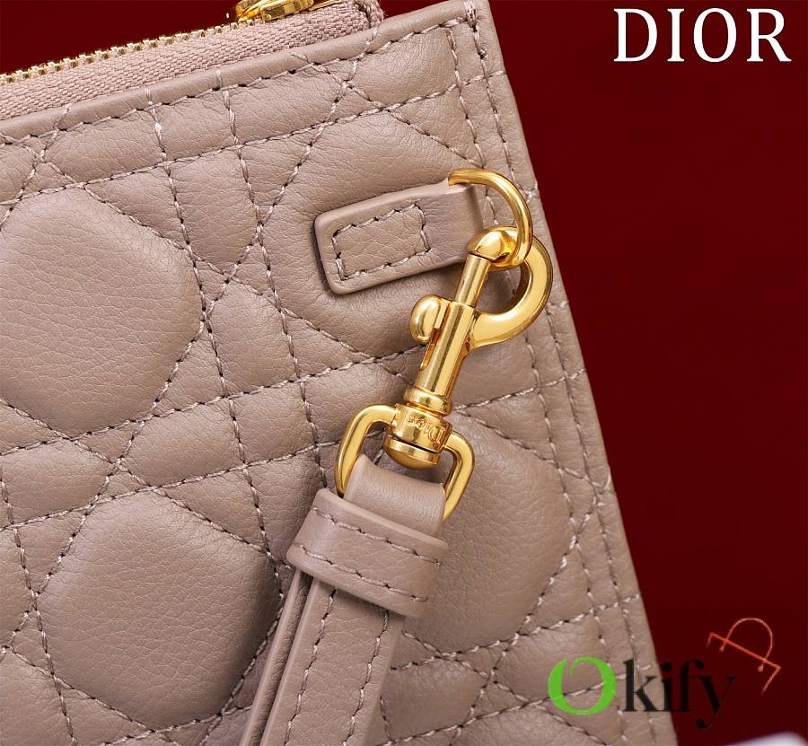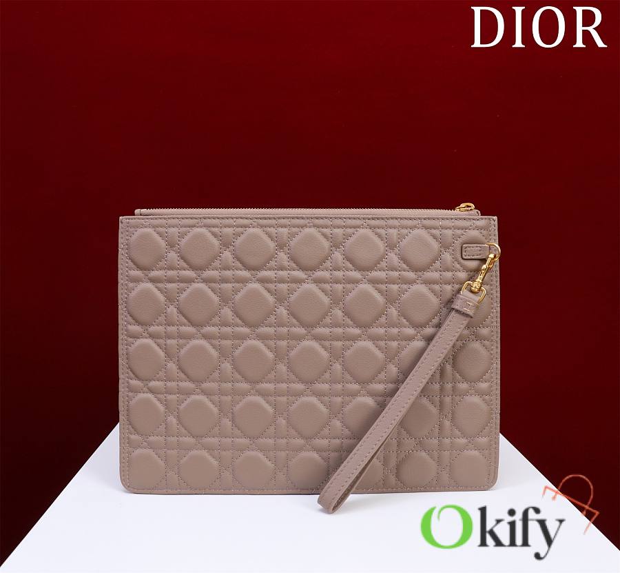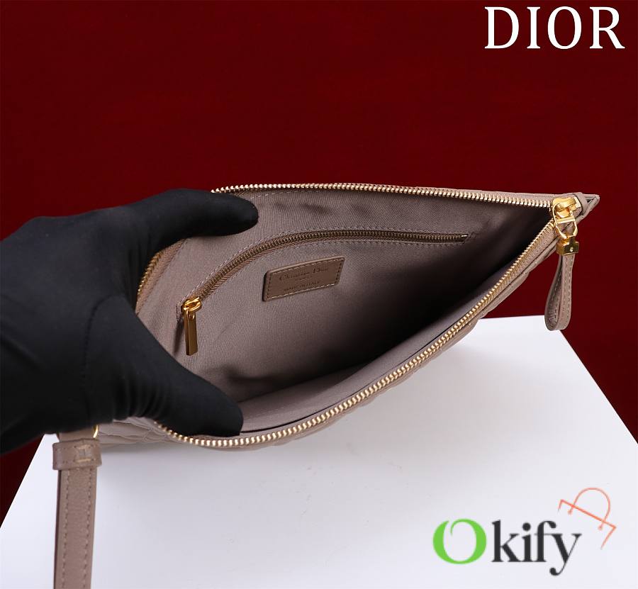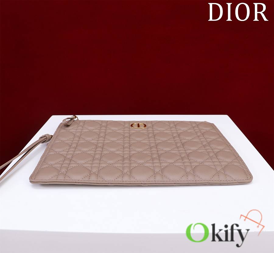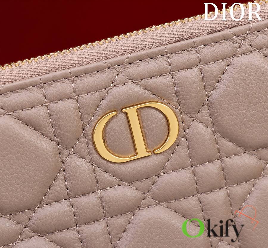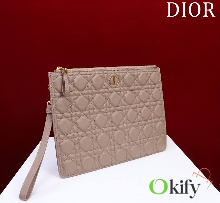 The Dior Caro everyday clutch is an elegant and practical piece. Crafted from supple pine green calfskin leather, it features the iconic cannage stitching and is adorned with the "CD" logo on the front. The large size can hold various everyday essentials, and it comes with a detachable handle, allowing it to be carried by hand or placed inside the bag. The front is decorated with the "CD" logo. 1 large zippered compartment 1 inner patch 1 detachable carrying strap