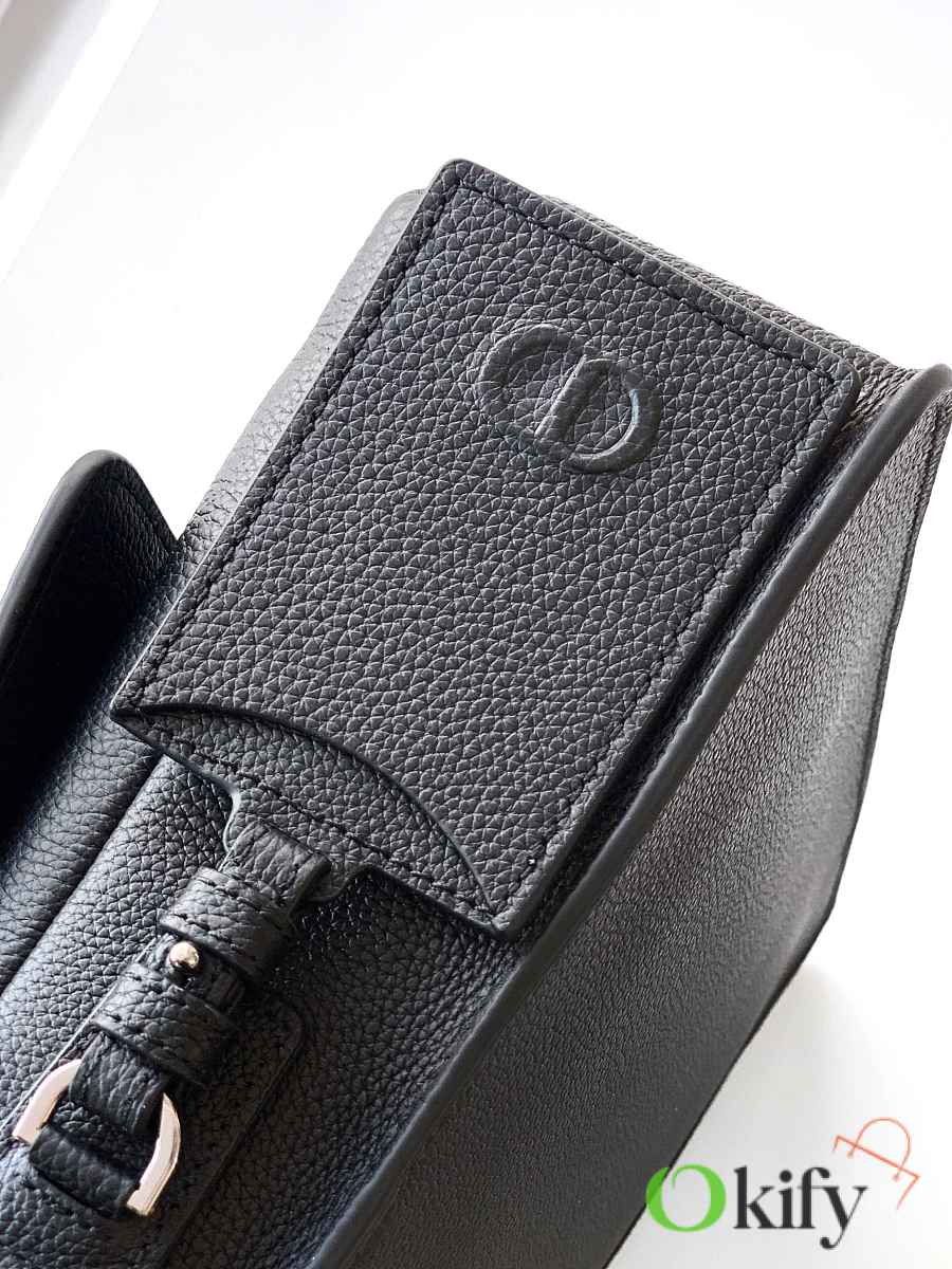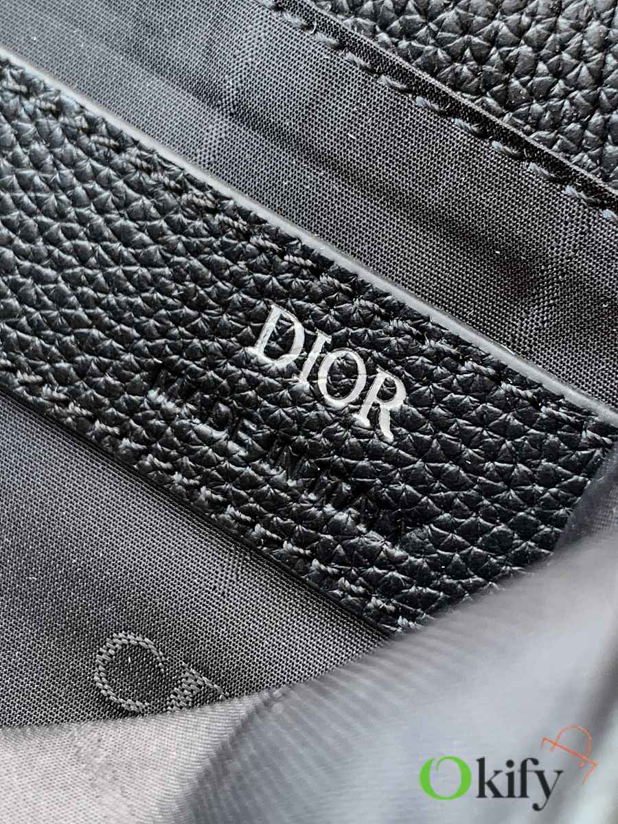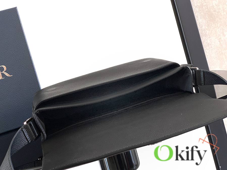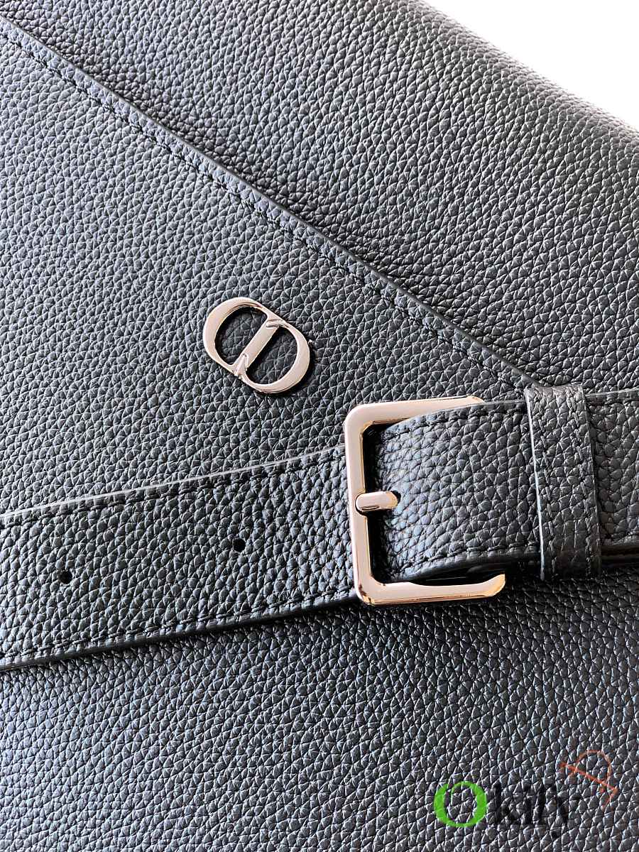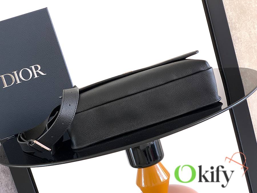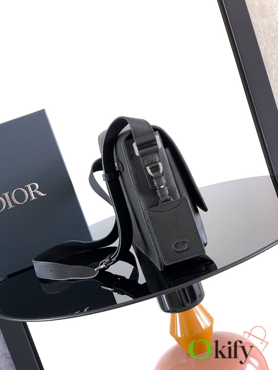 This CD Icon messenger bag is a new addition to the 2025 Winter Men's Collection. Its minimalist design showcases Dior's exquisite craftsmanship. Crafted from black matte grained calfskin, it features a black metal-plated CD Icon logo on the front, complemented by a D-ring for attaching a leather luggage tag. The tag is adorned with an embossed CD logo for added style. Practical in design, it includes front and back slip pockets, and a spacious main compartment for everyday essentials. The CD lining is inspired by Dior's meticulous tailoring. A classic style, it features an adjustable strap for shoulder or crossbody wear, complementing various outfits. Dimensions: 32 x 23 x 9 cm
