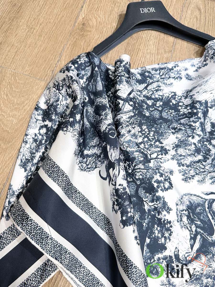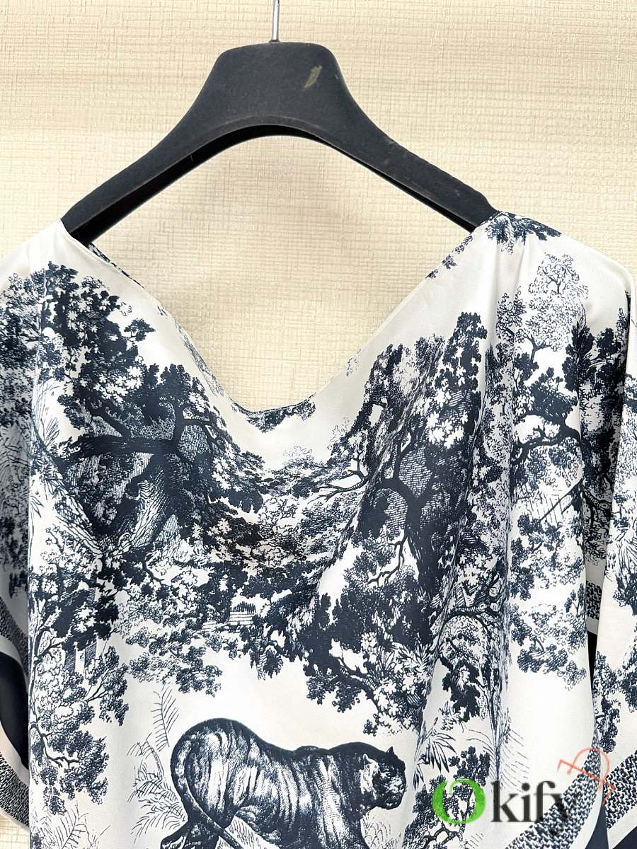 Simply slip it on from head to toe. A batwing-sleeve cover-up design, made of heavyweight 19 momme twill silk, highlighting the Sauvage pattern. The all-over print is a precise, all-over print; no factory is willing to produce such a precise pattern due to the excessive fabric consumption. Each piece perfectly replicates the pattern. The silk's texture is incredibly rich, unmatched by other materials. We always have to explain our heavyweight twill prints because many people don't understand fabrics, and even fewer are willing to use such thick silk. Some even think it's like synthetic fiber, but silk is so easily identifiable. Many bloggers on Instagram are already showing it off; a truly captivating outfit. (No returns, exchanges, or color changes) Size: One size fits all