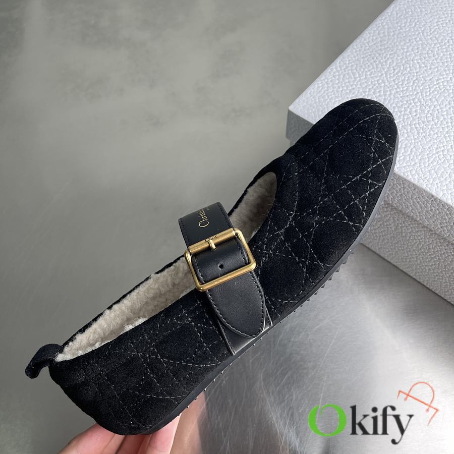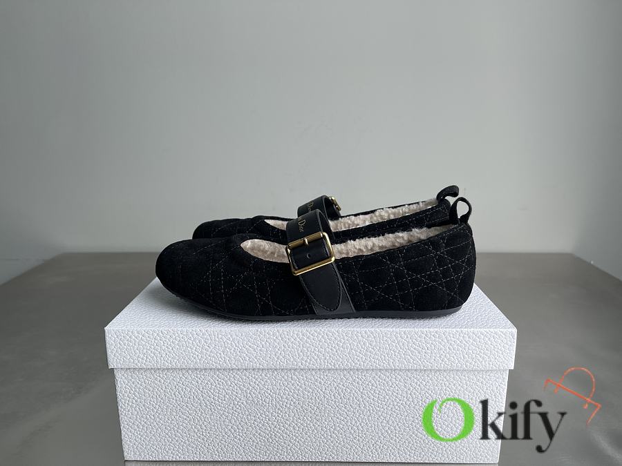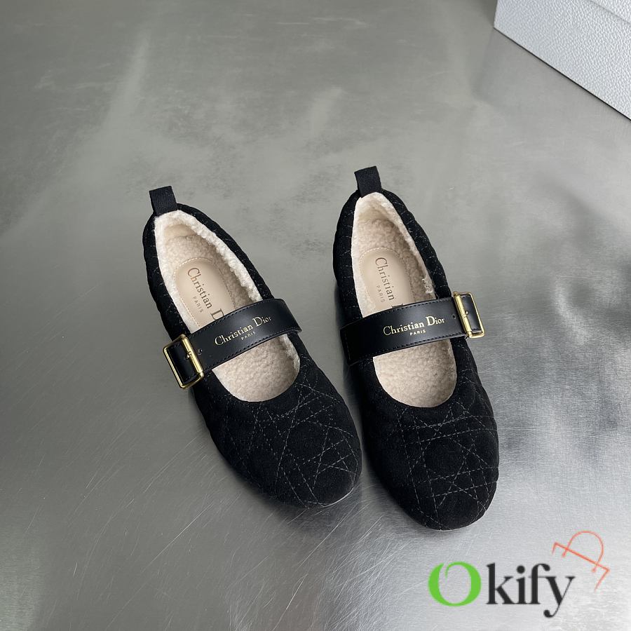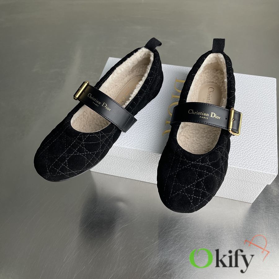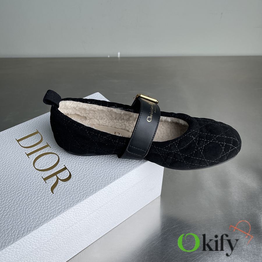 Okify Dior Dioralps Frost Black Suede Ballet Shoes