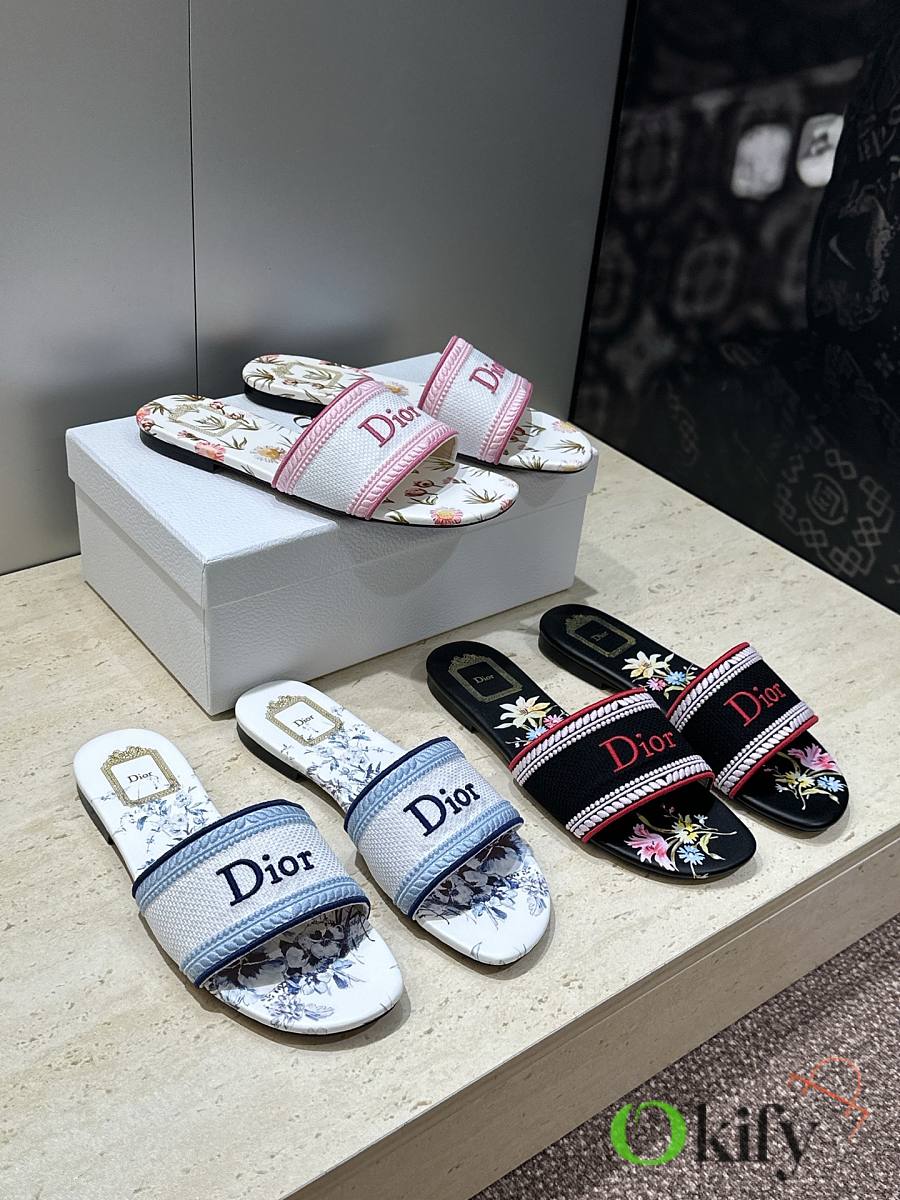 Dior 2026 DWAY Early Spring New Style Women's Slip-on Sandals CD logo 3D embroidered flat sandals, round toe, chunky heel, jelly color, top-tier reseller version. Upper: High-temperature water-soluble cotton embroidered fabric consistent with the original design. Lining: Water-dyed sheepskin lining Outsole: Italian genuine leather outsole Heel height: Flat heel / 4.5CM Sizes: 34-43 (34, 40, 41, 42, and 43 are custom-made, non-refundable and non-exchangeable)