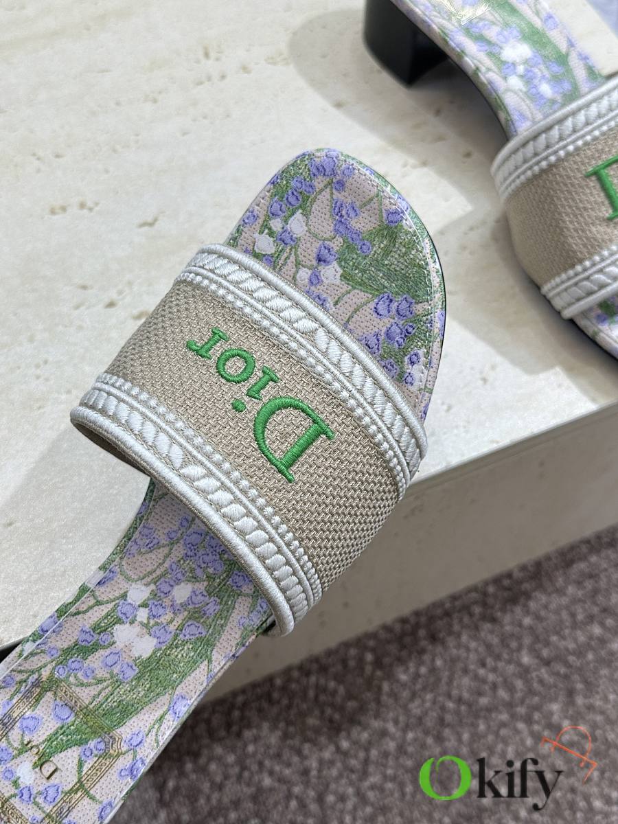 Dior 2026 DWAY Early Spring New Style Women's Slip-on Sandals CD logo 3D embroidered flat sandals, round toe, chunky heel, jelly color, top-tier reseller version. Upper: High-temperature water-soluble cotton embroidered fabric consistent with the original design. Lining: Water-dyed sheepskin lining Outsole: Italian genuine leather outsole Heel height: Flat heel / 4.5CM Sizes: 34-43 (34, 40, 41, 42, and 43 are custom-made, non-refundable and non-exchangeable)