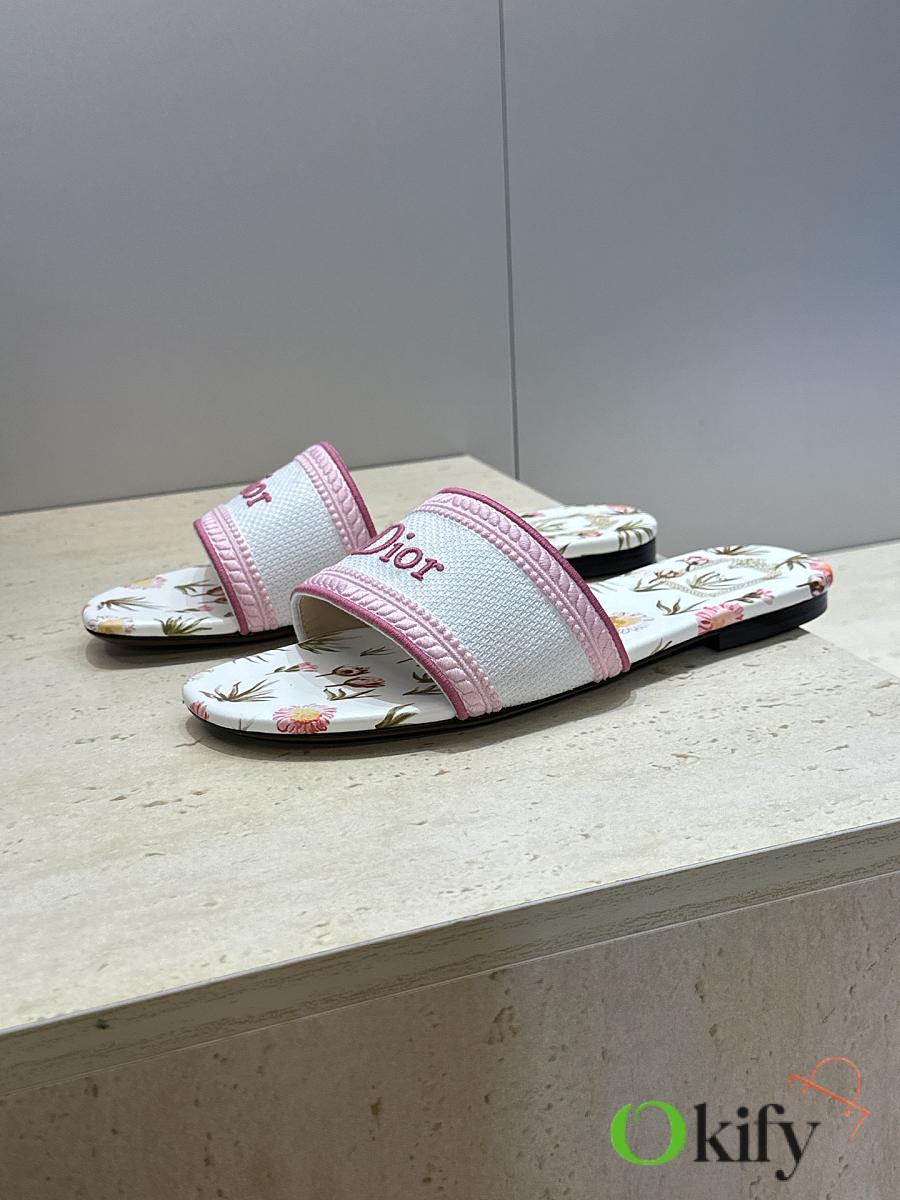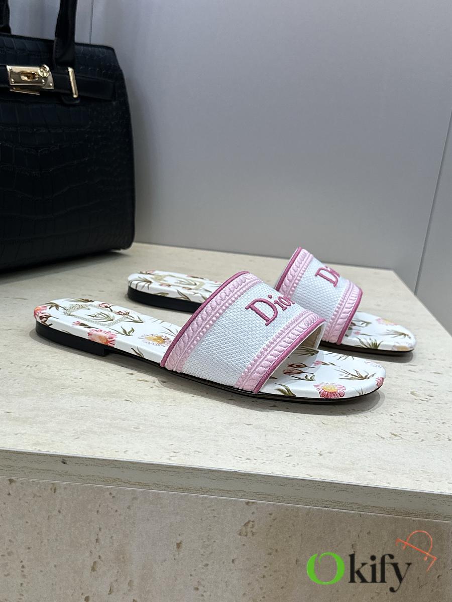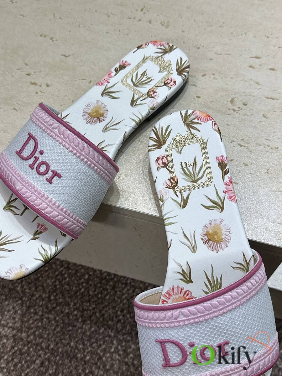 Dior 2026 DWAY Early Spring New Style Women's Slip-on Sandals CD logo 3D embroidered flat sandals, round toe, chunky heel, jelly color, top-tier reseller version. Upper: High-temperature water-soluble cotton embroidered fabric consistent with the original design. Lining: Water-dyed sheepskin lining Outsole: Italian genuine leather outsole Heel height: Flat heel / 4.5CM Sizes: 34-43 (34, 40, 41, 42, and 43 are custom-made, non-refundable and non-exchangeable)