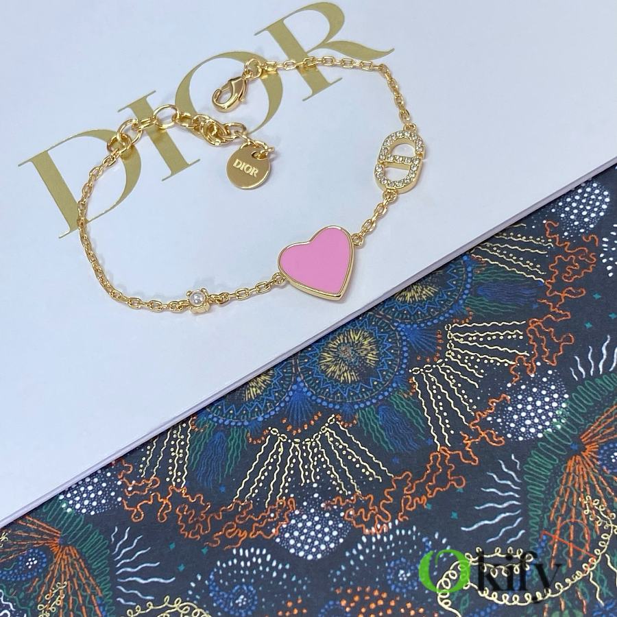 Okify Dior Gold Bracelet With Pink Heart And Diamond