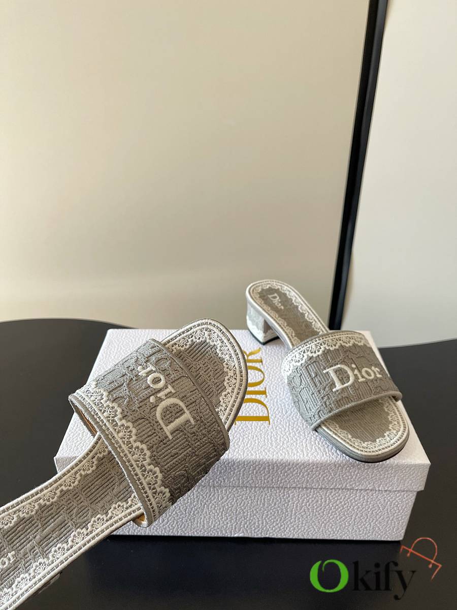 Dior's latest Spring/Summer collection of mid-heel mules is exquisite and elegant. The 5D design on the upper features the highly recognizable Dior logo, making it suitable for both everyday wear and vacations. The Oblique embossing is a classic Dior element, paired with lace embroidery for a touch of French romance! The lightweight sole ensures comfort even after long periods of wear, making these practical and stylish must-have items for spring and summer. Fabric: 5D lace with electro-embroidery. Sole: Italian genuine leather sole Size: 35-41 (40 and 41 are made to order)